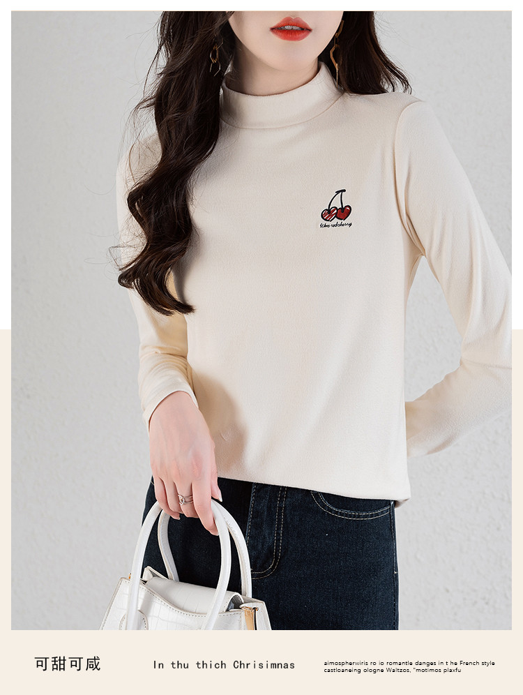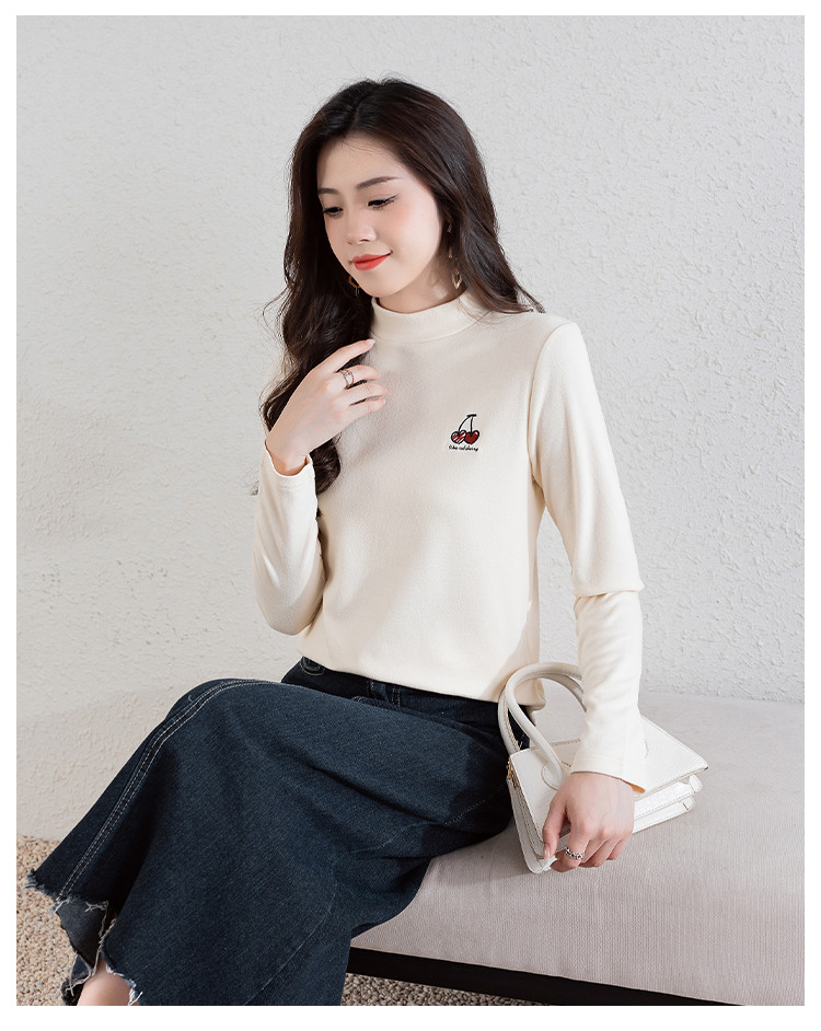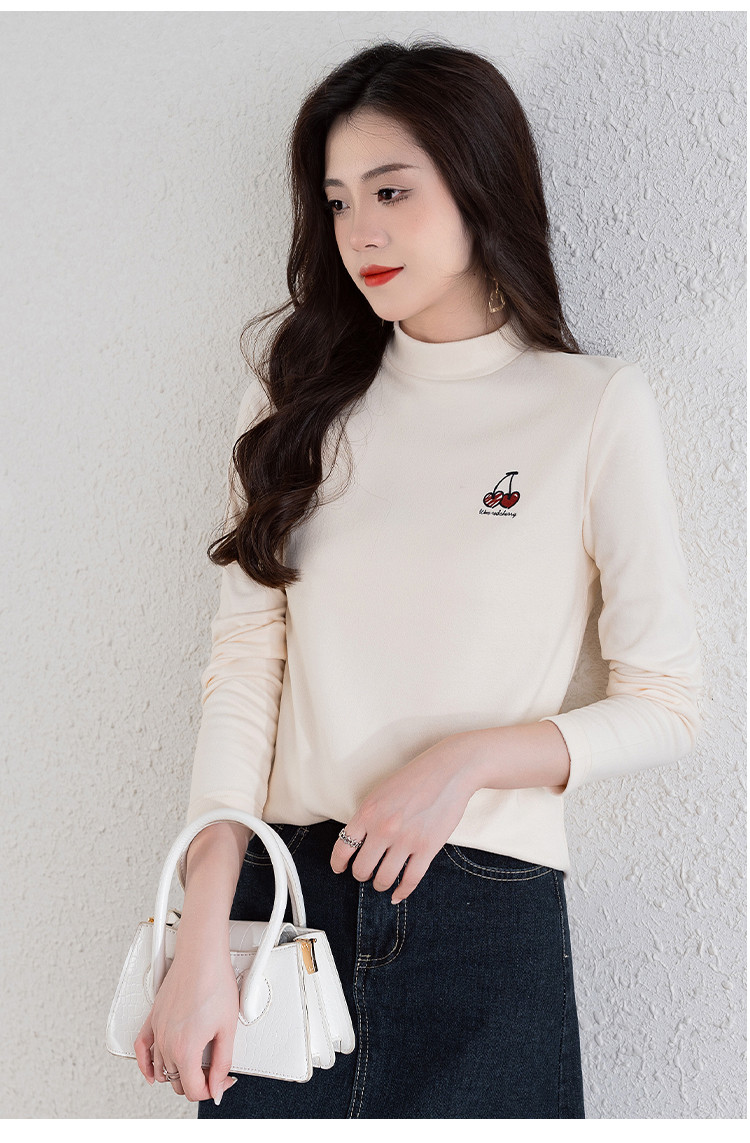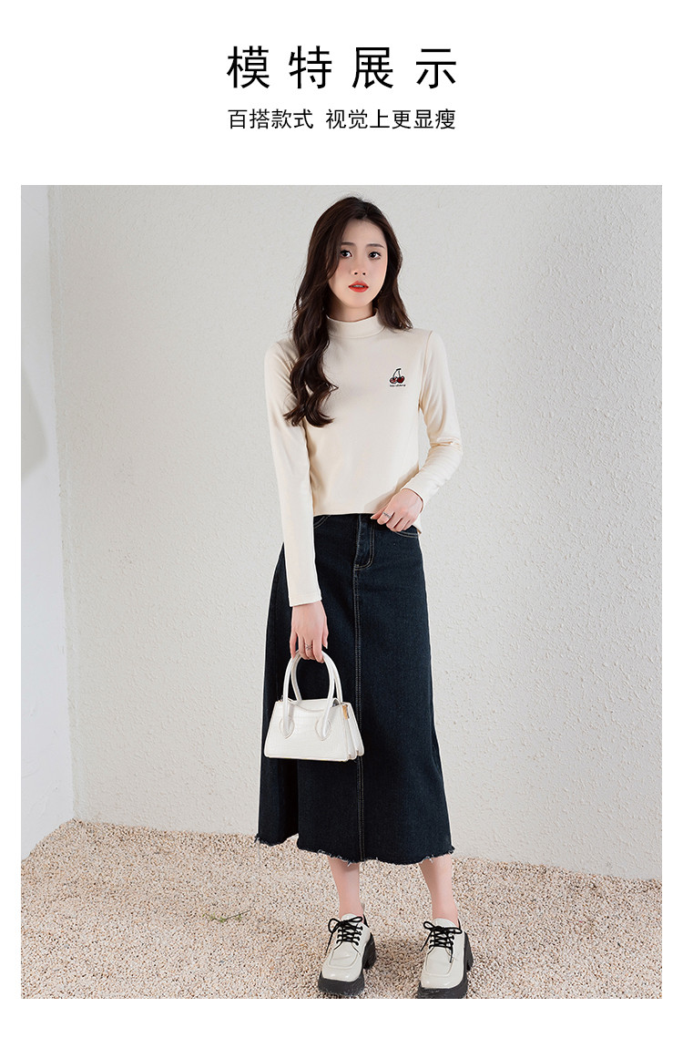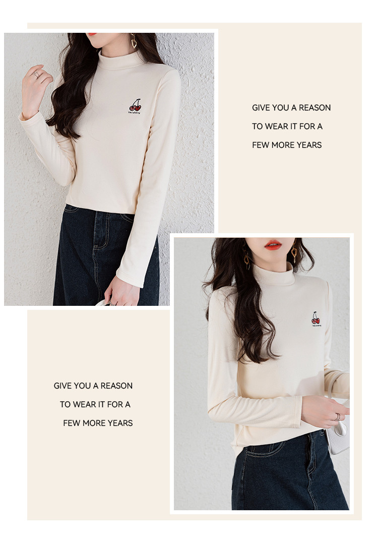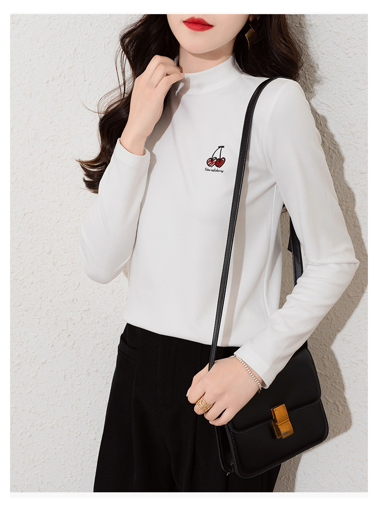 商品名称:修身透气打底衫商务通勤气质优雅时尚印花半高领女式春秋长袖T恤 605825