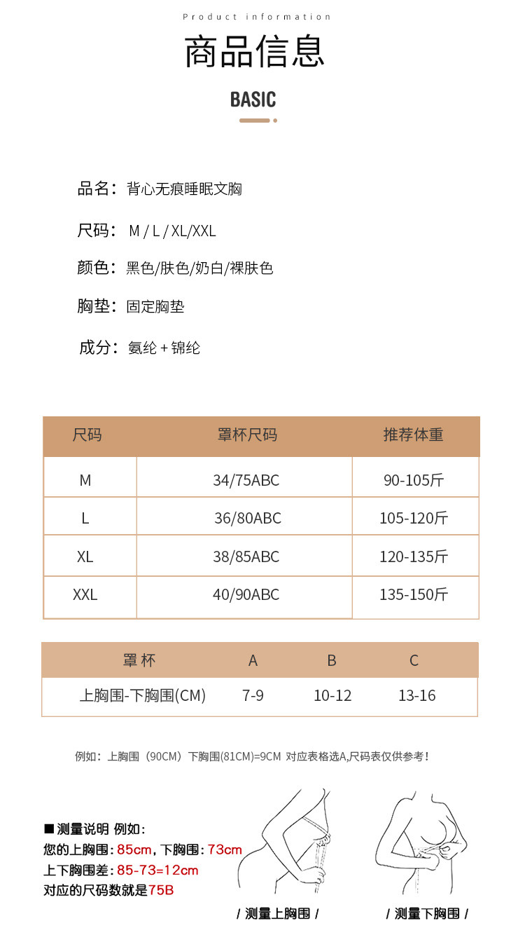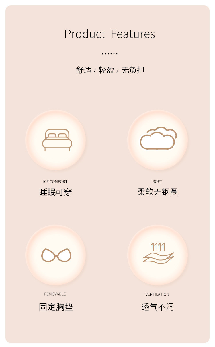 商品名称:【裸感无痕】薄款透气背心式内衣女无痕睡眠舒适聚拢美背文胸罩 182878