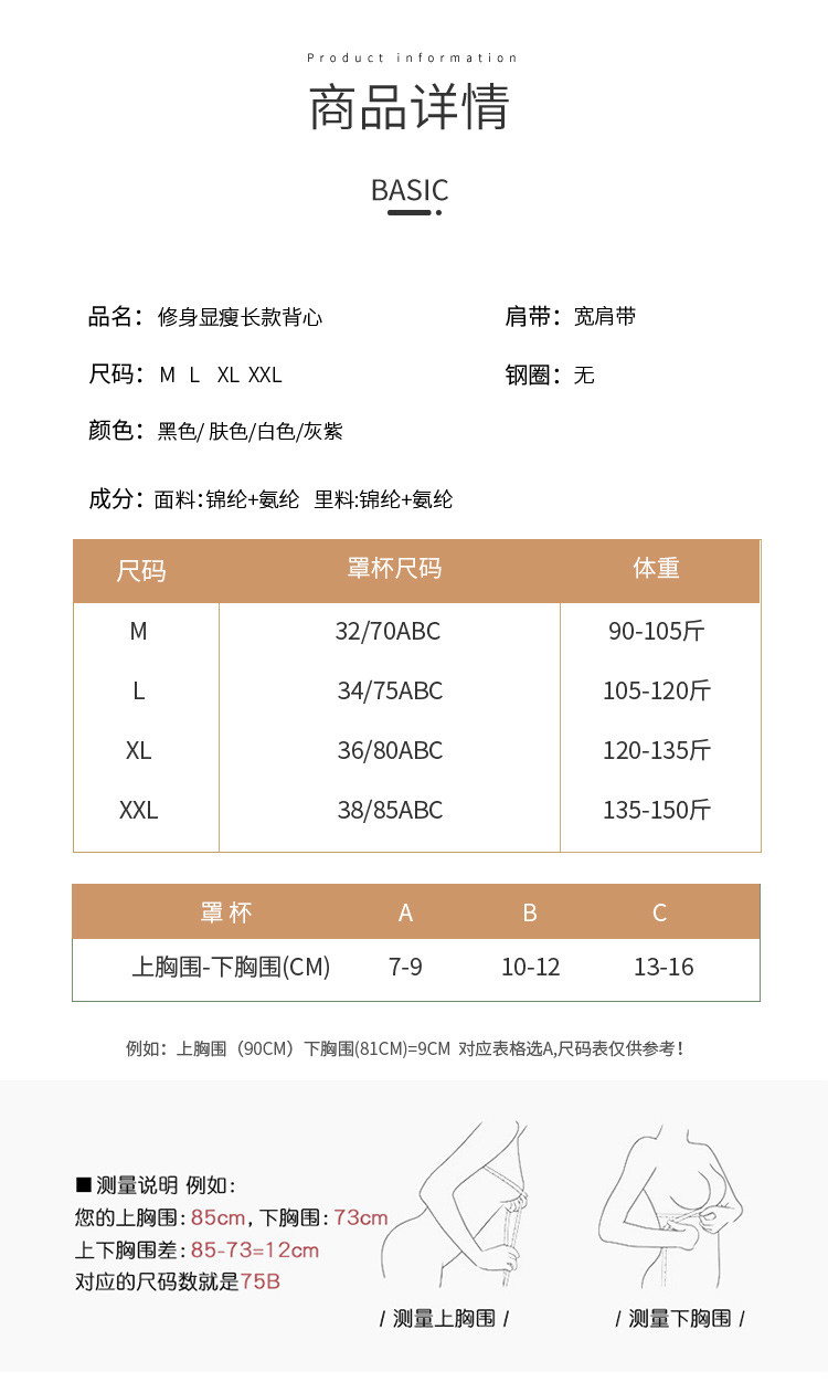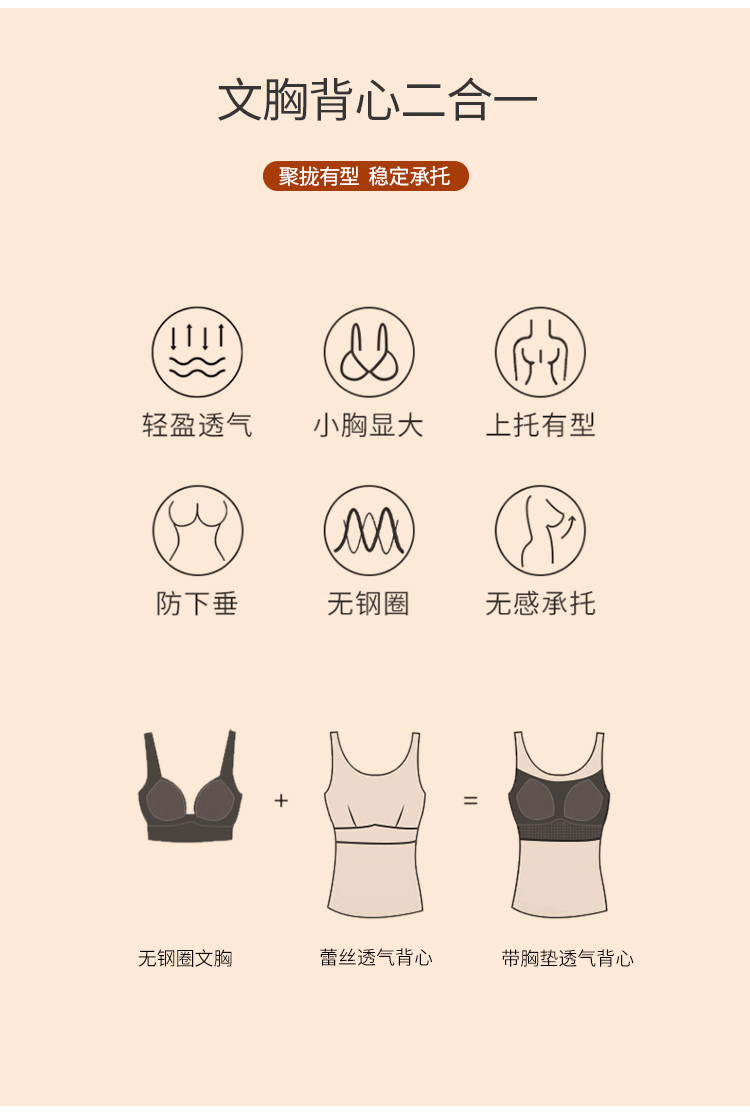 商品名称:【塑身纤体背心文胸】美背内衣女美体舒适聚拢不空杯打底女士吊带 170334