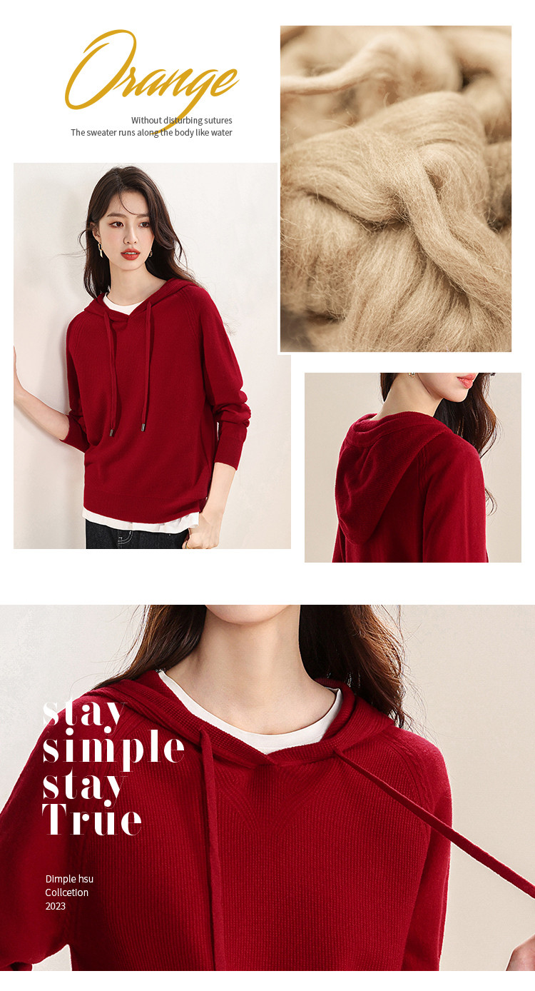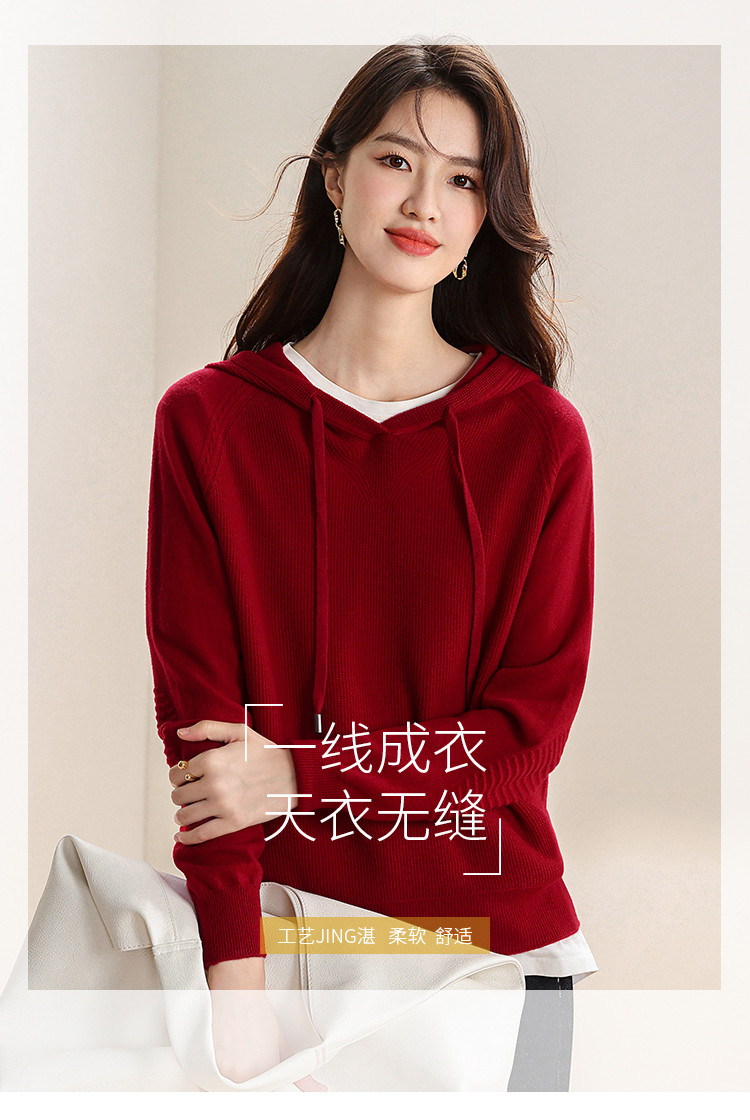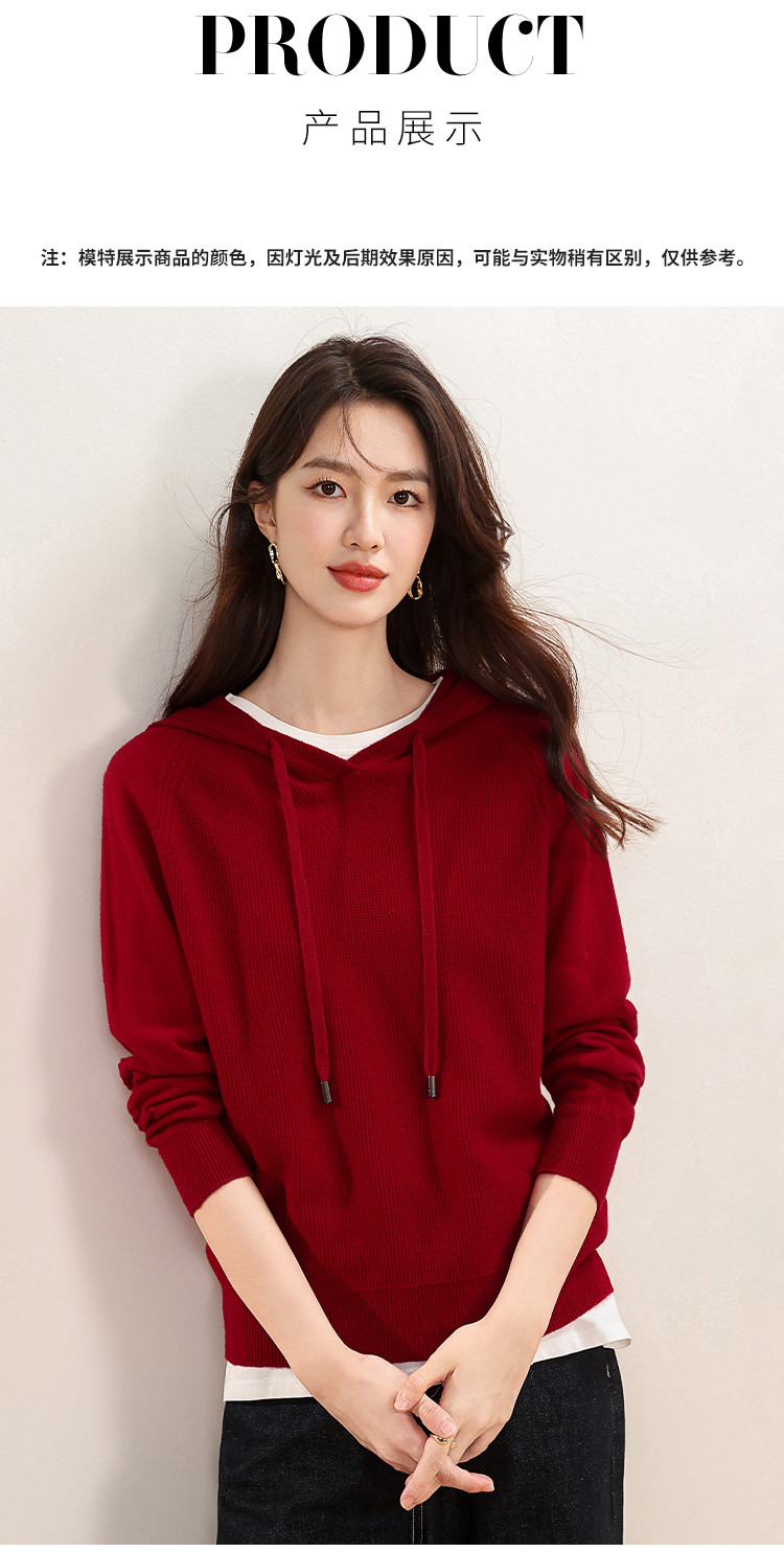 商品名称:【无缝100%绵羊毛】春季连帽羊毛衫女针织衫时尚卫衣毛衣 621139