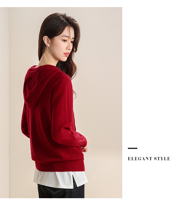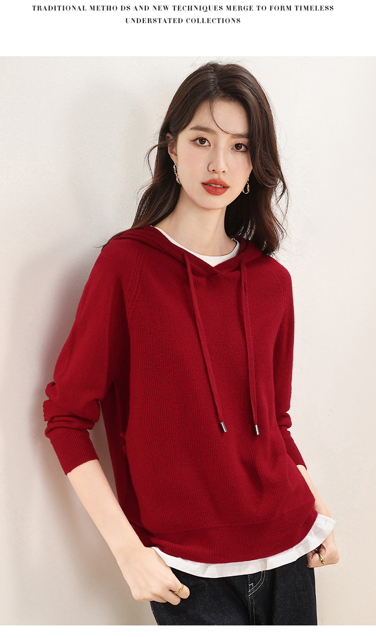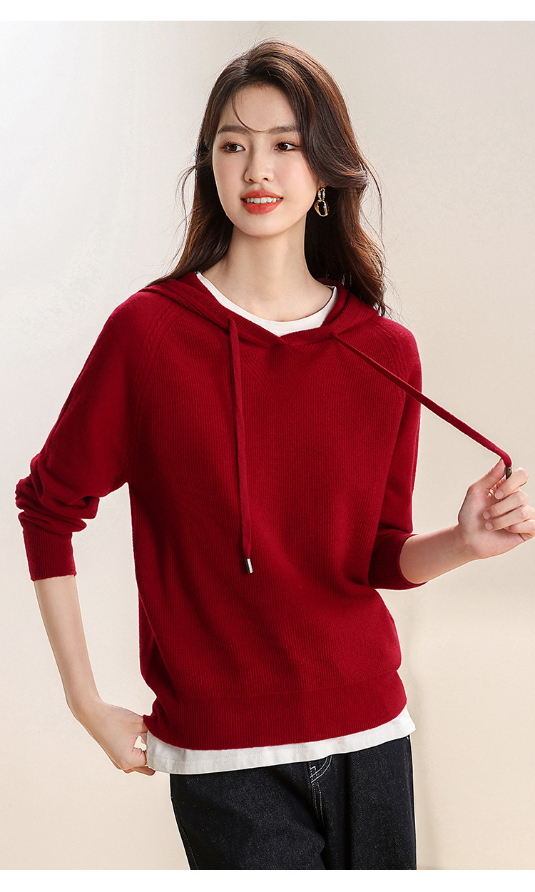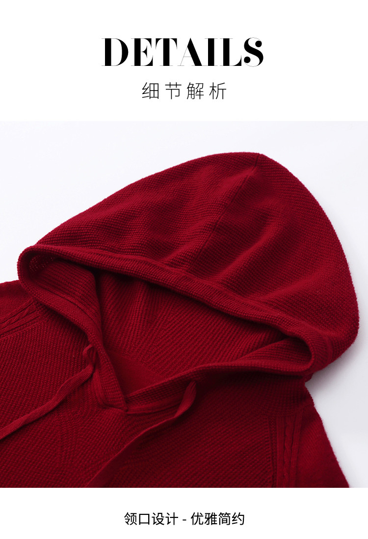 商品名称:【无缝100%绵羊毛】春季连帽羊毛衫女针织衫时尚卫衣毛衣 621139