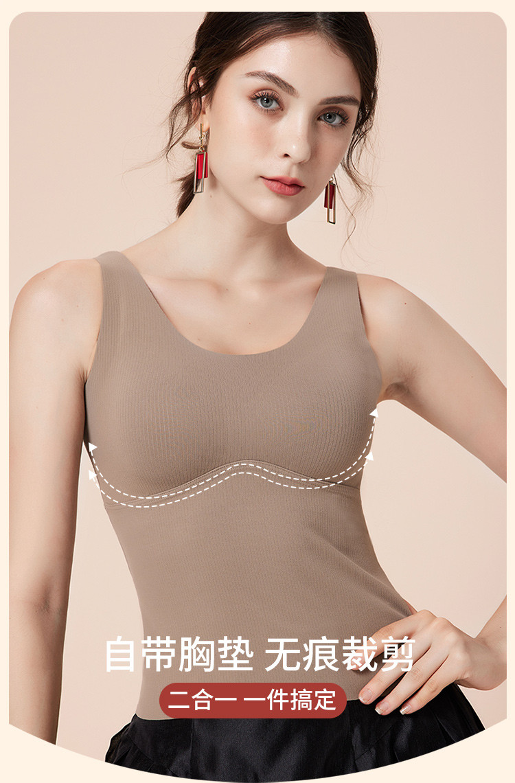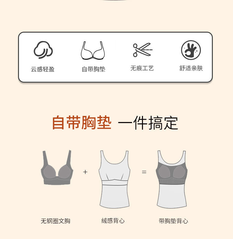 商品名称:【背心式一体】春秋无感舒适聚拢胸罩女士吊带上衣打底背心女内衣 880158
