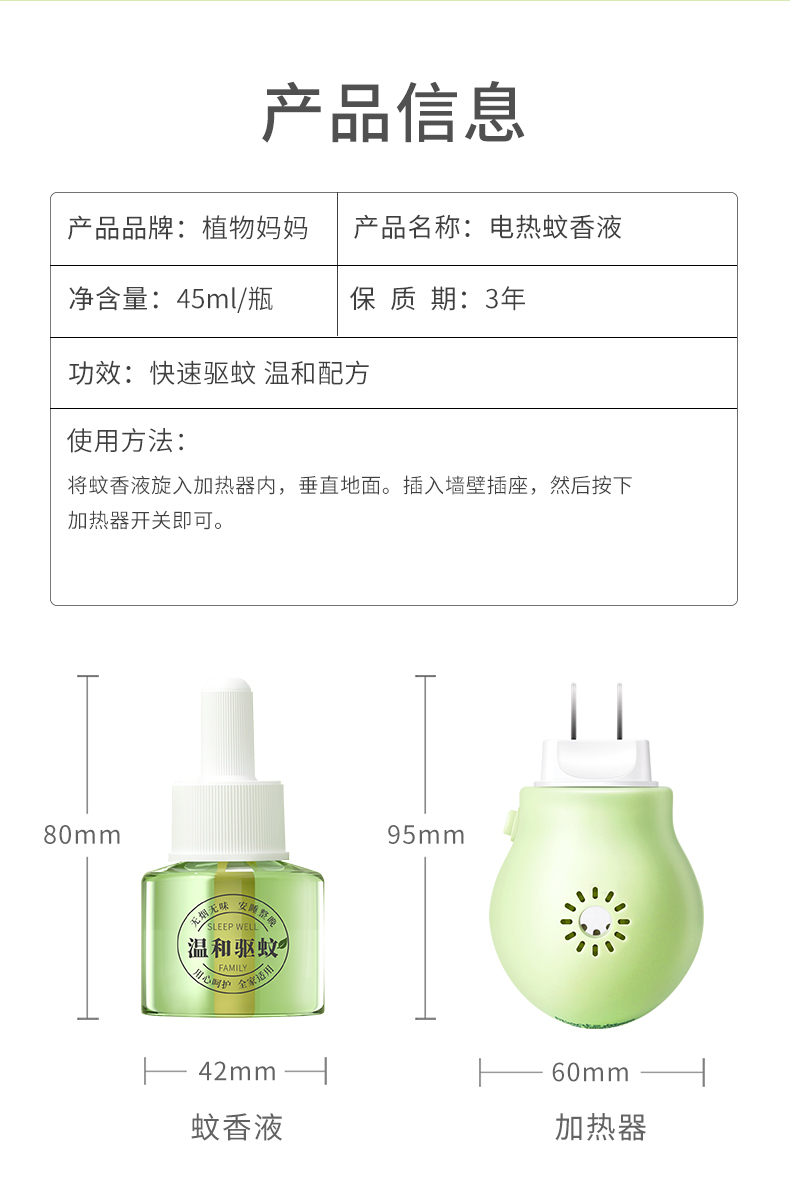 商品名称:植物妈妈电蚊香液套盒套装1+4(1插头+4液)