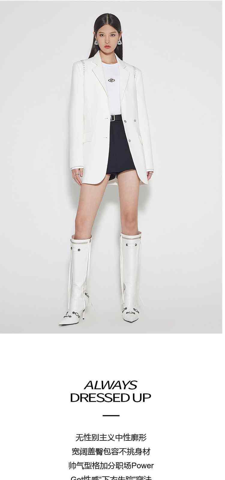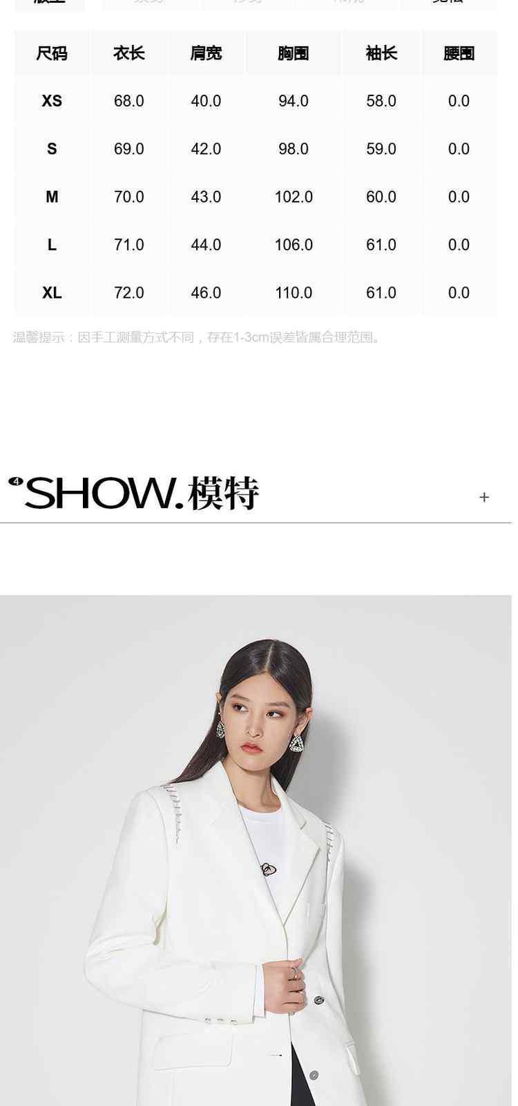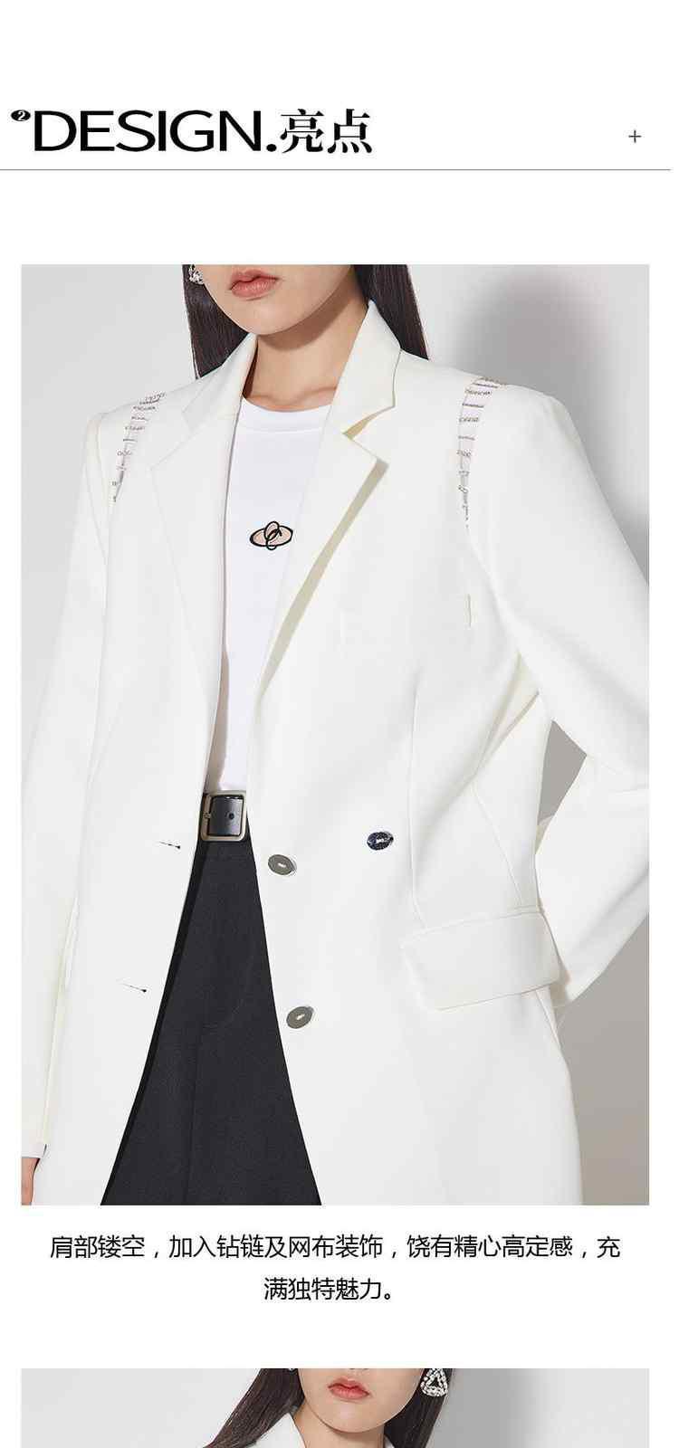 商品名称:春装 小众设计西装外套女钻链通勤中长款 658319