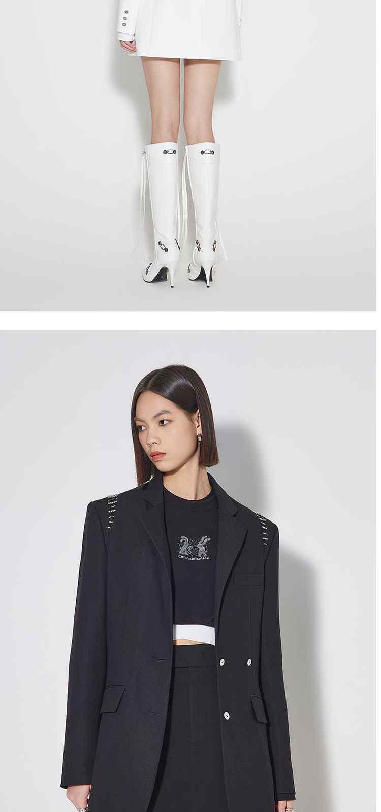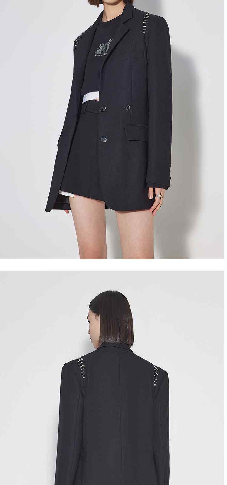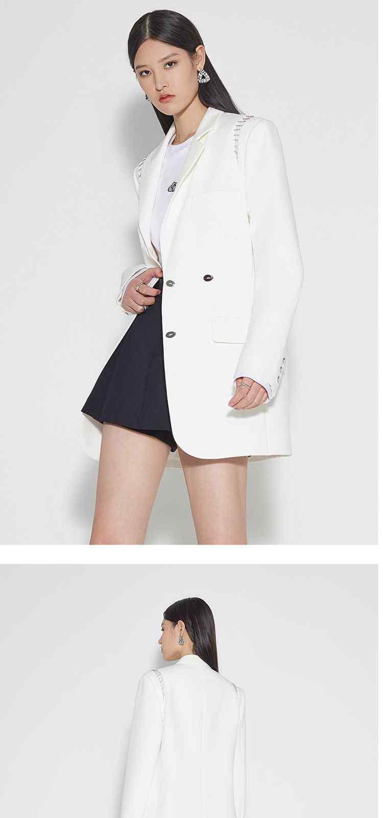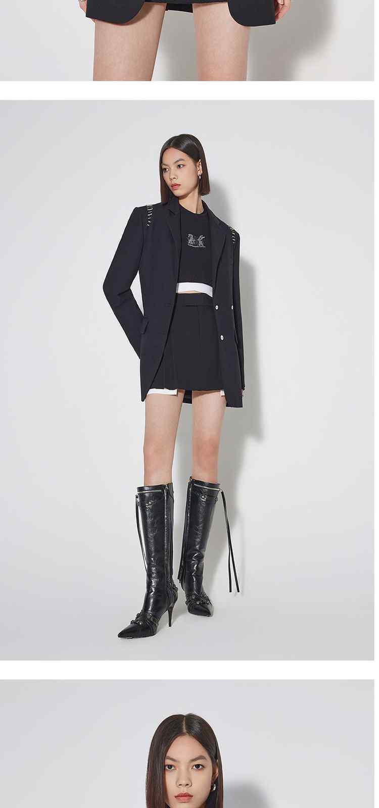 商品名称:春装 小众设计西装外套女钻链通勤中长款 658319