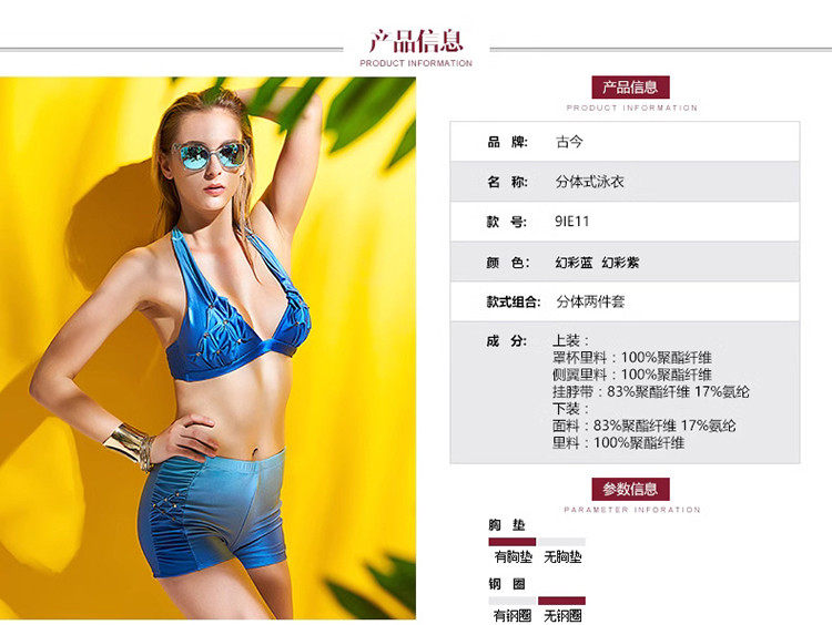 商品名称:古今泳衣小清新女分体比基尼显瘦性感俩件套泡温泉度假泳装 356171