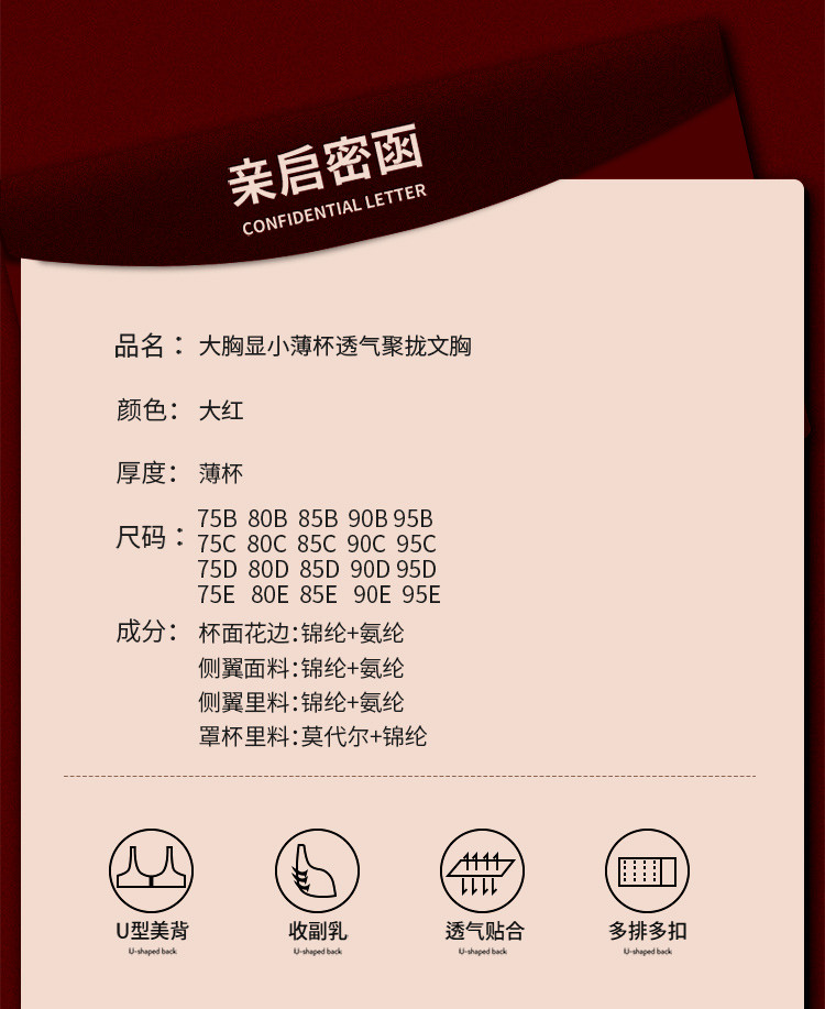 商品名称:【大胸显小收副乳】乳胶薄款聚拢上托侧收调整型女士内衣文胸罩 034142