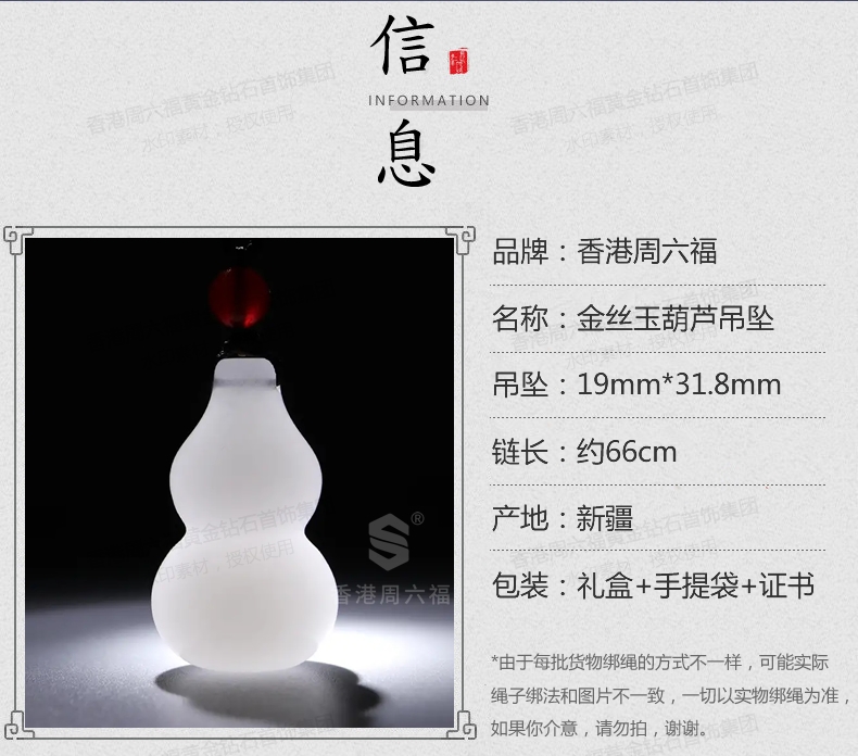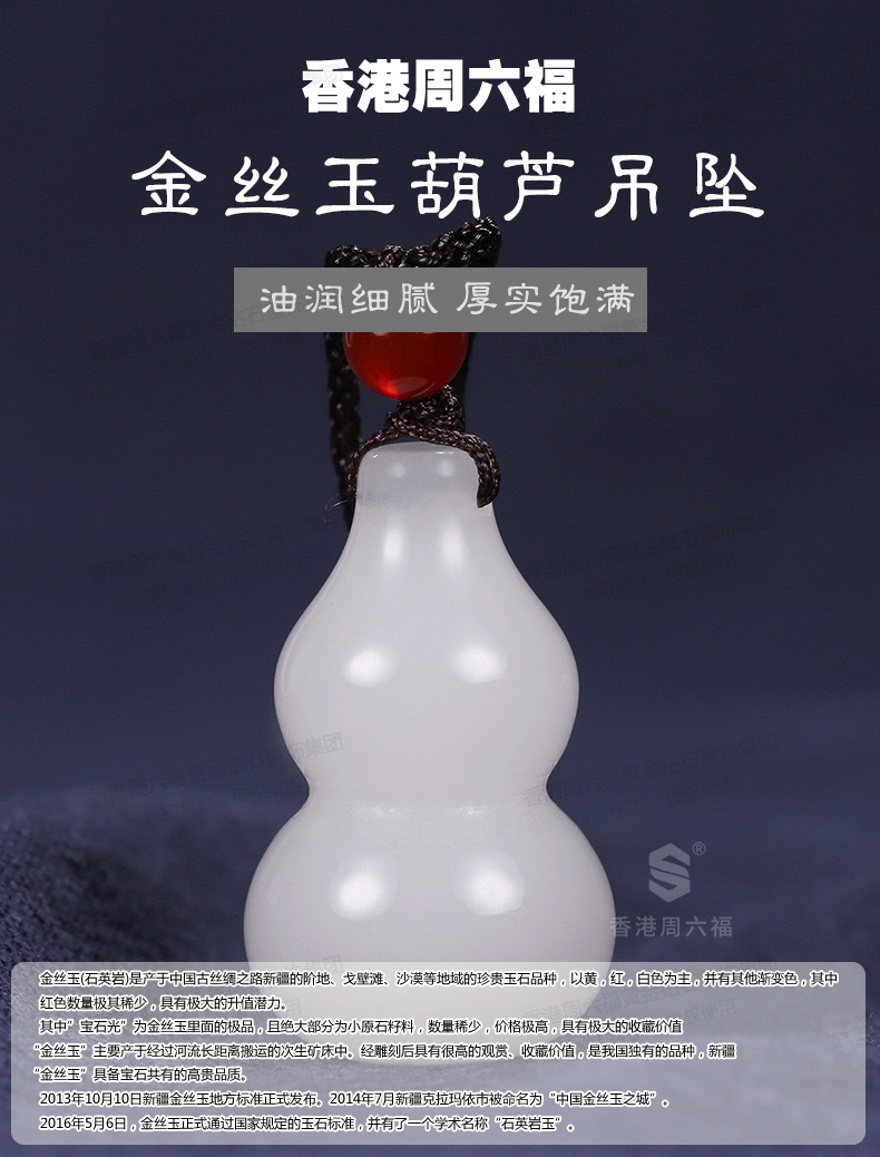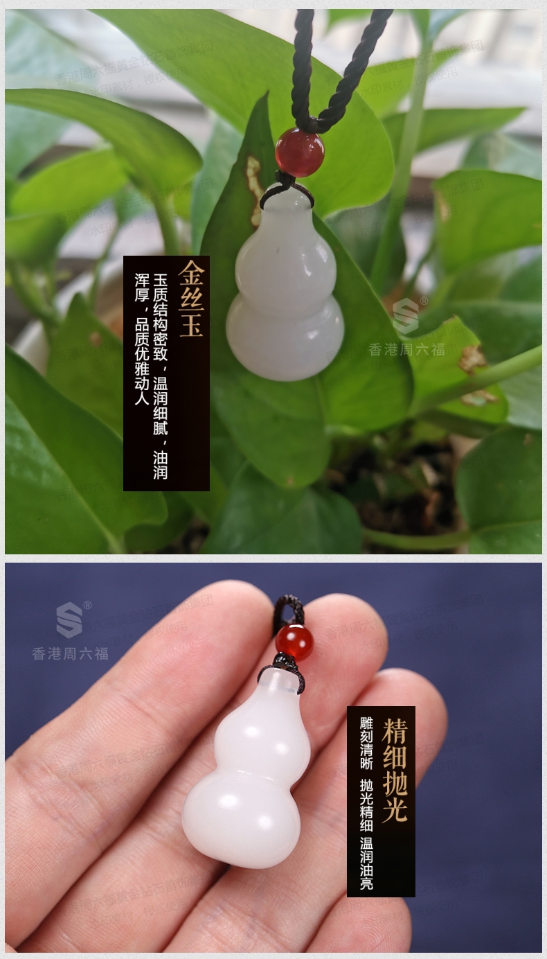 商品名称:香港周六福金丝玉福禄双全葫芦吊坠