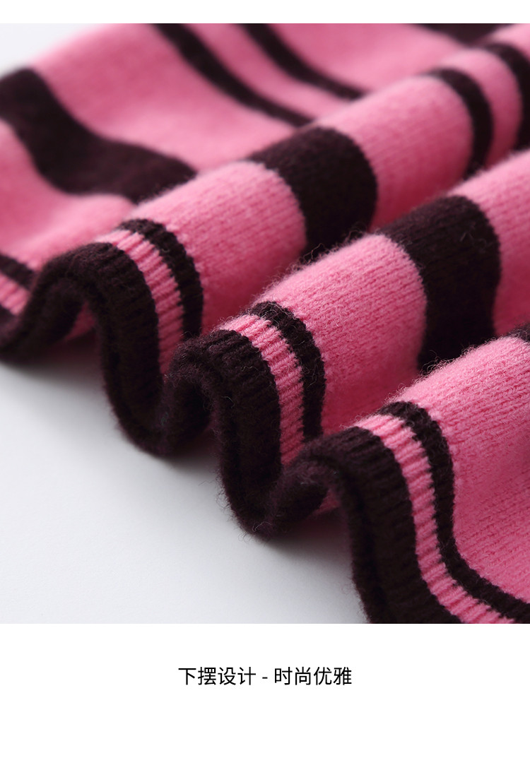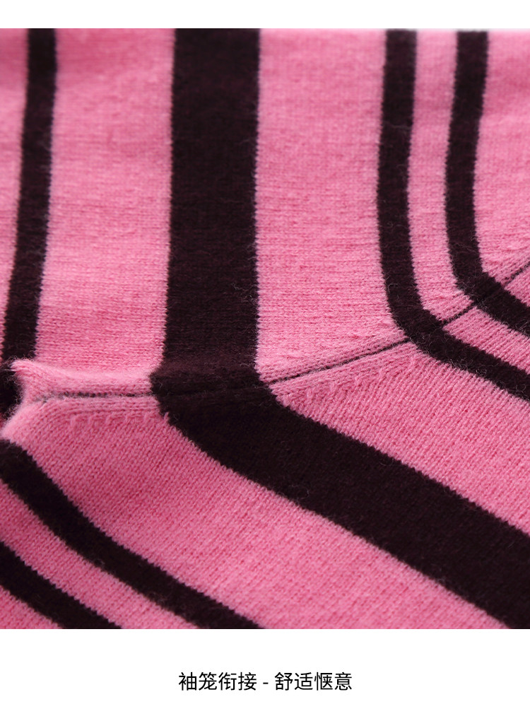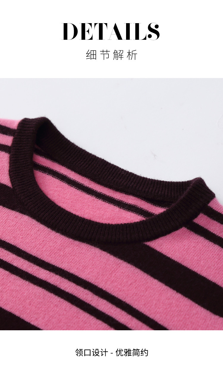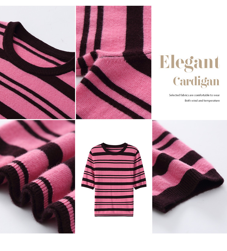 商品名称:撞色条纹圆领短袖100%羊毛上衣女式针织衫T恤 887059