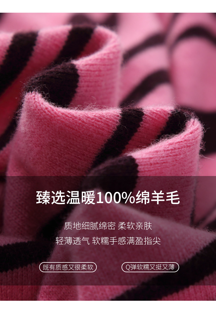 撞色条纹圆领短袖100%羊毛上衣女式针织衫T恤 887059