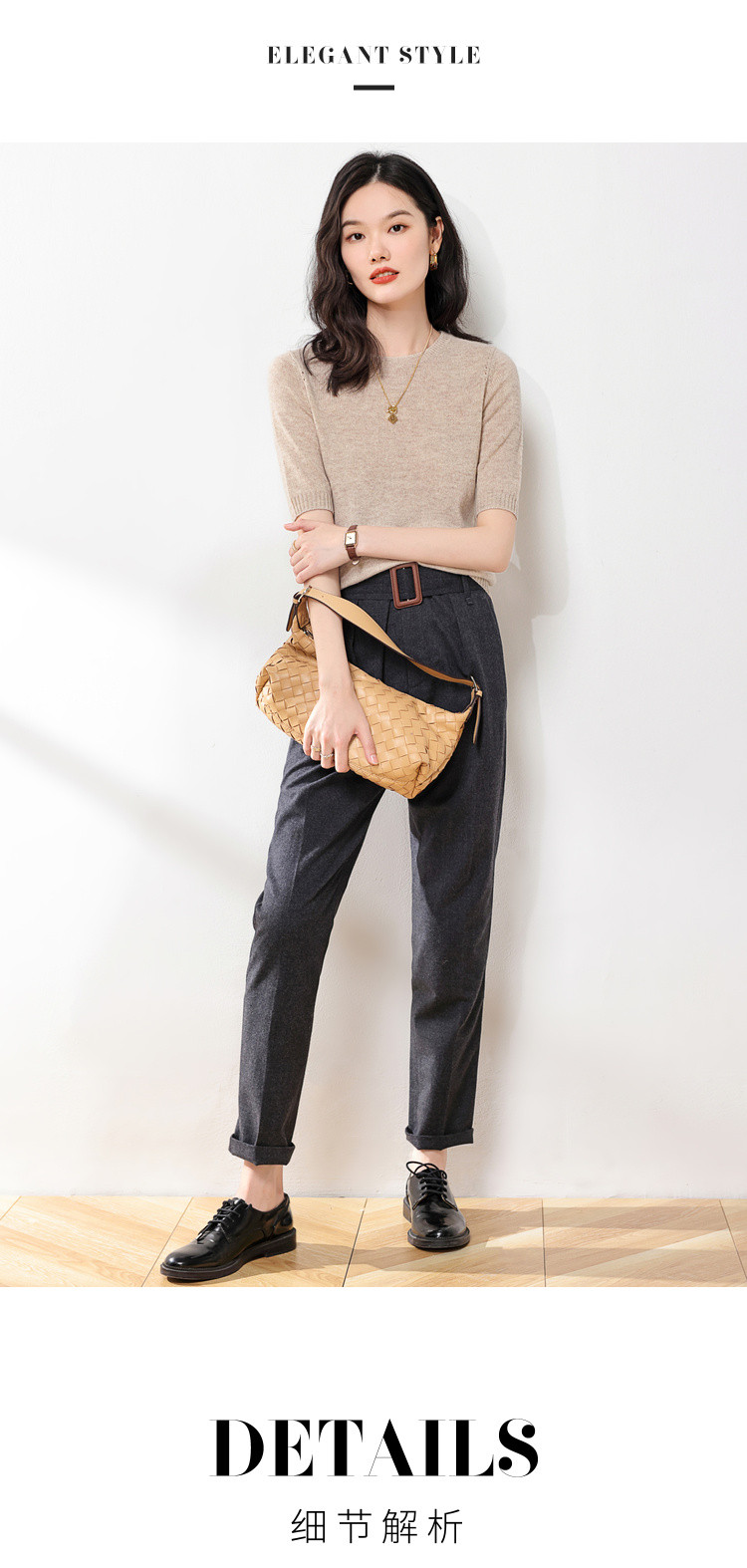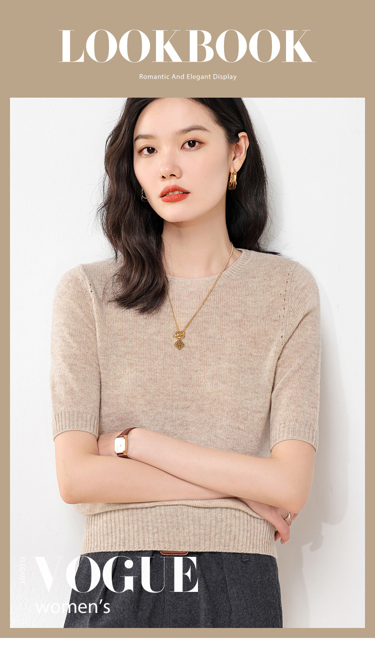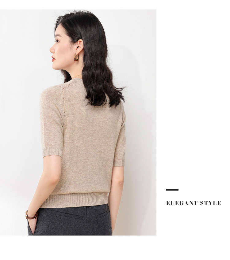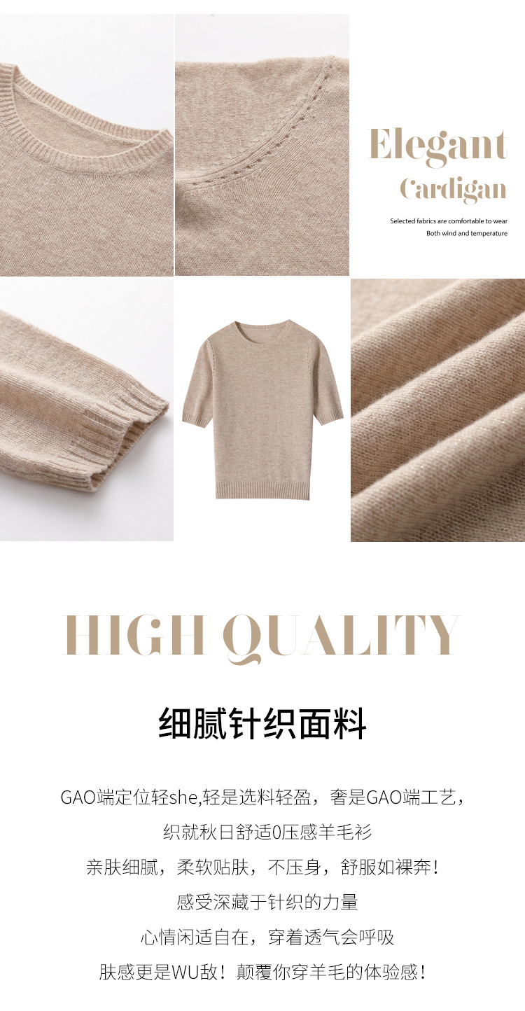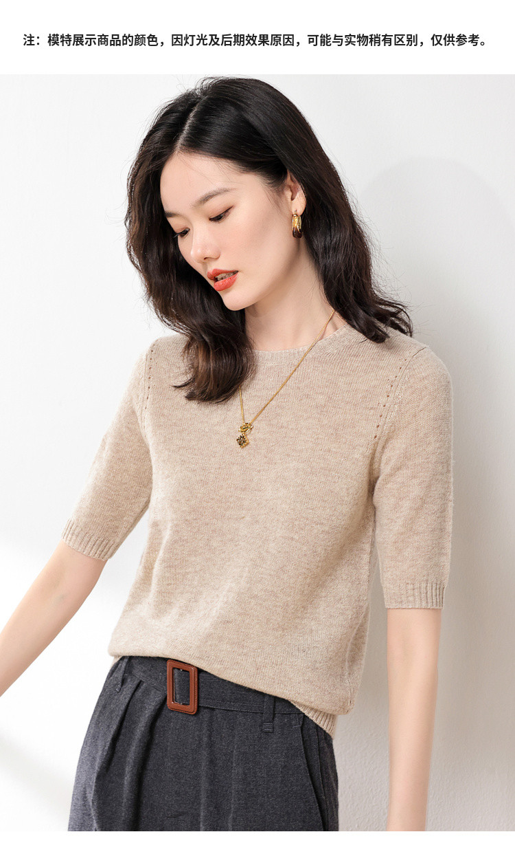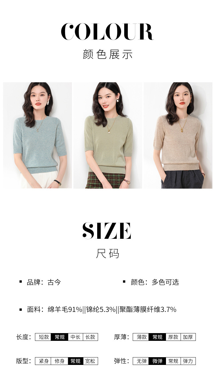 商品名称:【羊毛混纺】纯色圆领短袖T恤套衫简约百搭针织打底衫毛衣线衫 672915