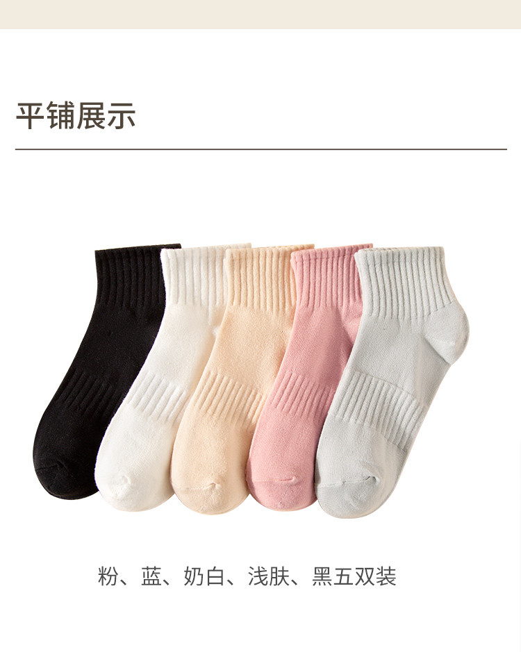 商品名称:【5双装】精致浅口短袜子女士柔软精梳棉质透气舒适亲肤 043659