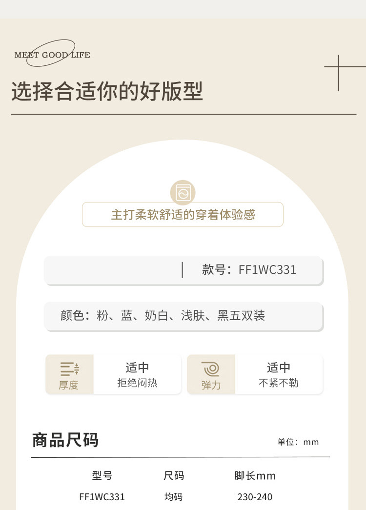 A(粉,蓝,奶白,浅肤,黑五双装)