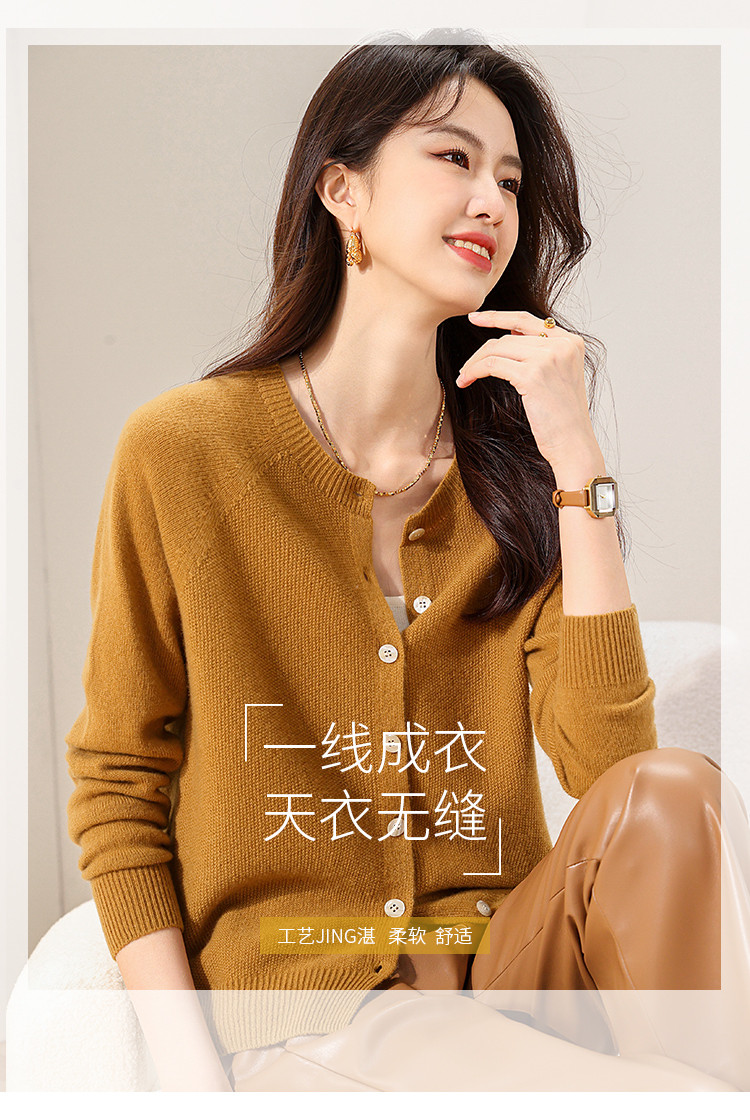 商品名称:【无缝100%羊毛】纯色基础款全羊毛衫春季针织开衫毛衣外套 491667