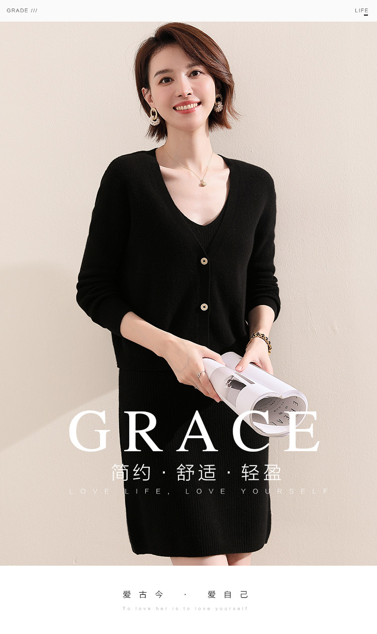 针织衫甜美宽松V领针织衫毛衣气质针织上衣 625667