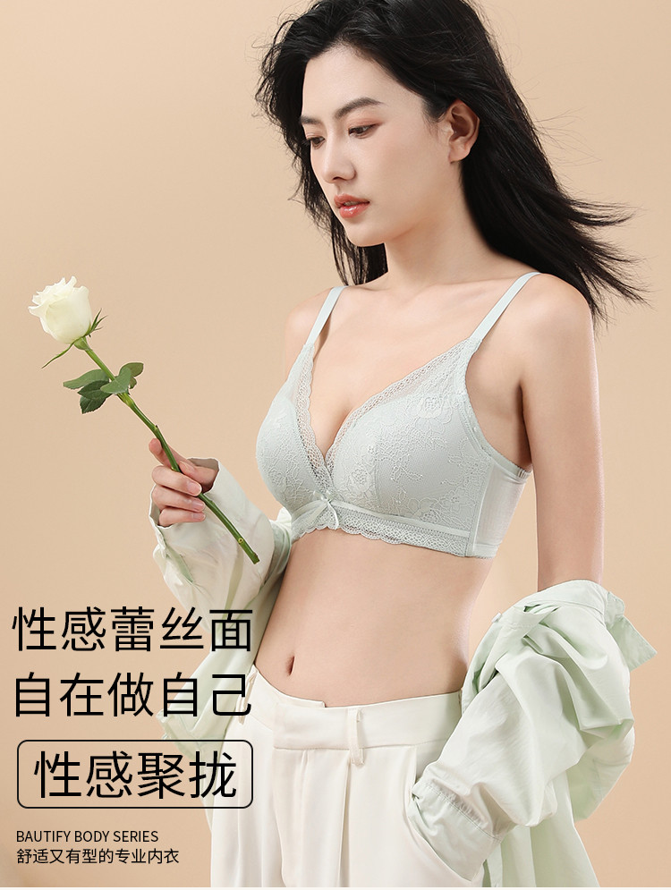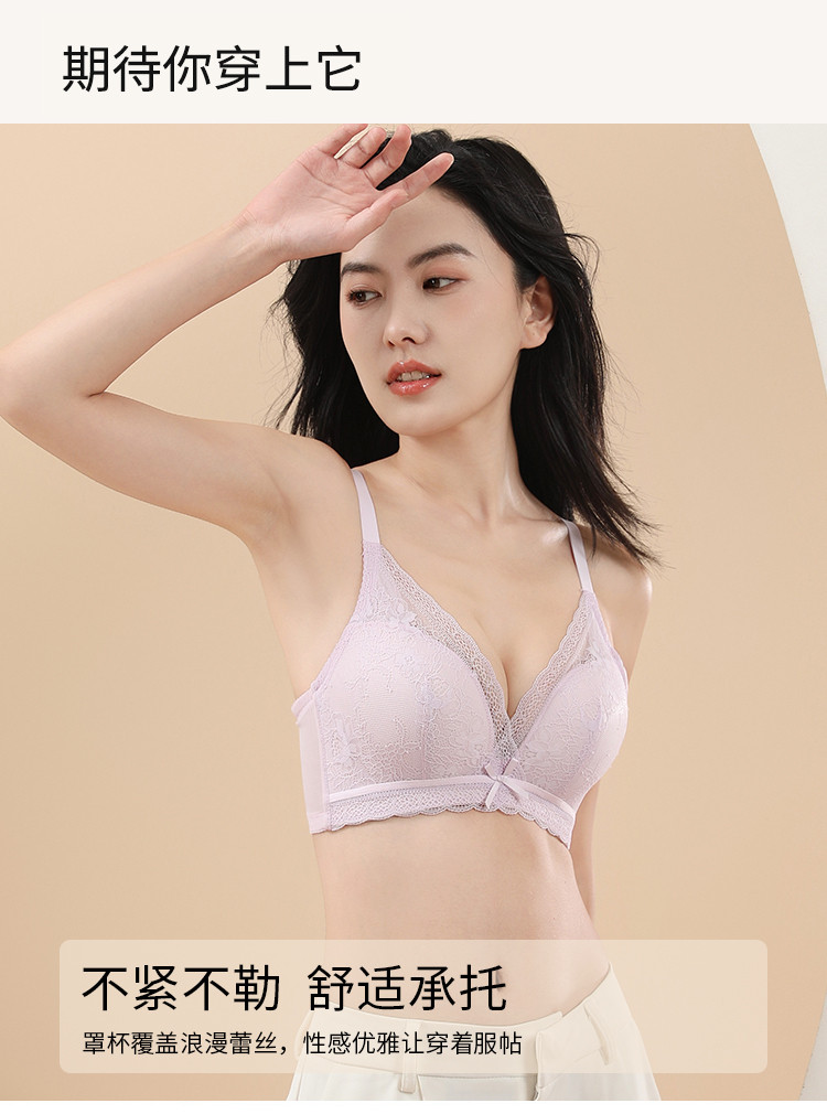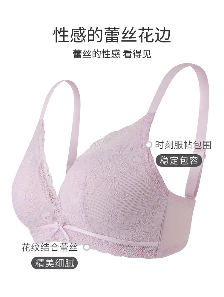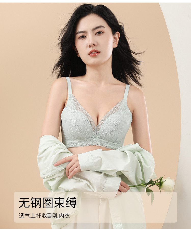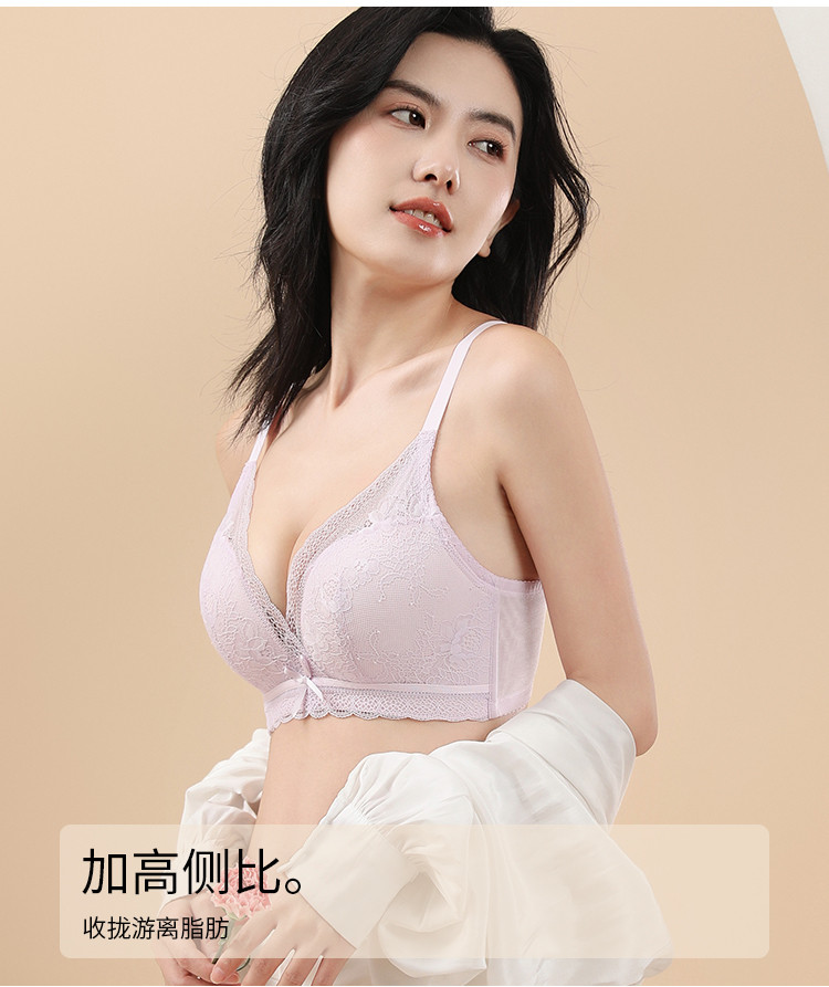 商品名称:【聚拢不空杯】文胸罩夏季无钢圈蕾丝网纱透气上托收副乳内衣女 487691