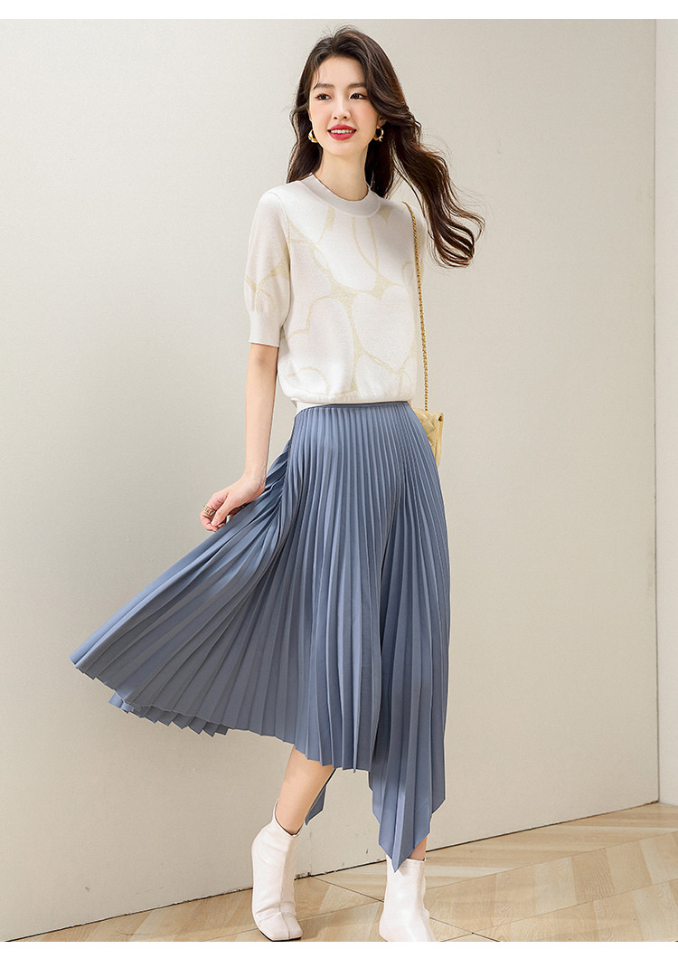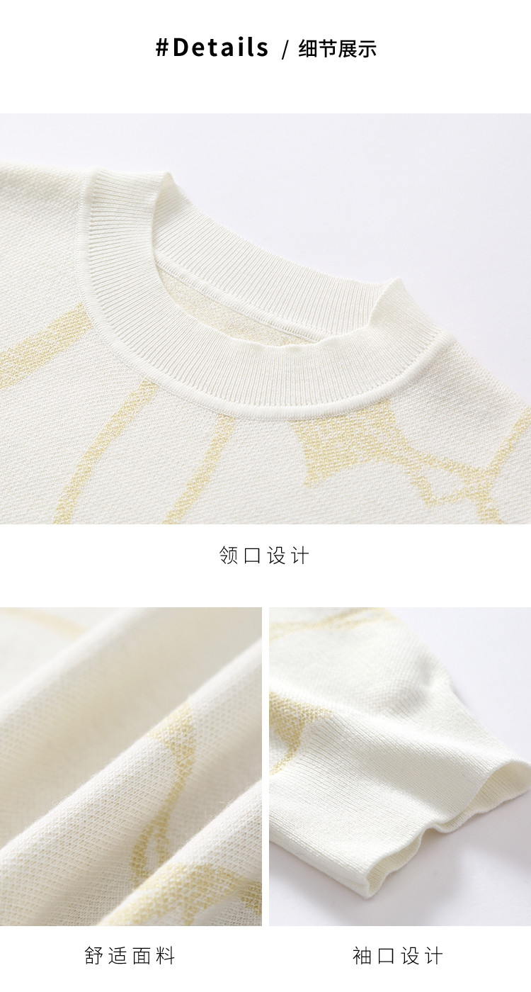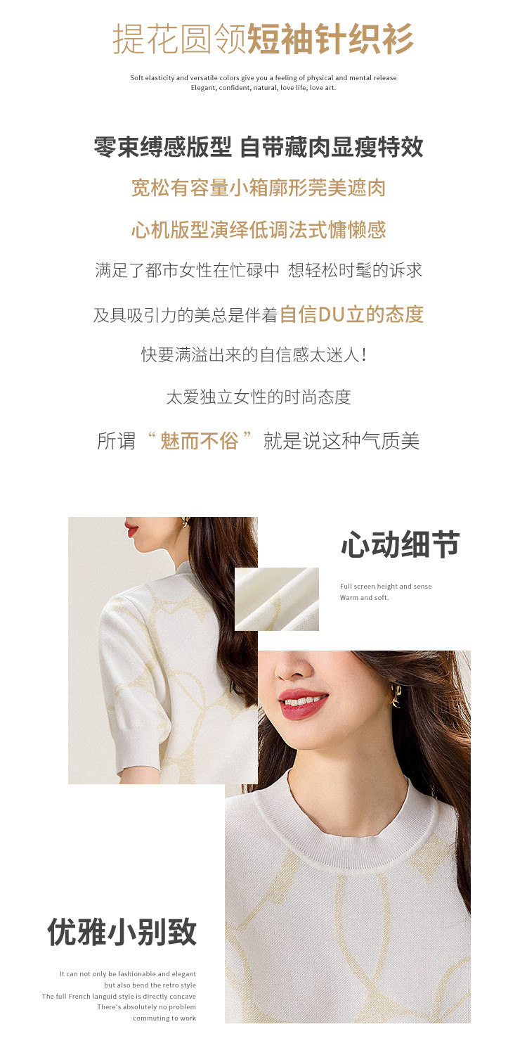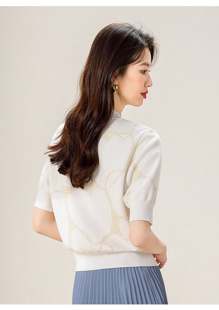 商品名称:圆领爱心提花含桑蚕丝针织打底衫短袖T恤针织衫女 715347