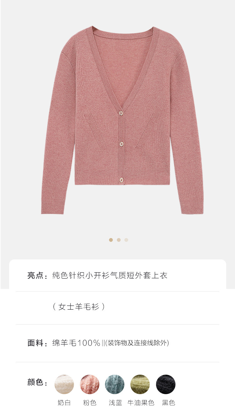 商品名称:【100%绵羊毛】纯色针织小开衫减龄短毛衣外套上衣羊毛衫 177619