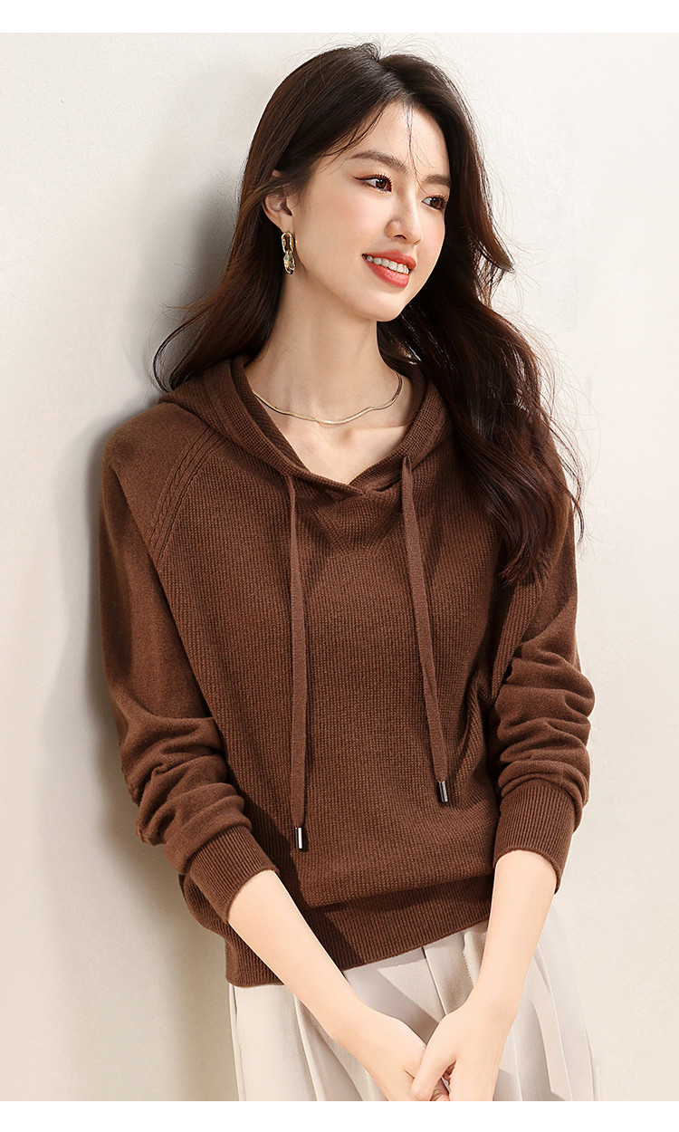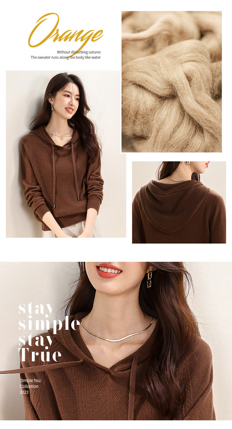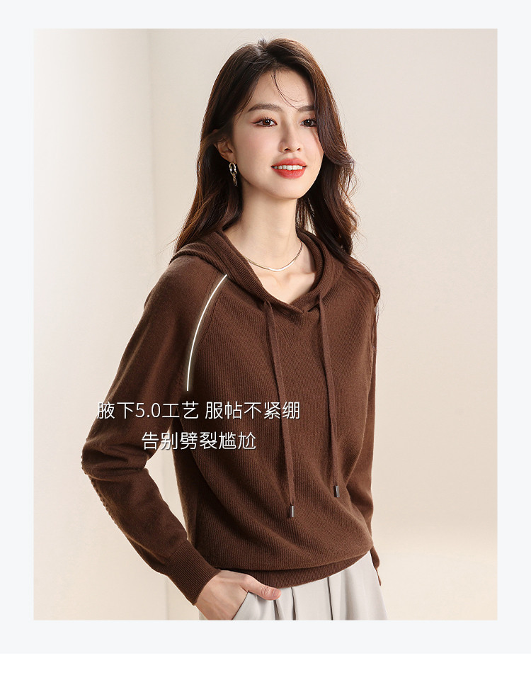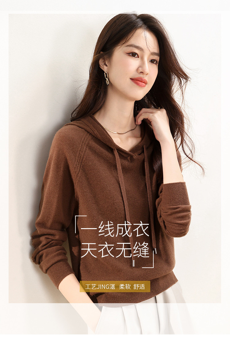 商品名称:【无缝100%绵羊毛】春季连帽羊毛衫女针织衫时尚卫衣毛衣 936531