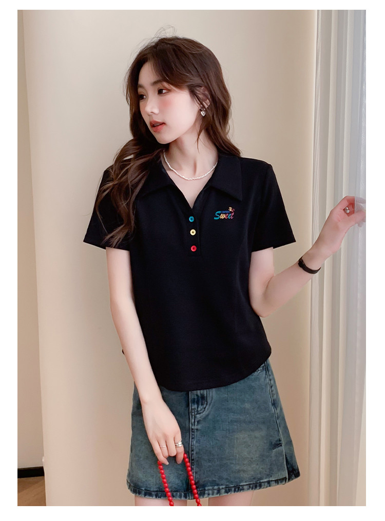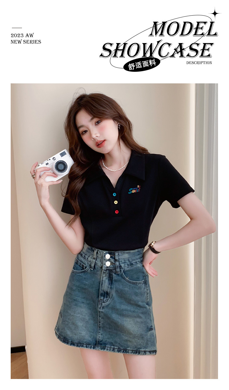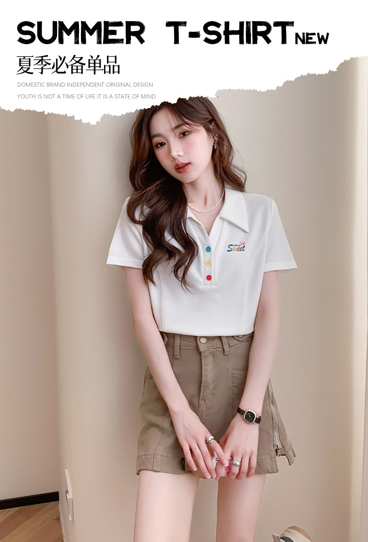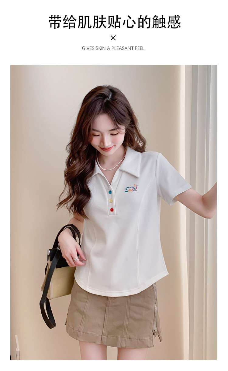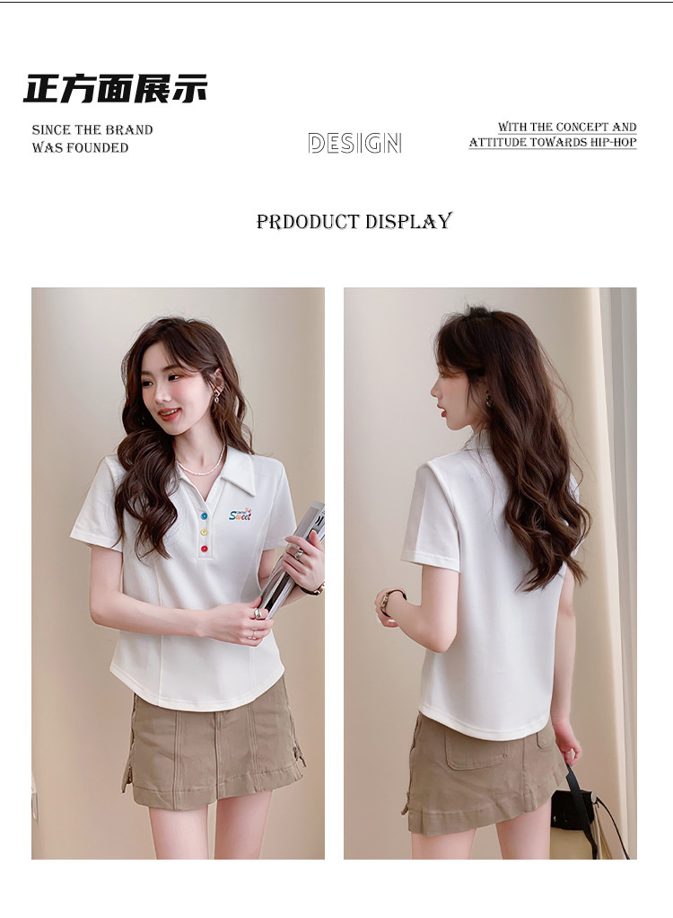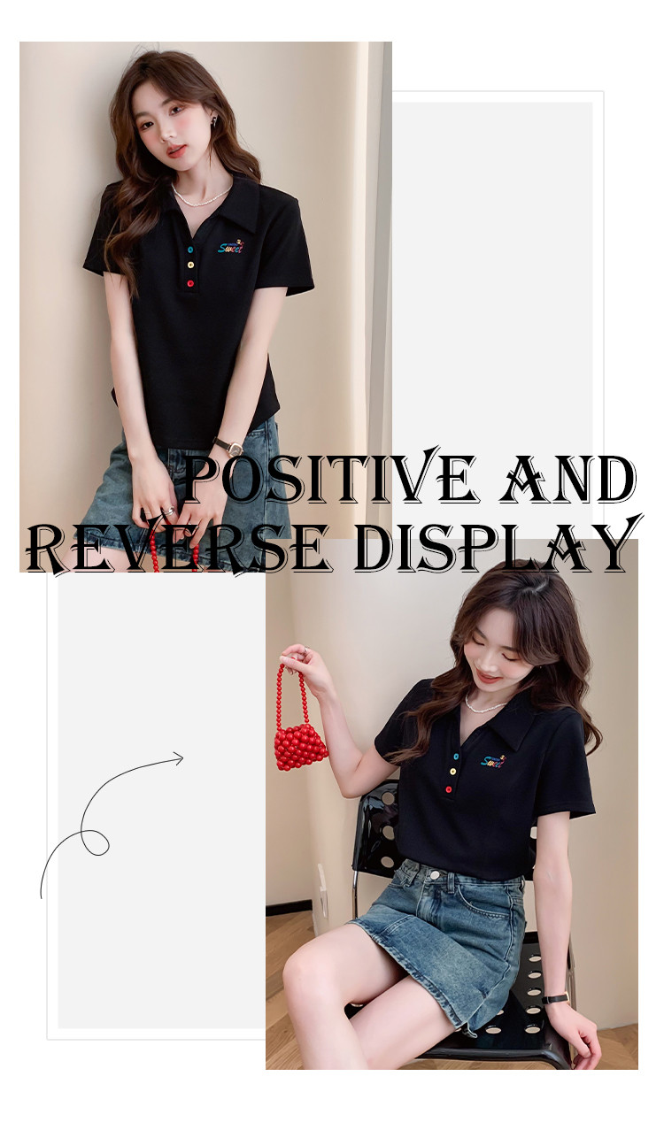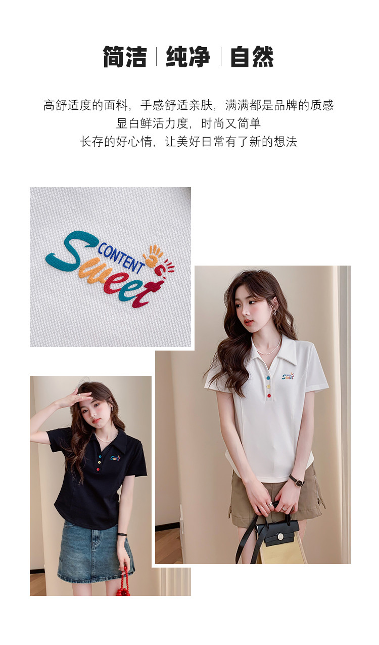 商品名称:夏季潮款女式T恤优雅商务风时尚印花修身显瘦翻领舒适POLO衫 429249