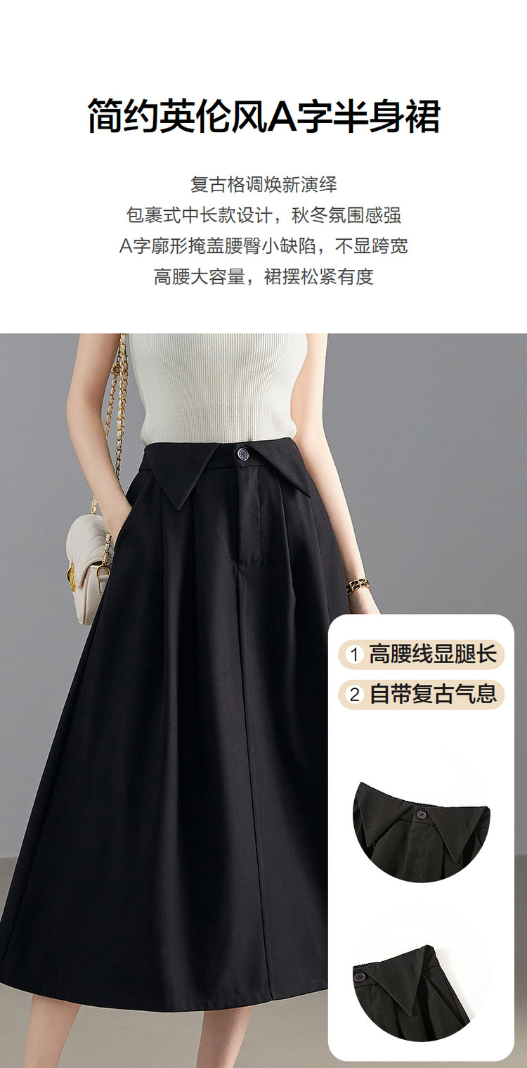 商品名称:【美拉德高光时刻】春秋复古腔调a字女裙子自然腰扣式半身裙女长 626945