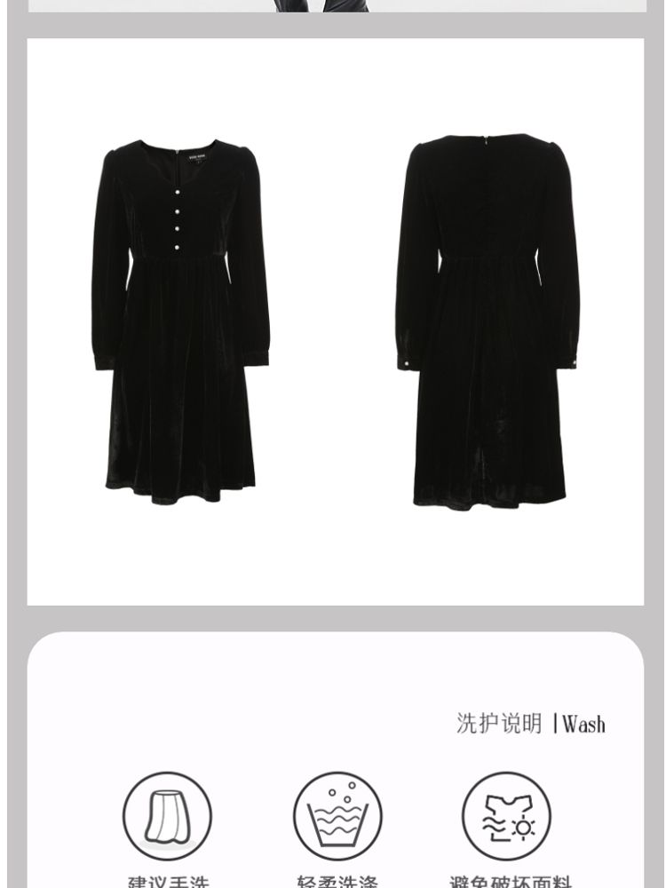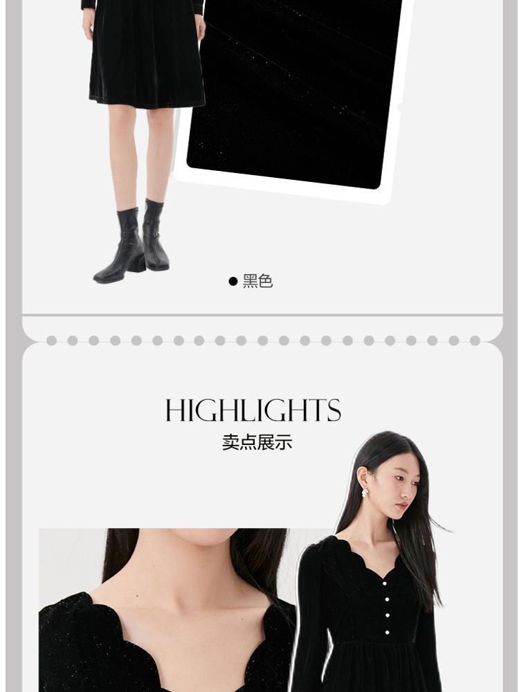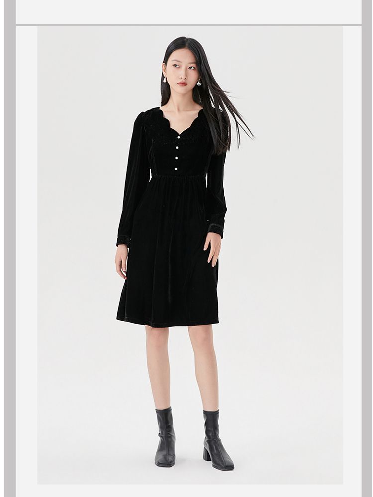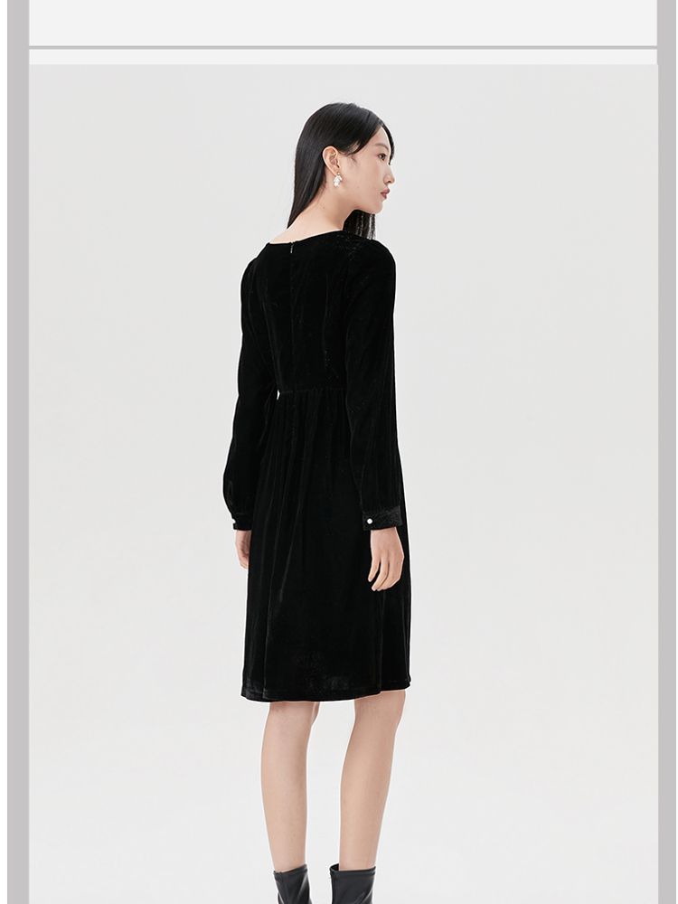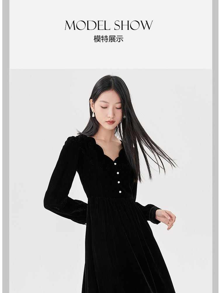 商品名称:【丝绒光泽 花瓣领设计】春夏款收腰显瘦泡泡袖宫廷风连衣裙百搭 803473