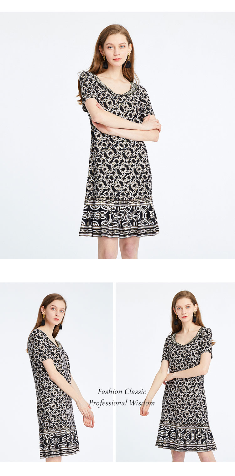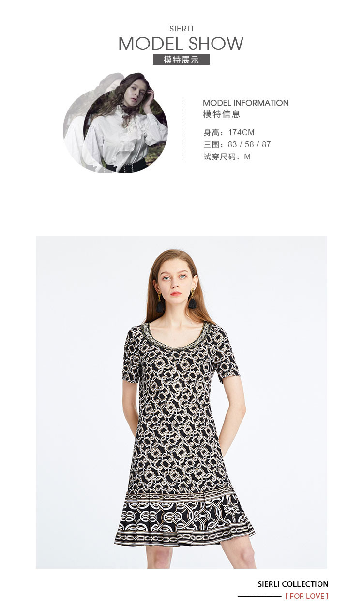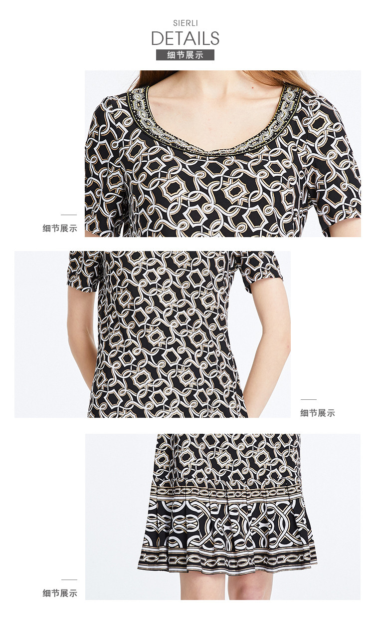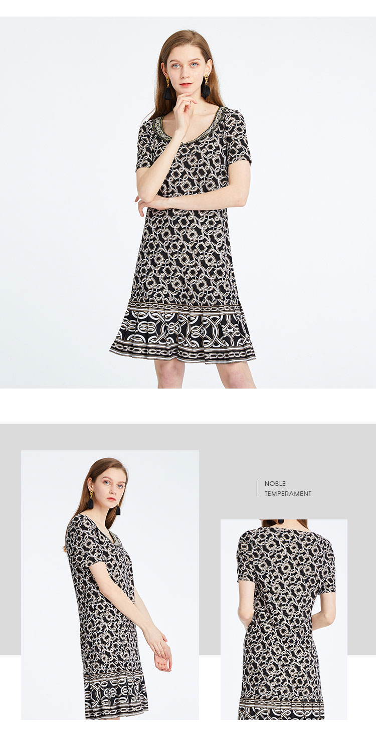 商场同款春夏女装显瘦简约通勤印花连衣裙 464607