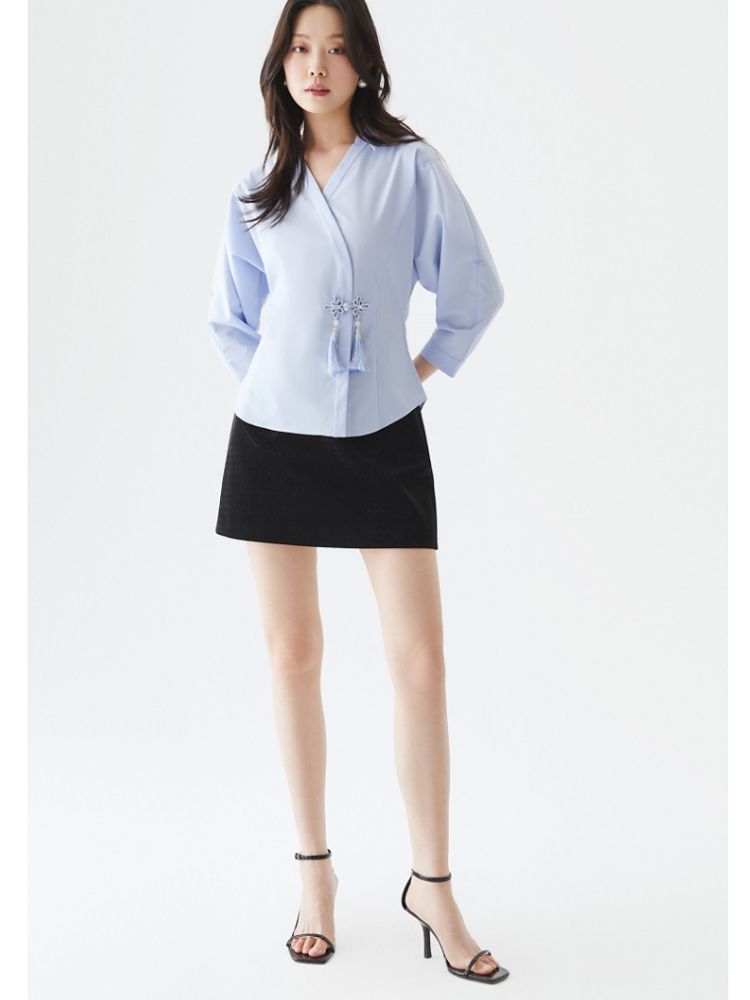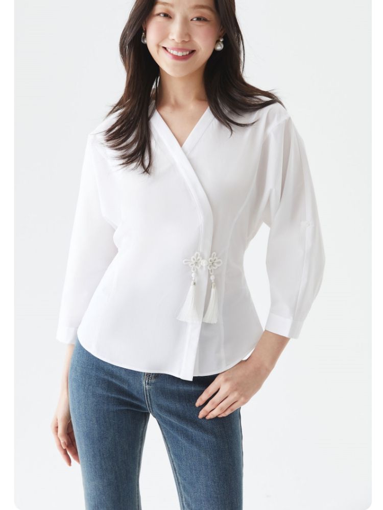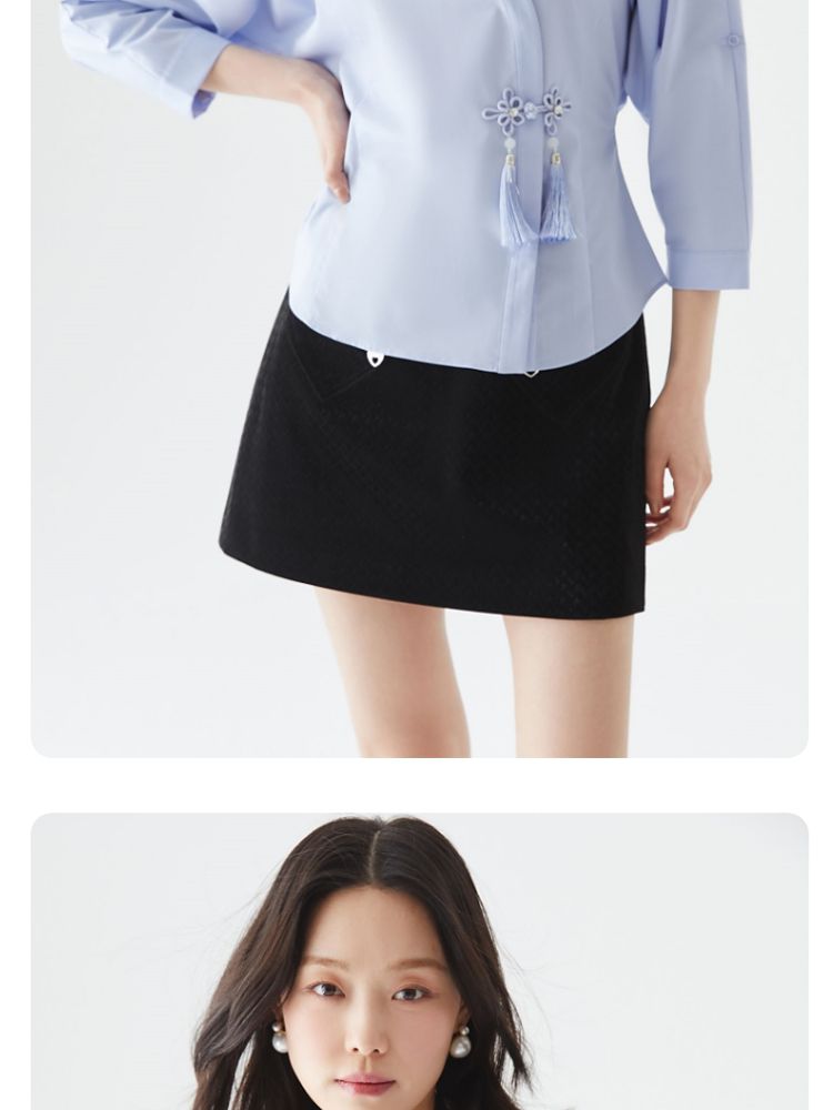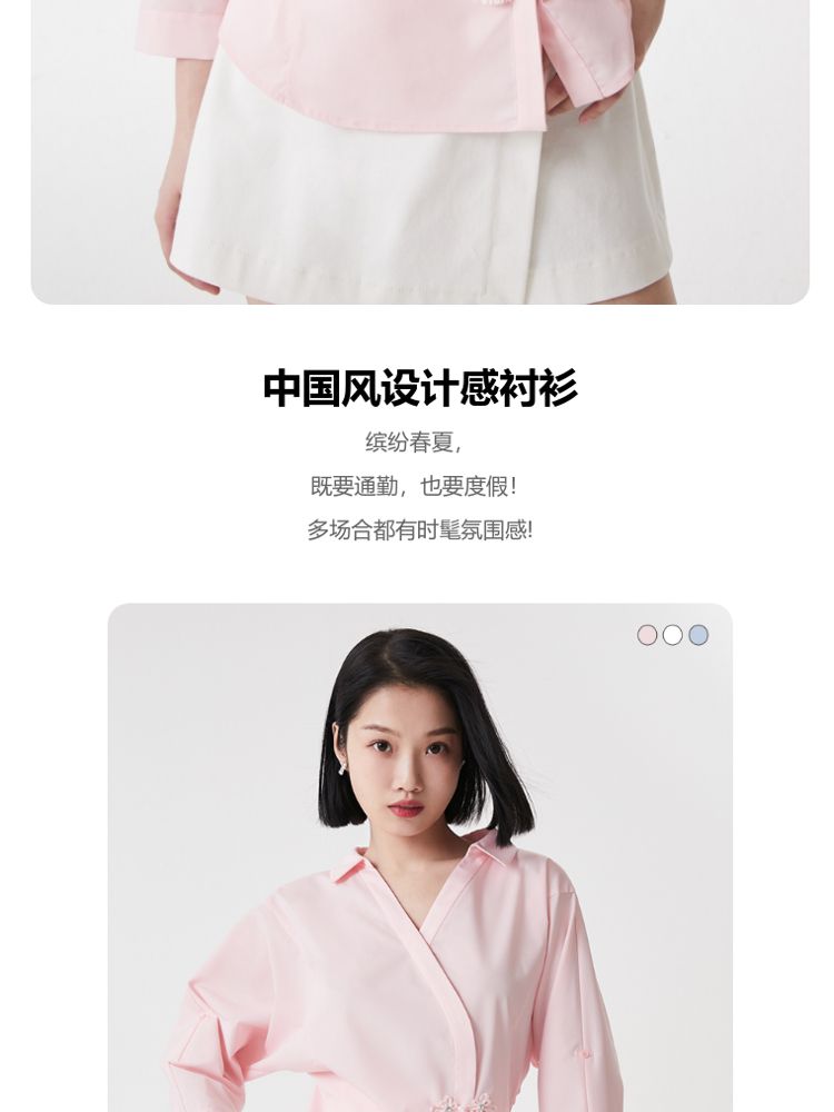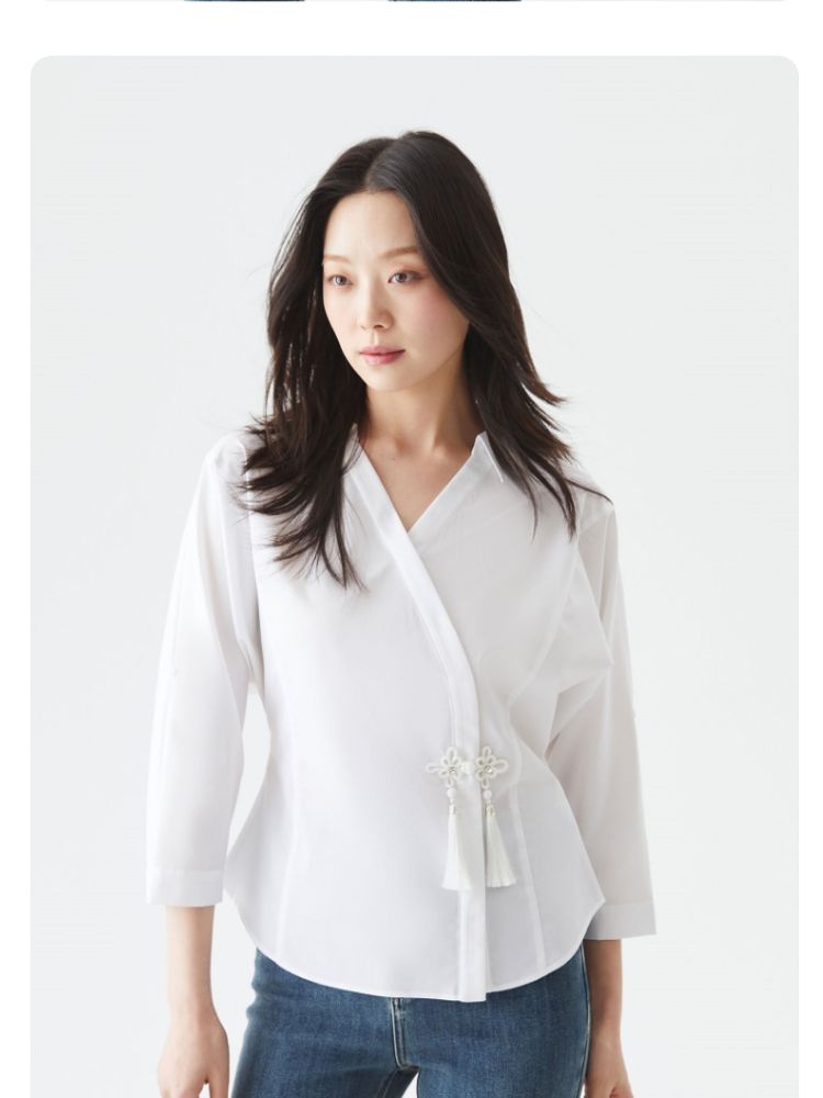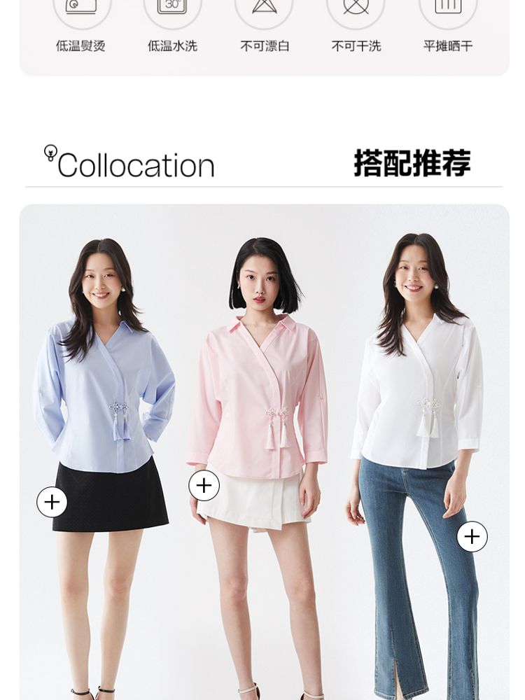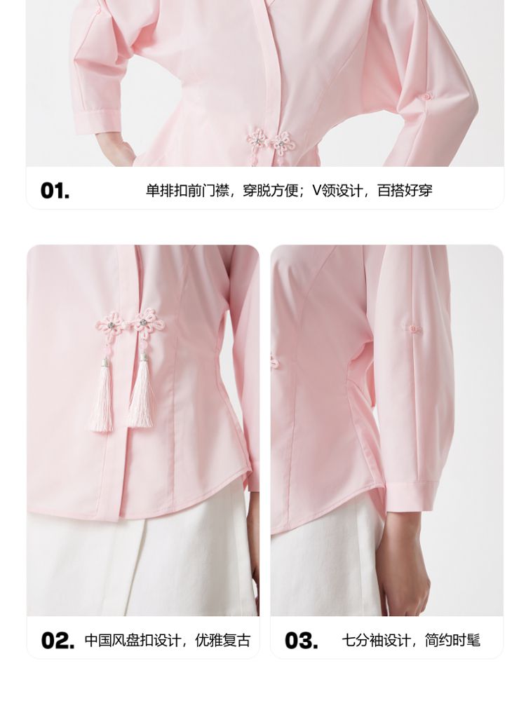 商品名称:【中国风】春夏优雅中式盘扣V领七分袖衬衫气质百搭时尚 838353