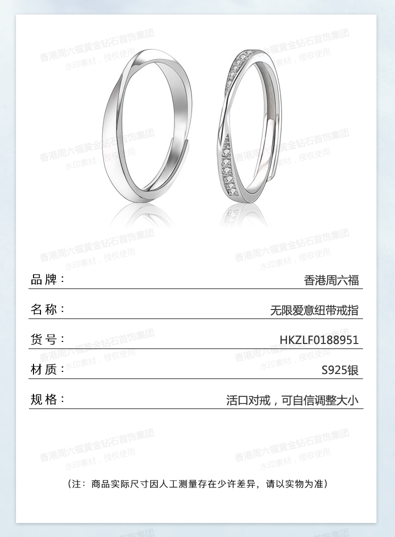 商品名称:香港周六福偏爱系列-莫比乌斯无限爱意情侣钻戒(对)(钛铂金)