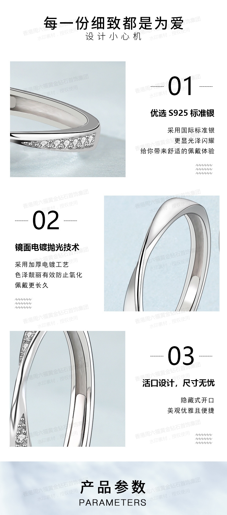 香港周六福偏爱系列-莫比乌斯无限爱意情侣钻戒(对)(钛铂金)