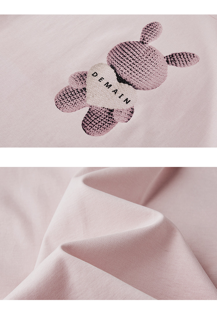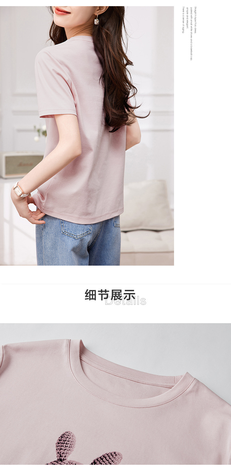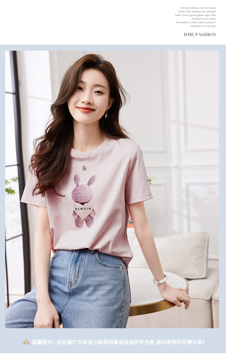 商品名称:【童话小镇】夏云朵纯棉兔兔印花烫钻短袖t恤女舒适遮肉女式t恤 054081