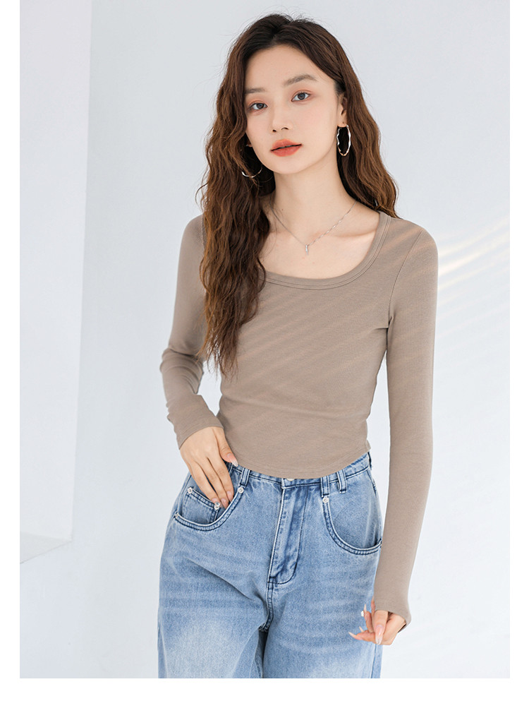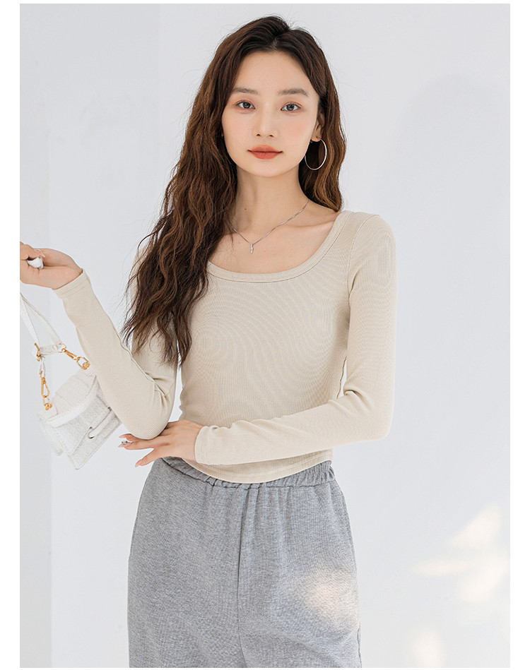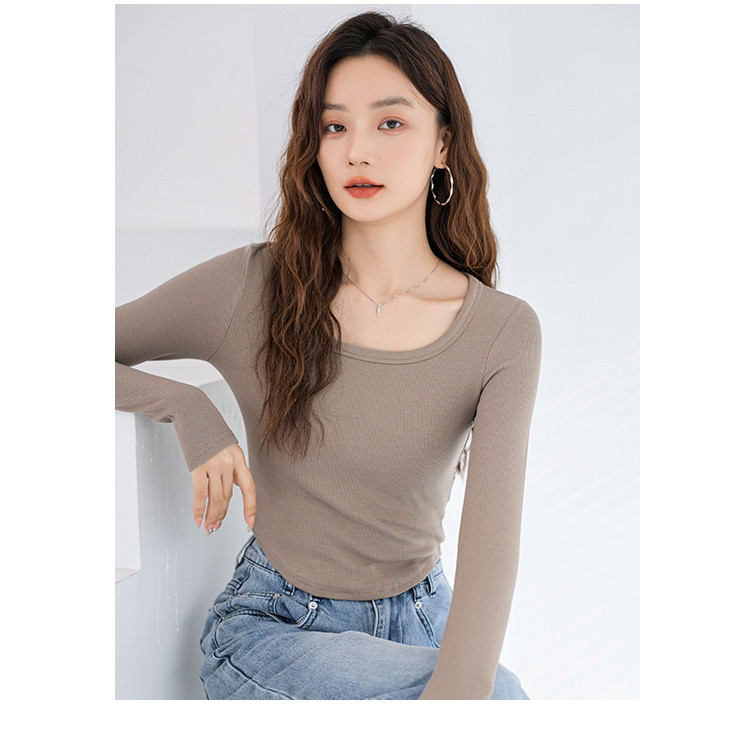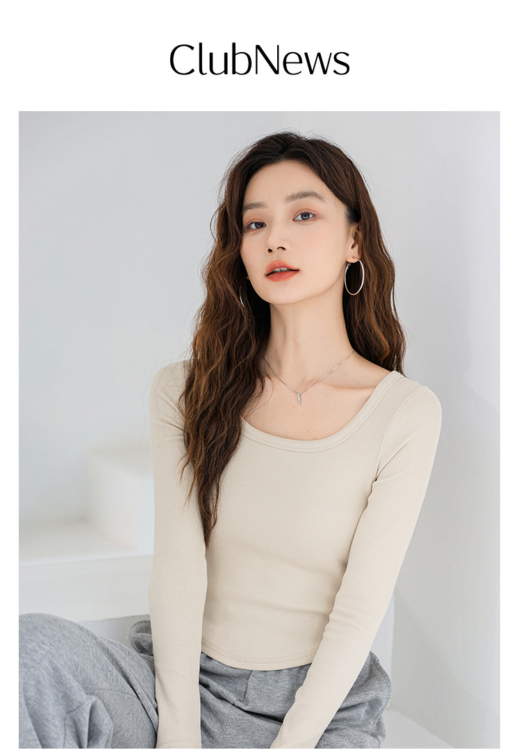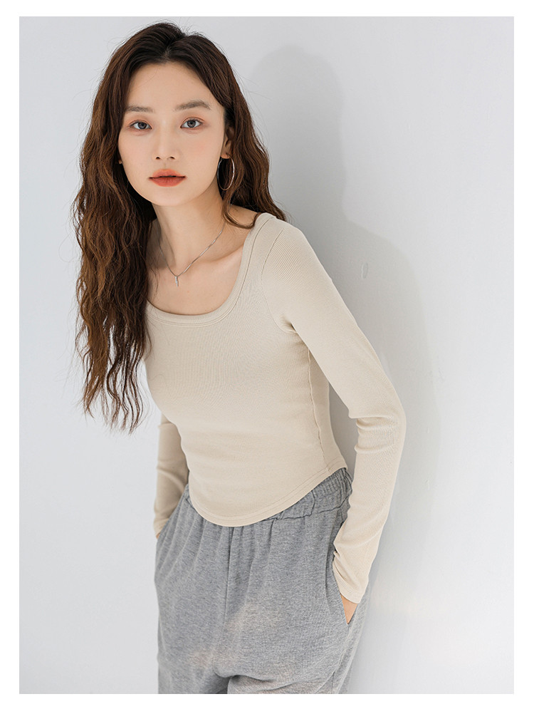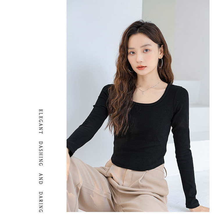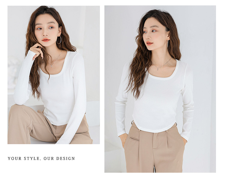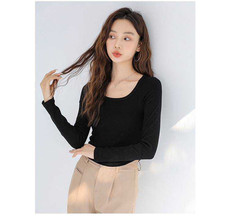 商品名称:方领长袖打底衫女内搭不规则修身正肩锁骨针织上衣 907267