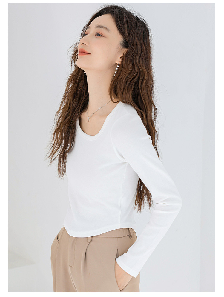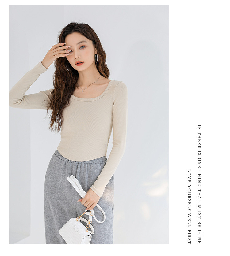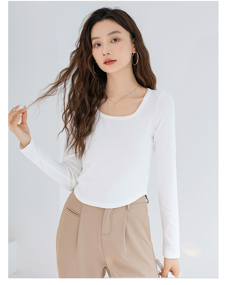 方领长袖打底衫女内搭不规则修身正肩锁骨针织上衣 907267