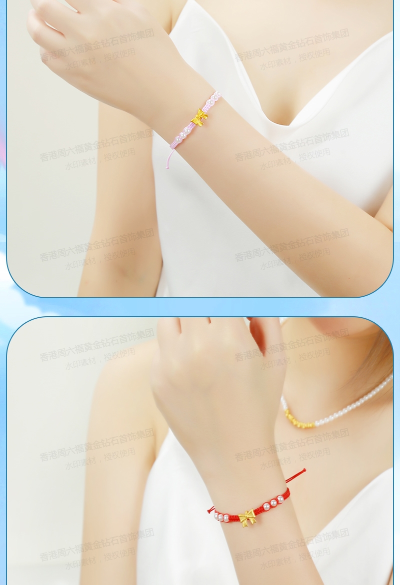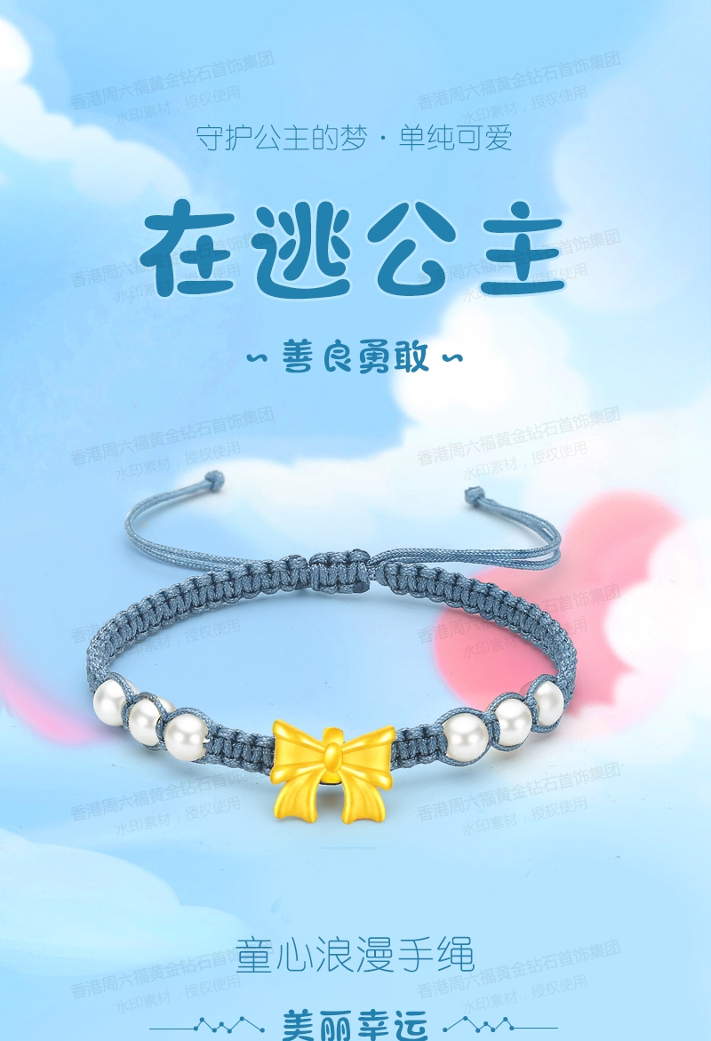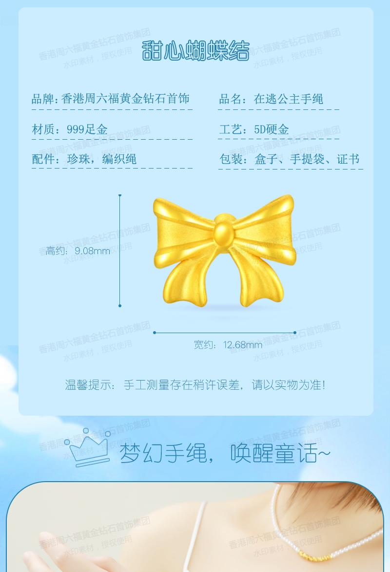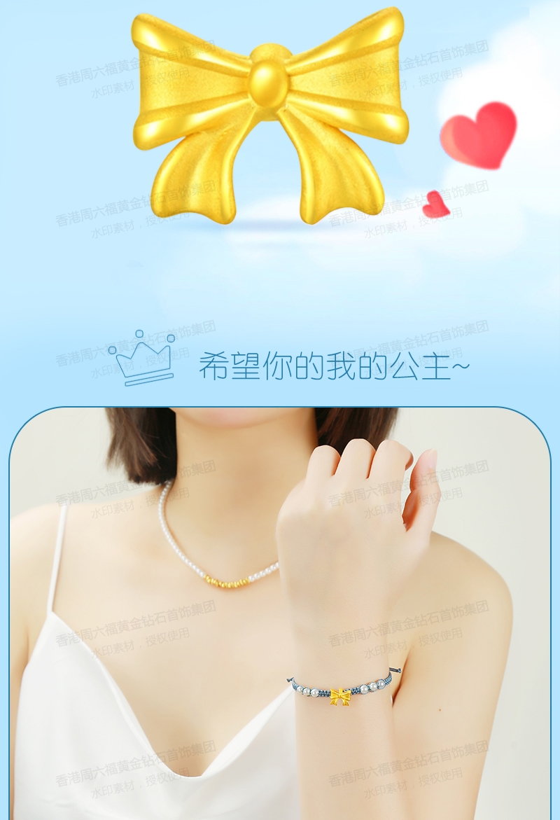 商品名称:香港周六福在逃公主黄金蝴蝶结珍珠手链