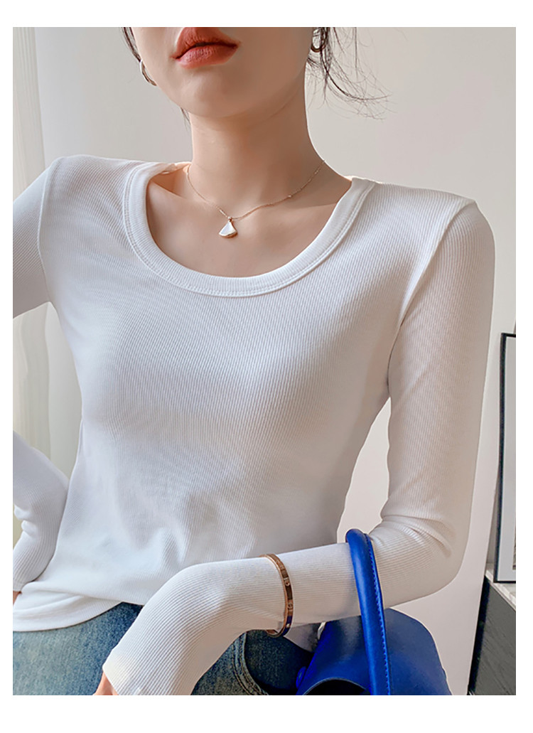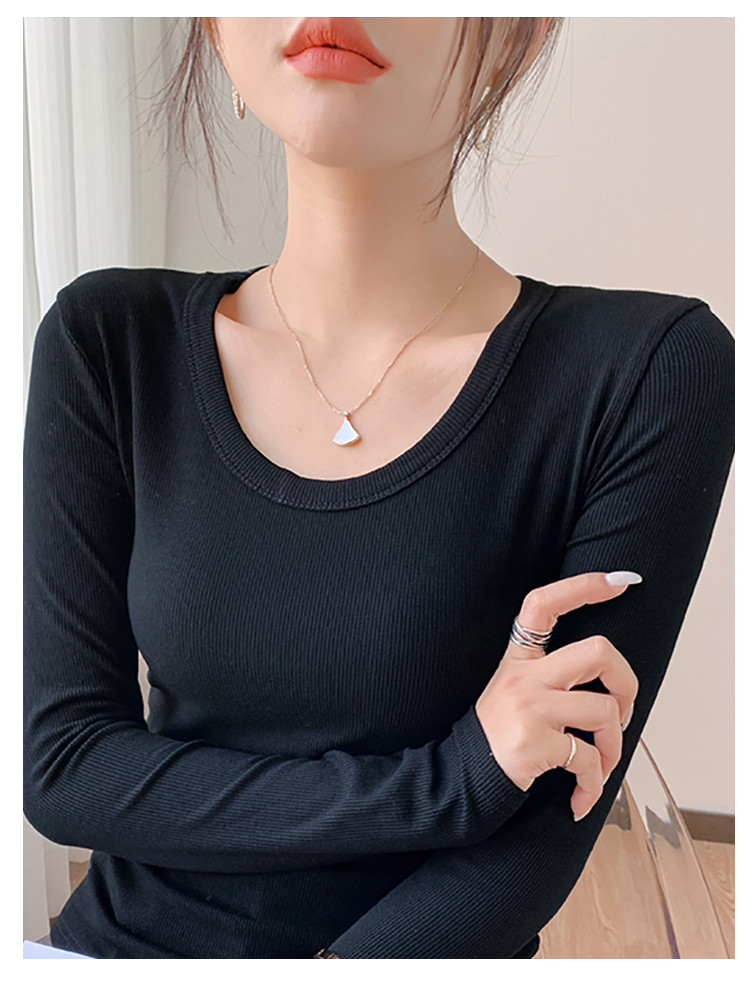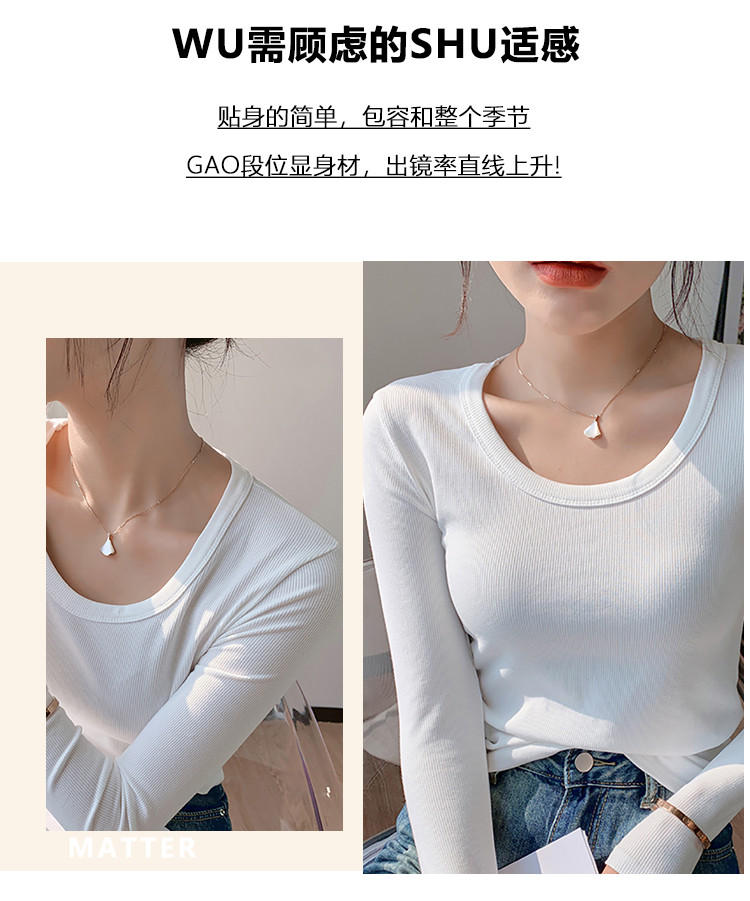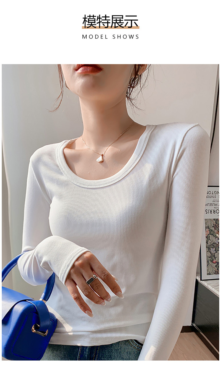 商品名称:U型领长袖t恤女内搭基础性感锁骨修身长袖针织t恤女 278787