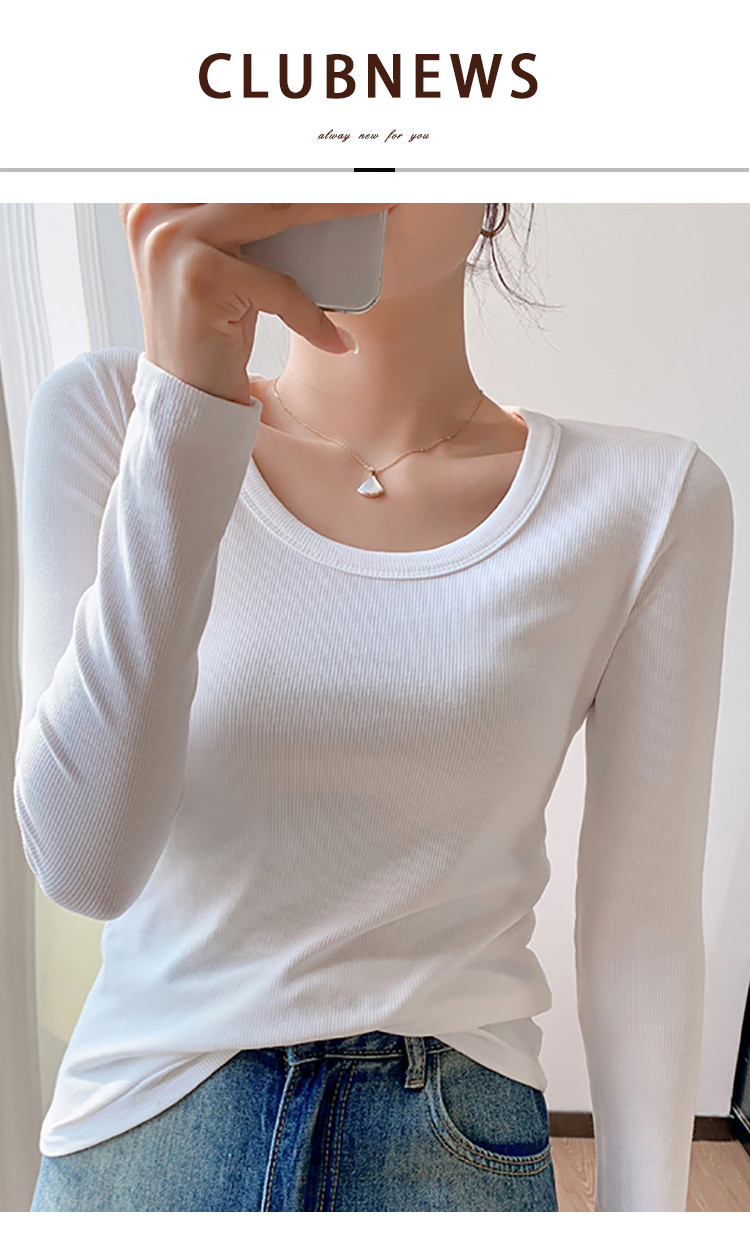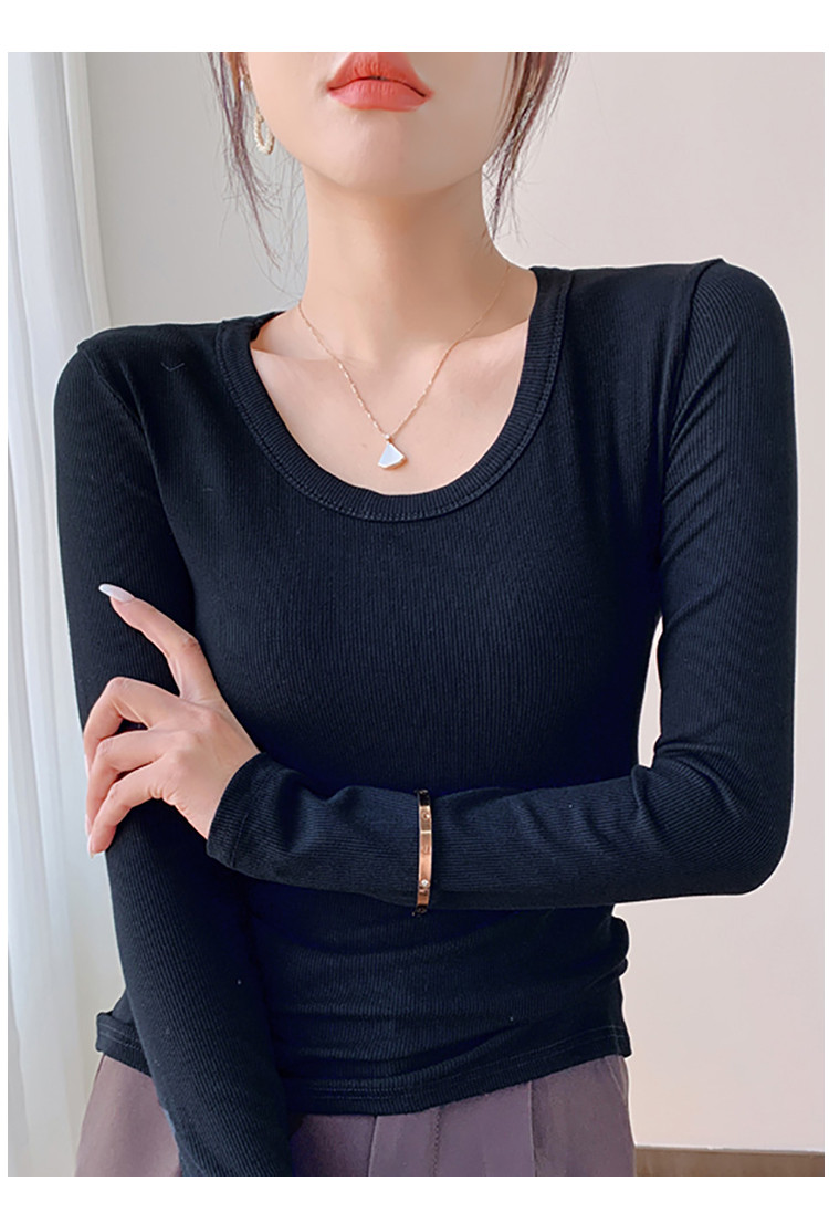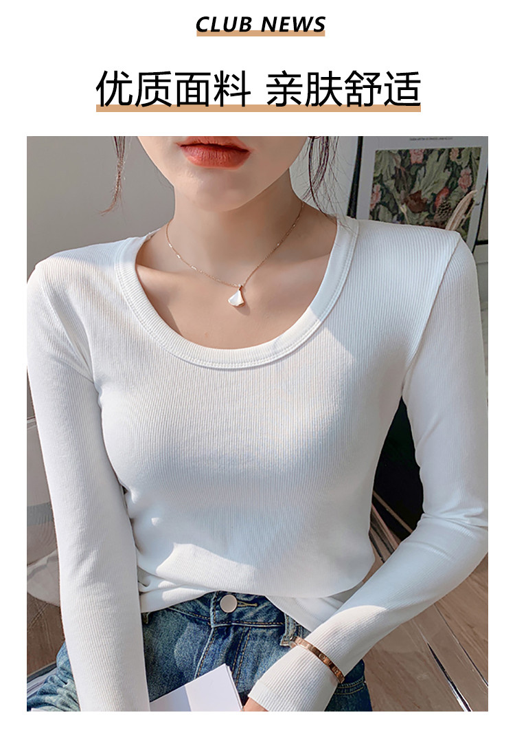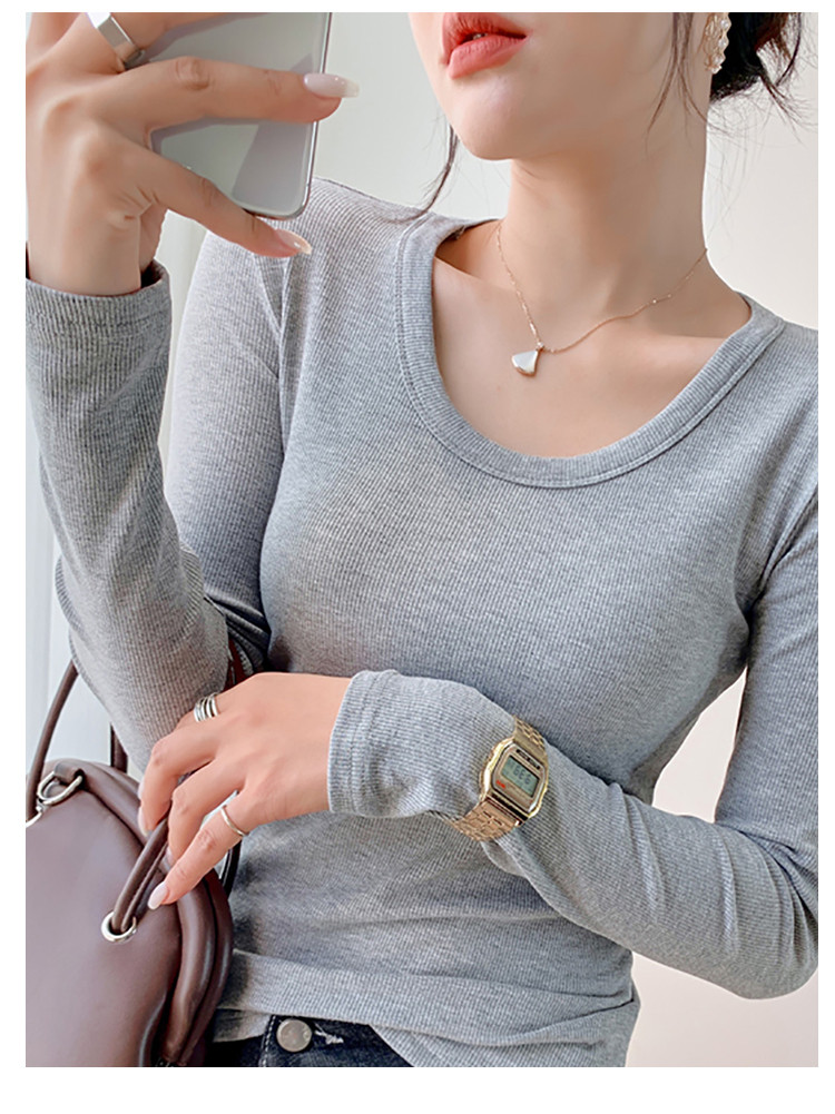商品名称:U型领长袖t恤女内搭基础性感锁骨修身长袖针织t恤女 278787