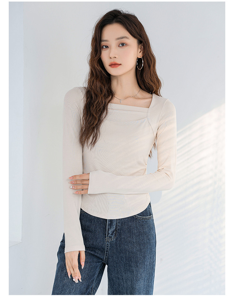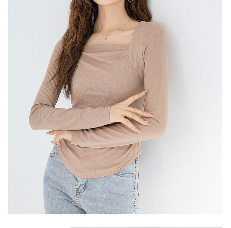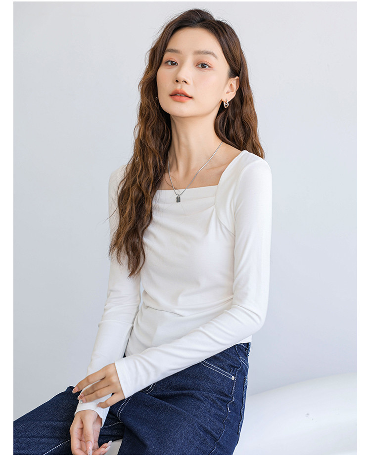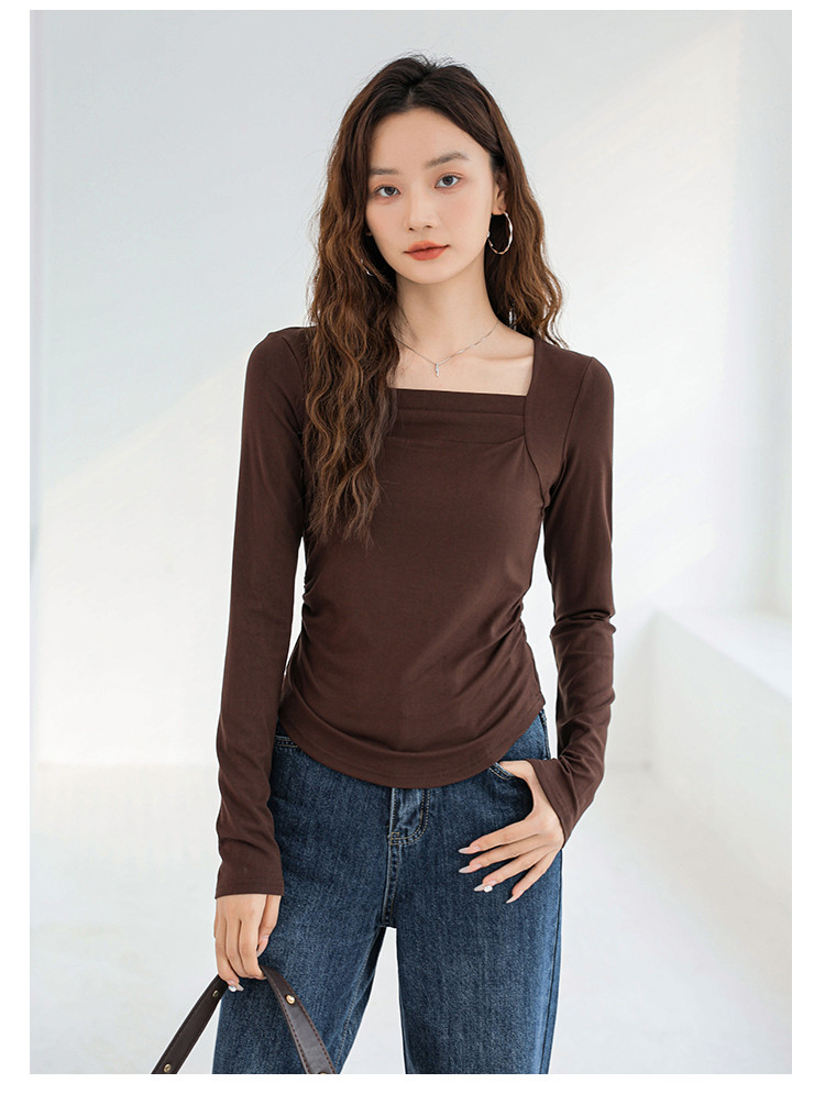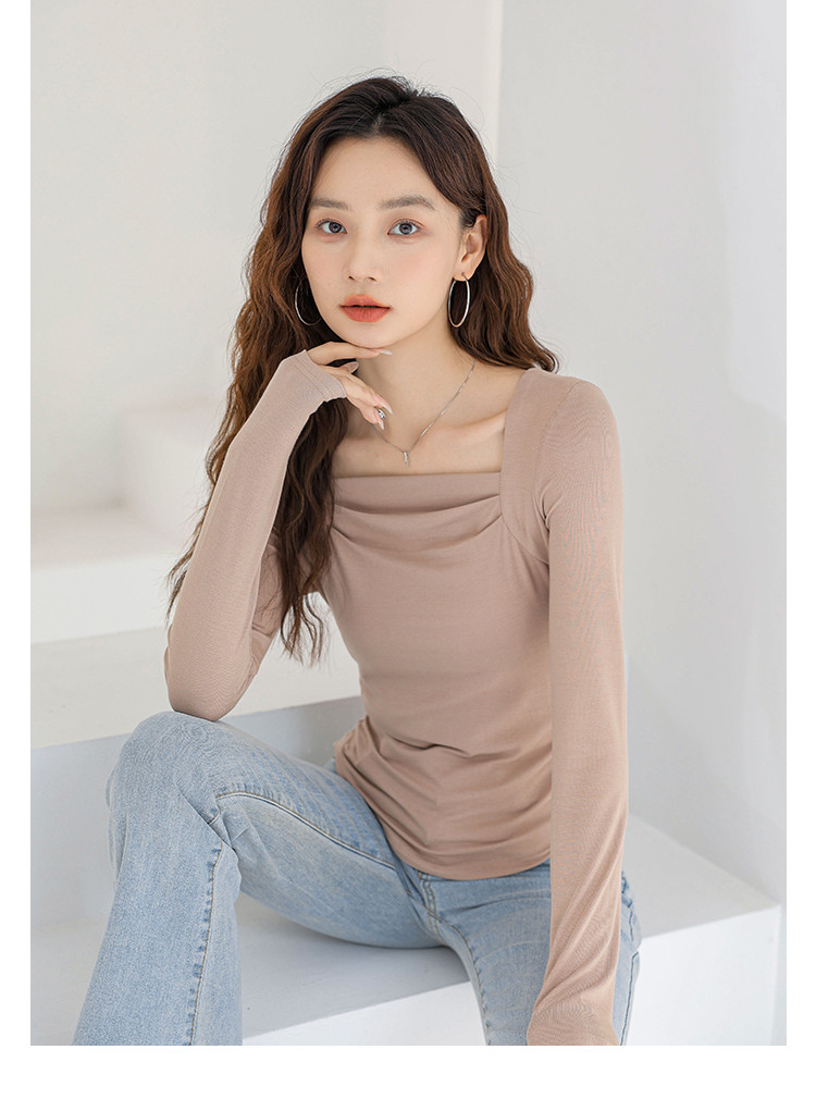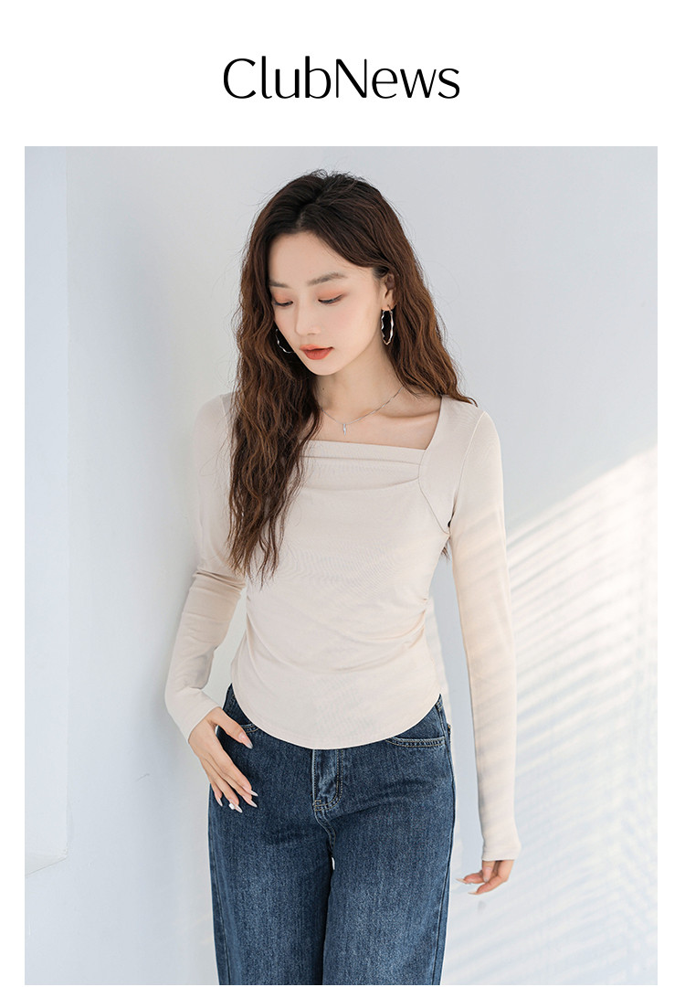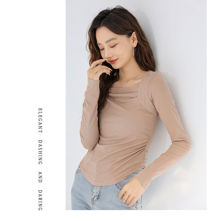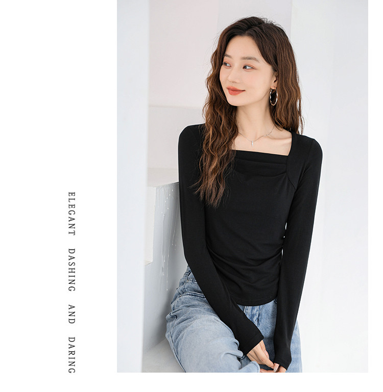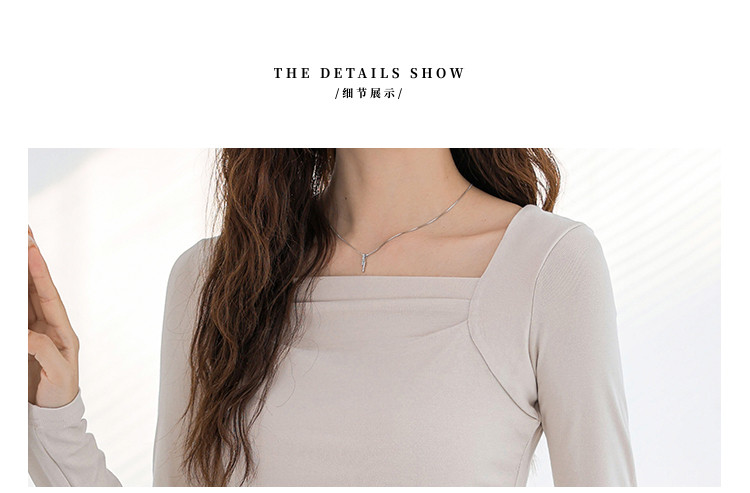 方领磨毛内搭打底衫女设计感修身气质长袖针织上衣 262659