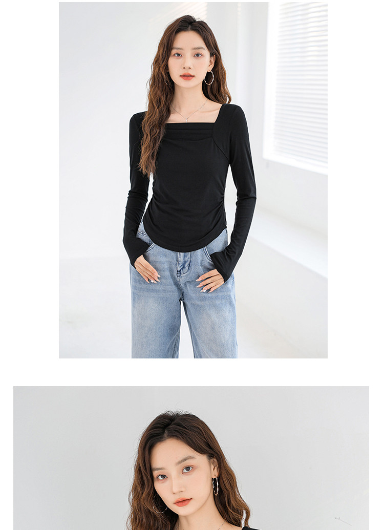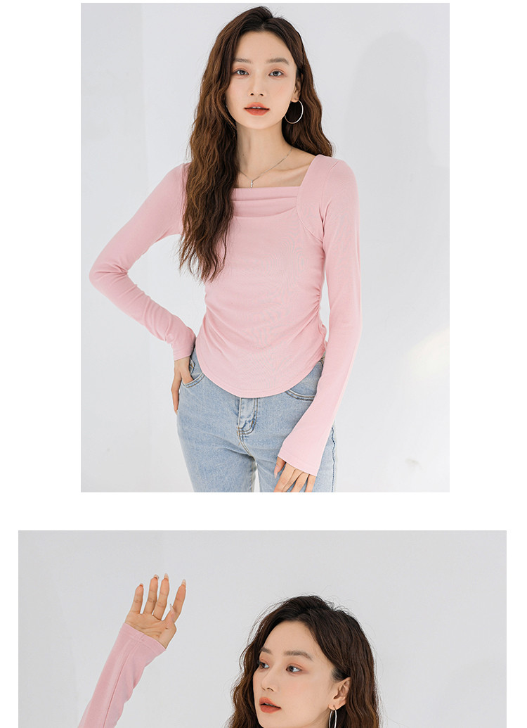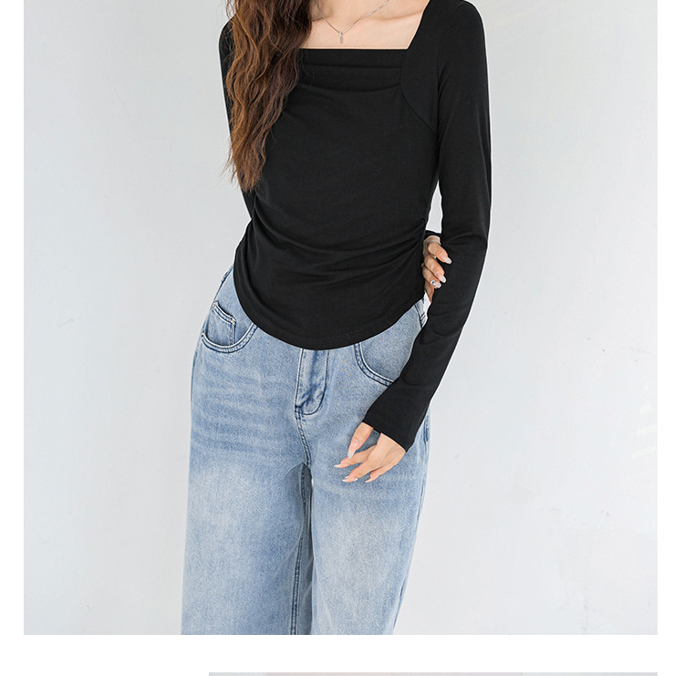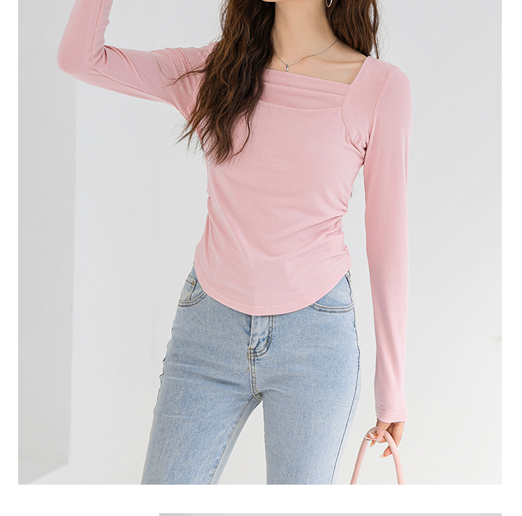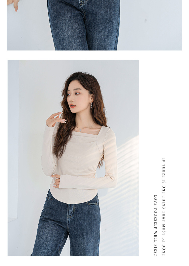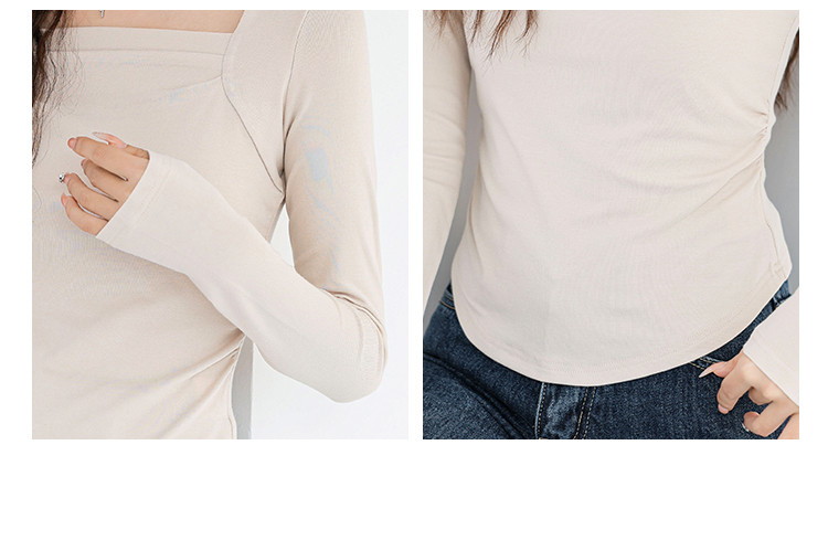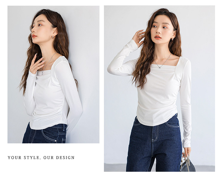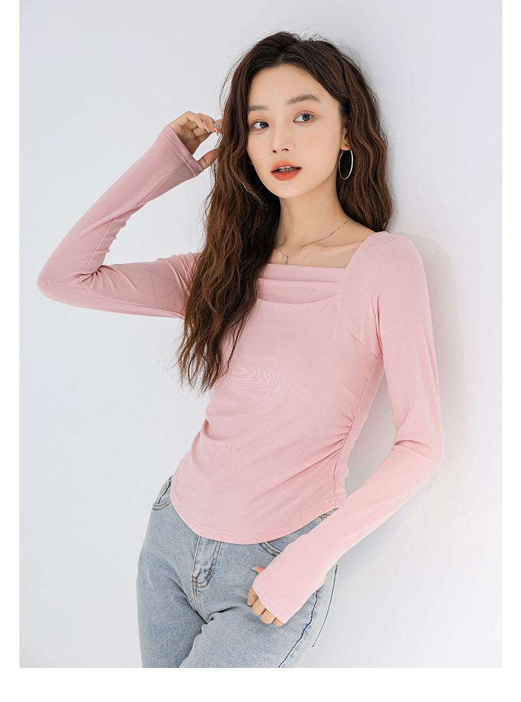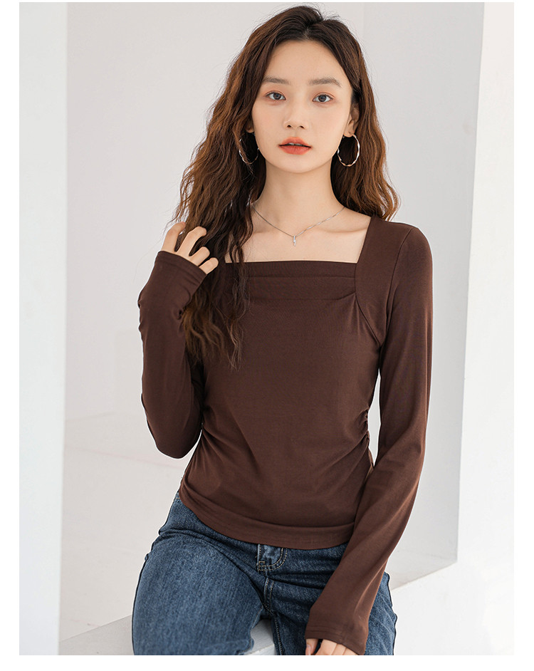 方领磨毛内搭打底衫女设计感修身气质长袖针织上衣 262659