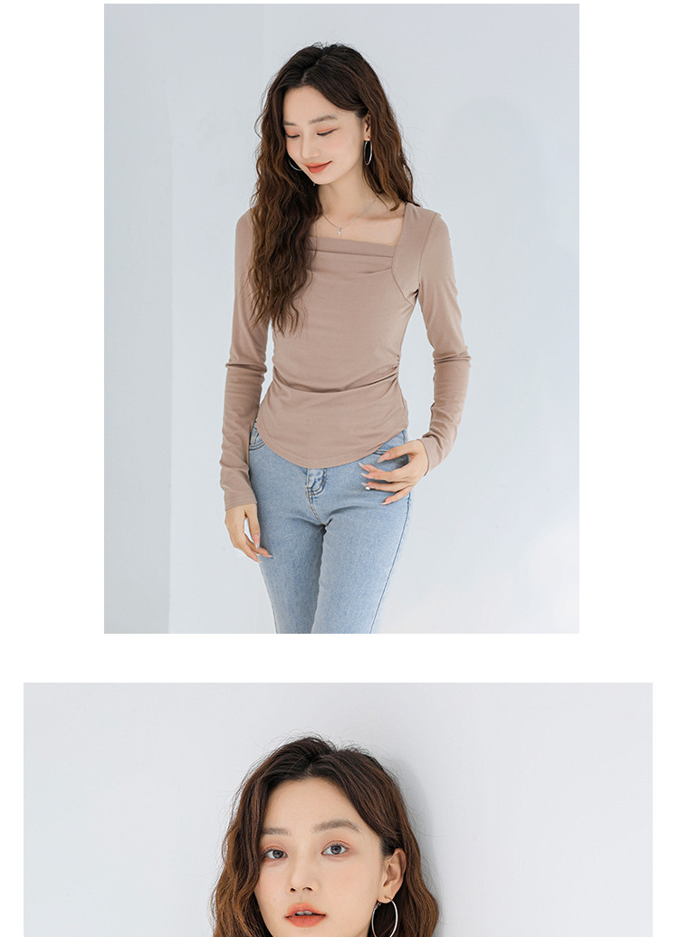商品名称:方领磨毛内搭打底衫女设计感修身气质长袖针织上衣 262659