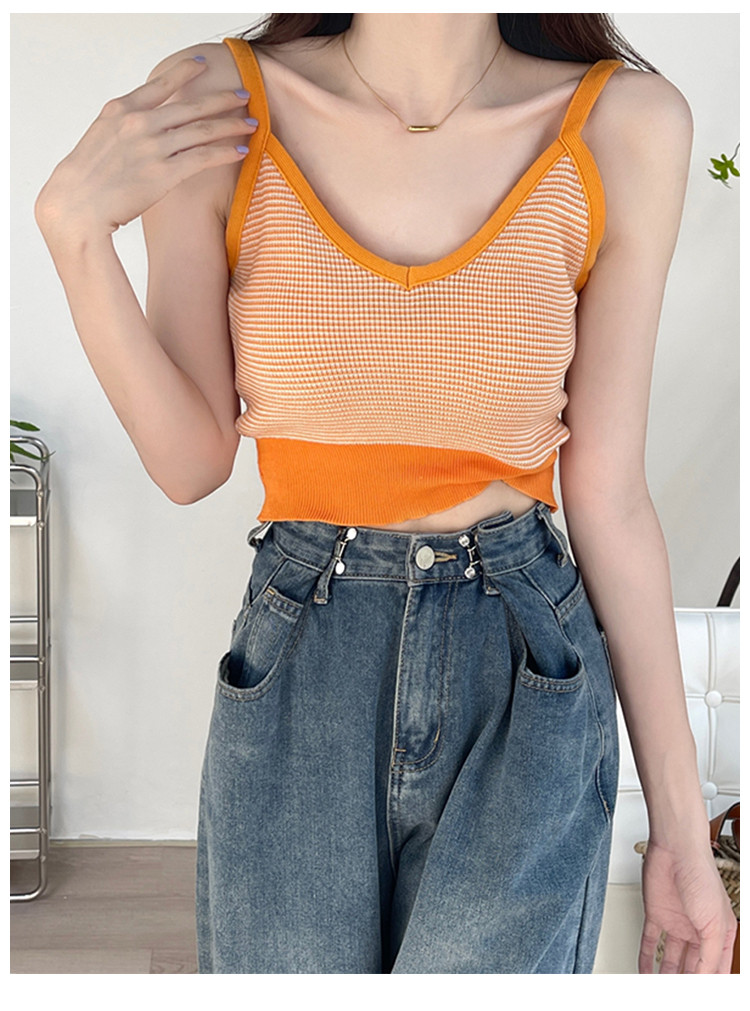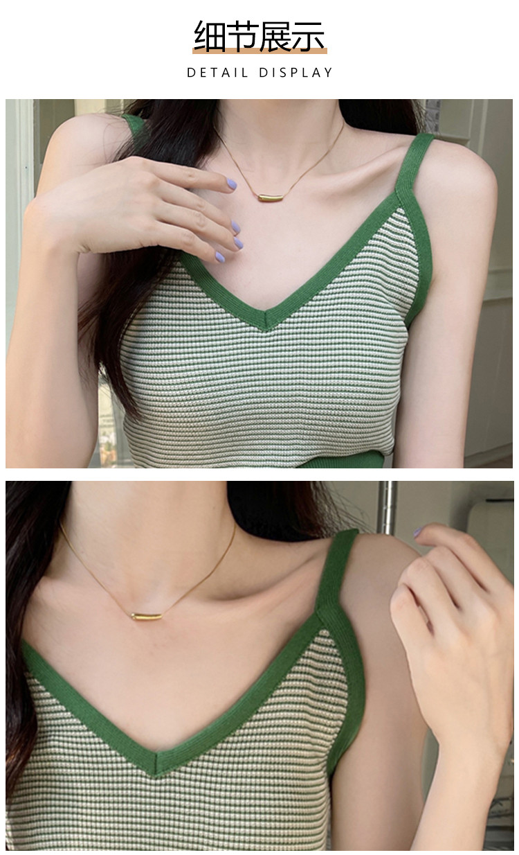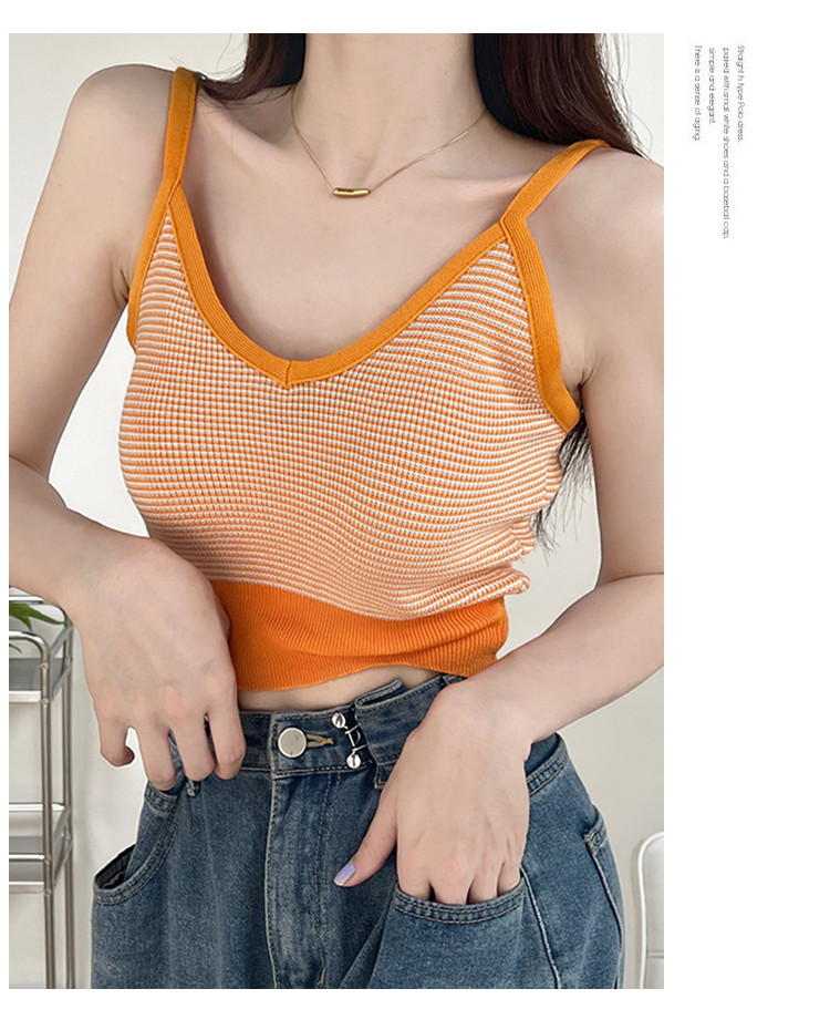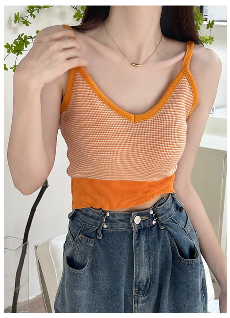 V领条纹针织吊带背心女内搭设计感小众外穿短款上衣 429123