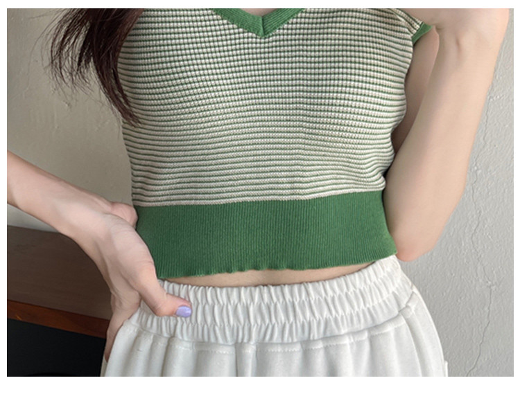商品名称:V领条纹针织吊带背心女内搭设计感小众外穿短款上衣 429123