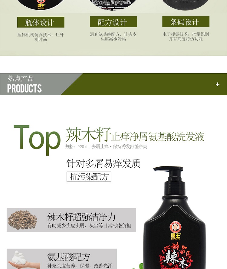 商品名称:霸王辣木籽止痒净屑氨基酸洗发液720ml
