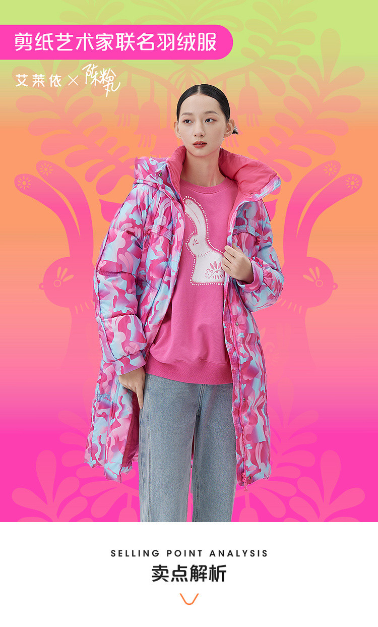 商品名称:【剪纸艺术家联名】专柜同款鸭绒羽绒服女中长款外套女 533270