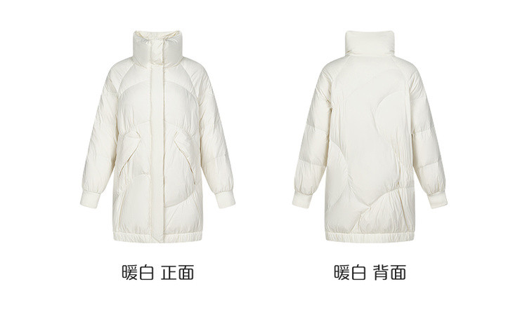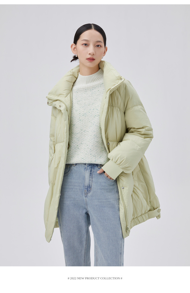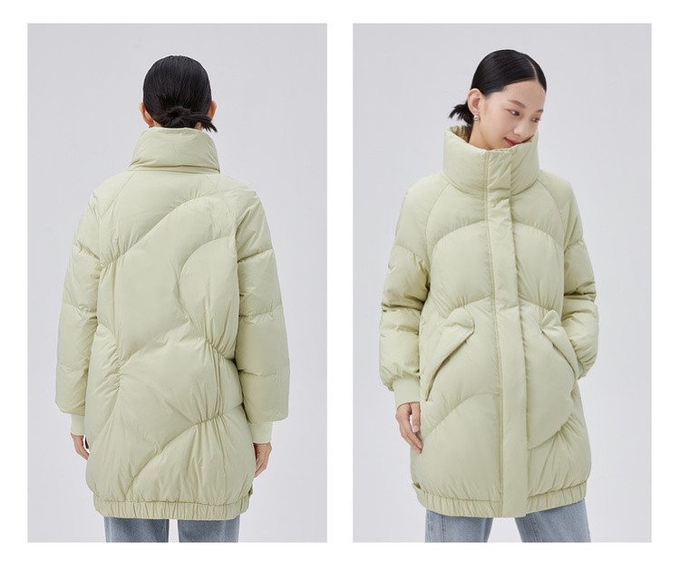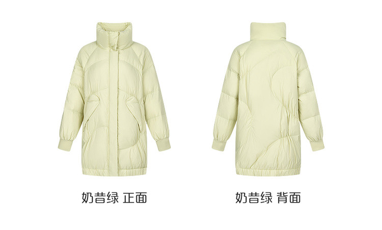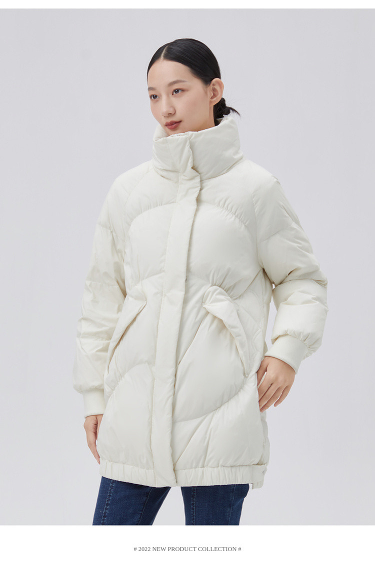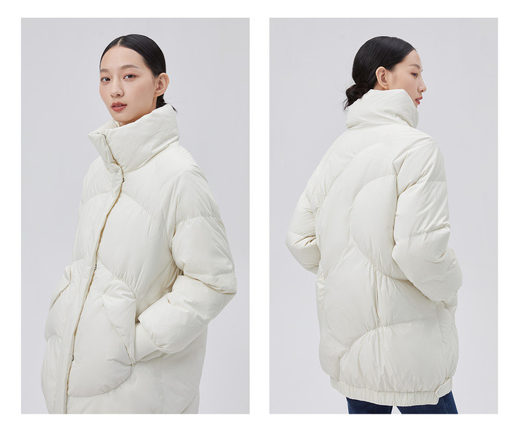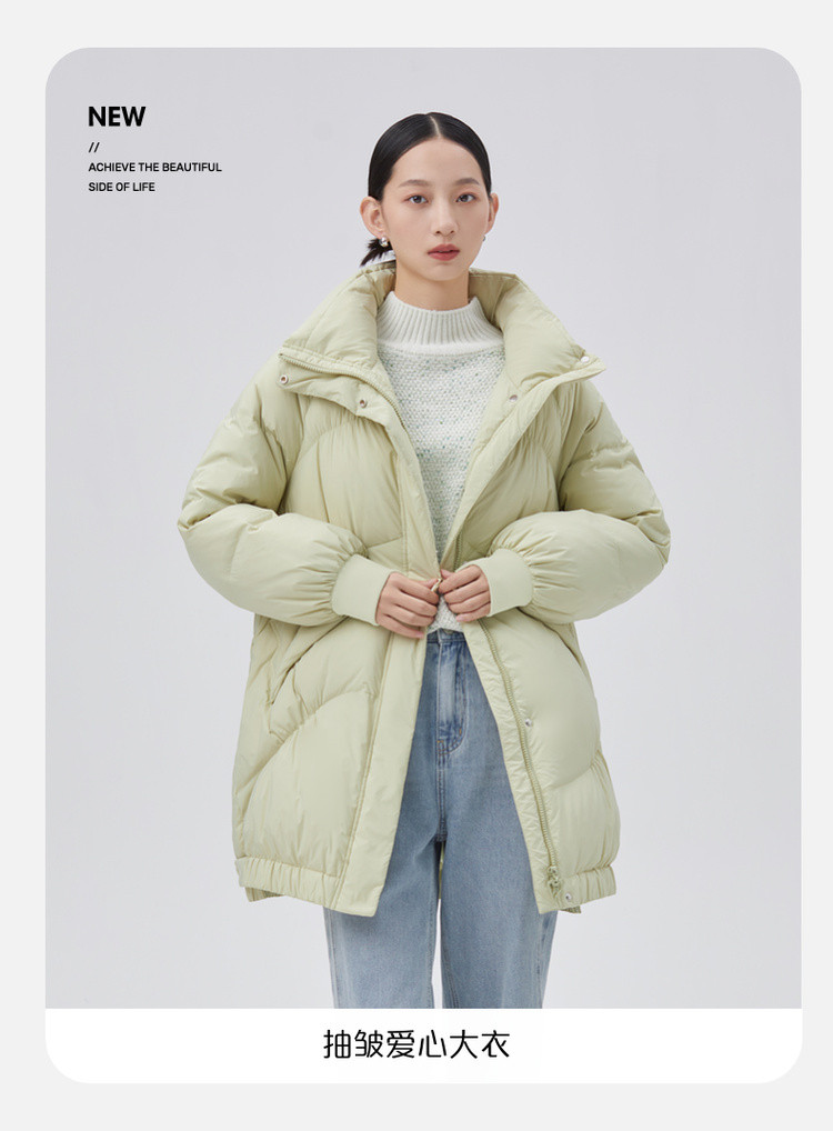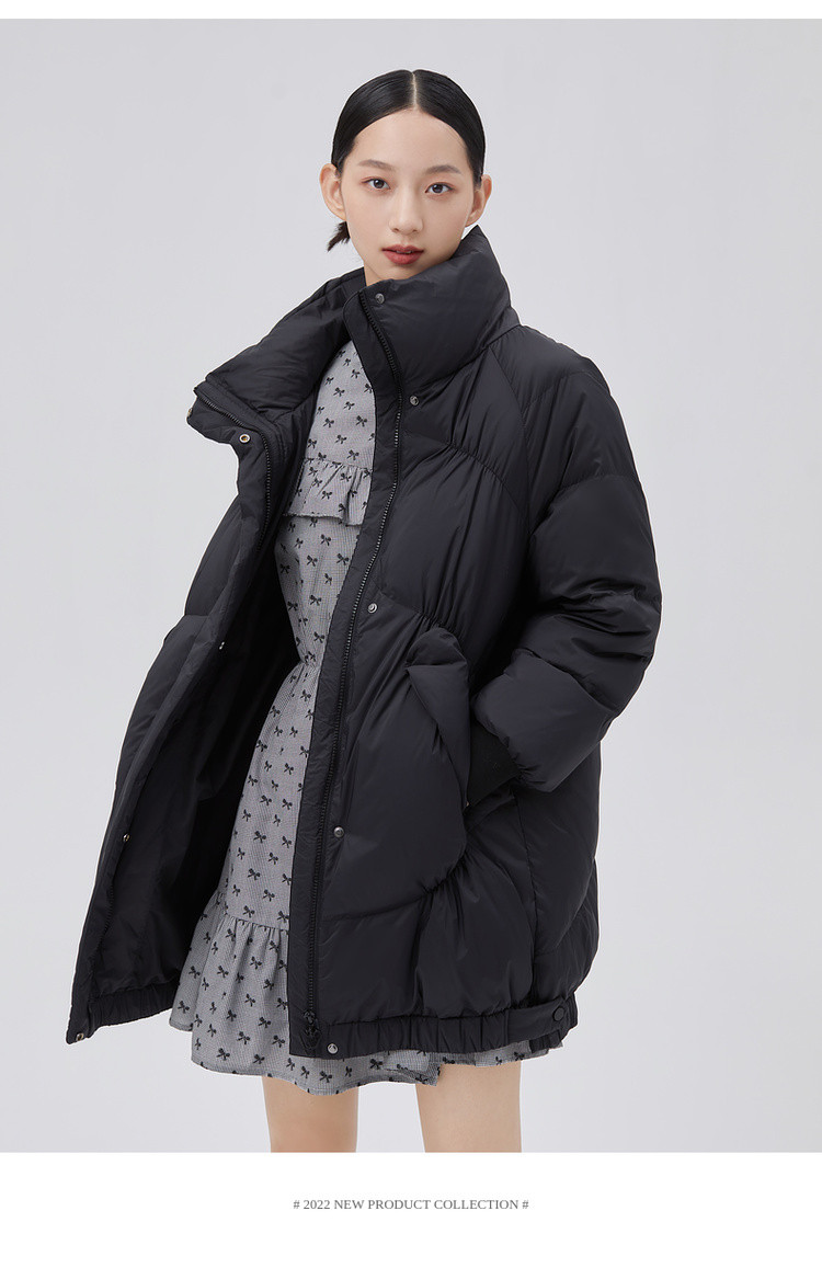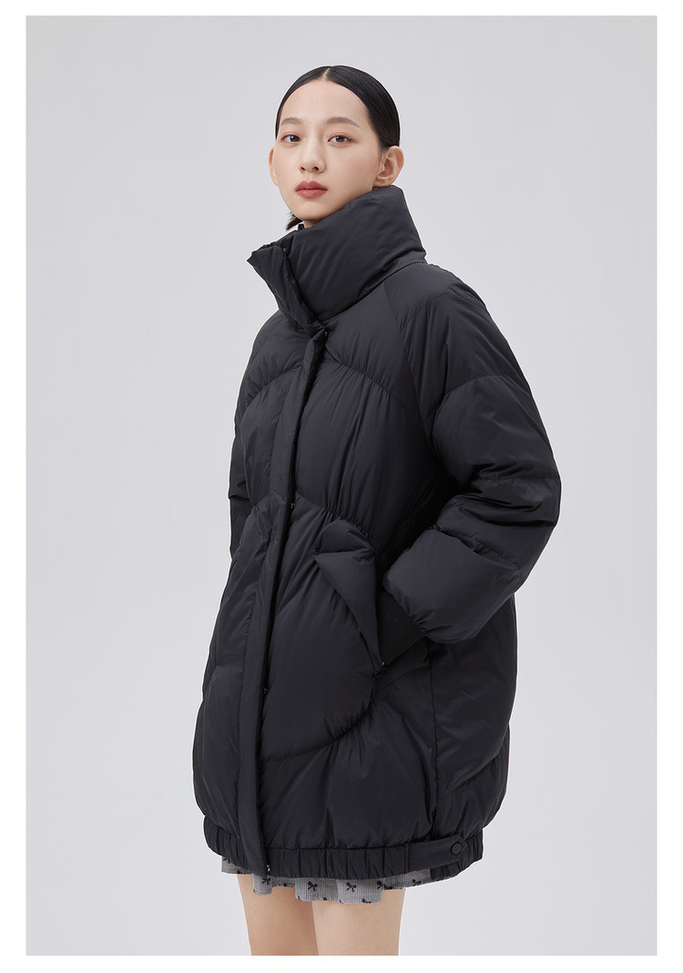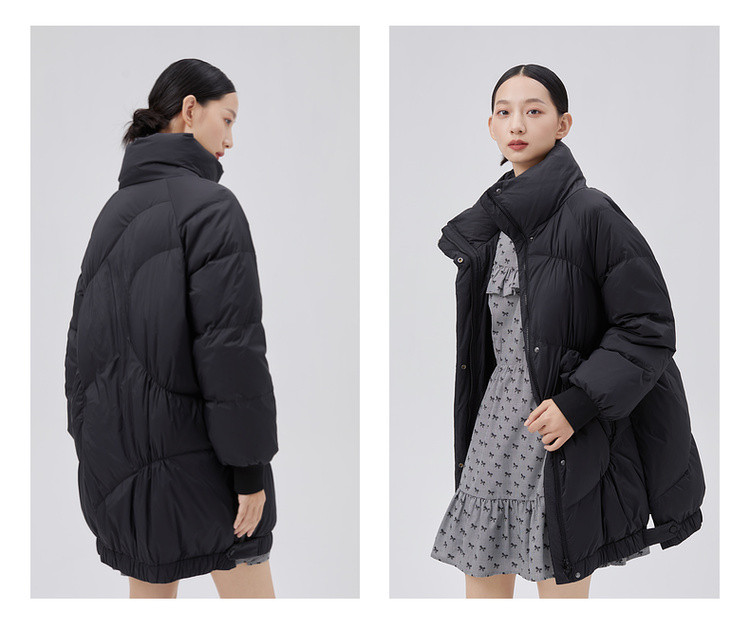 商品名称:【90鸭绒】专柜同款抽褶宽松羽绒服女中长款防风外套女 012182