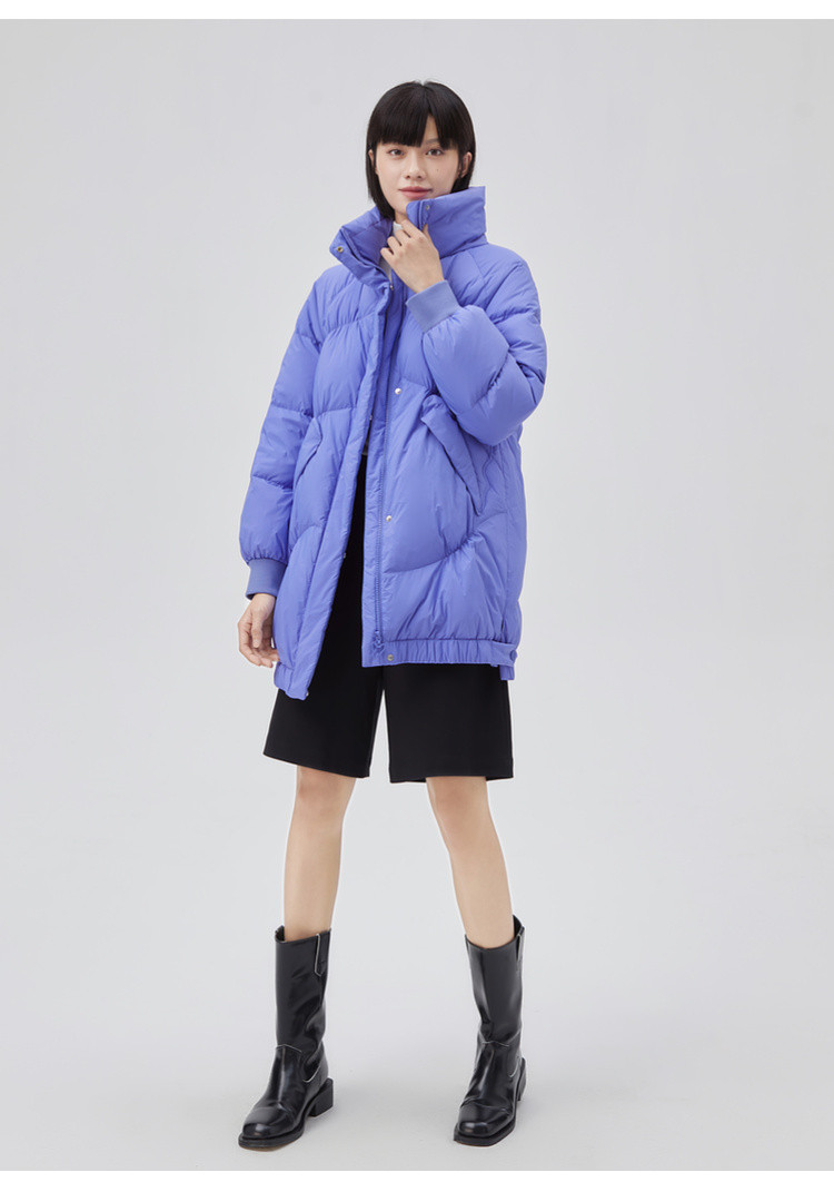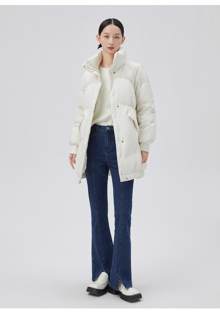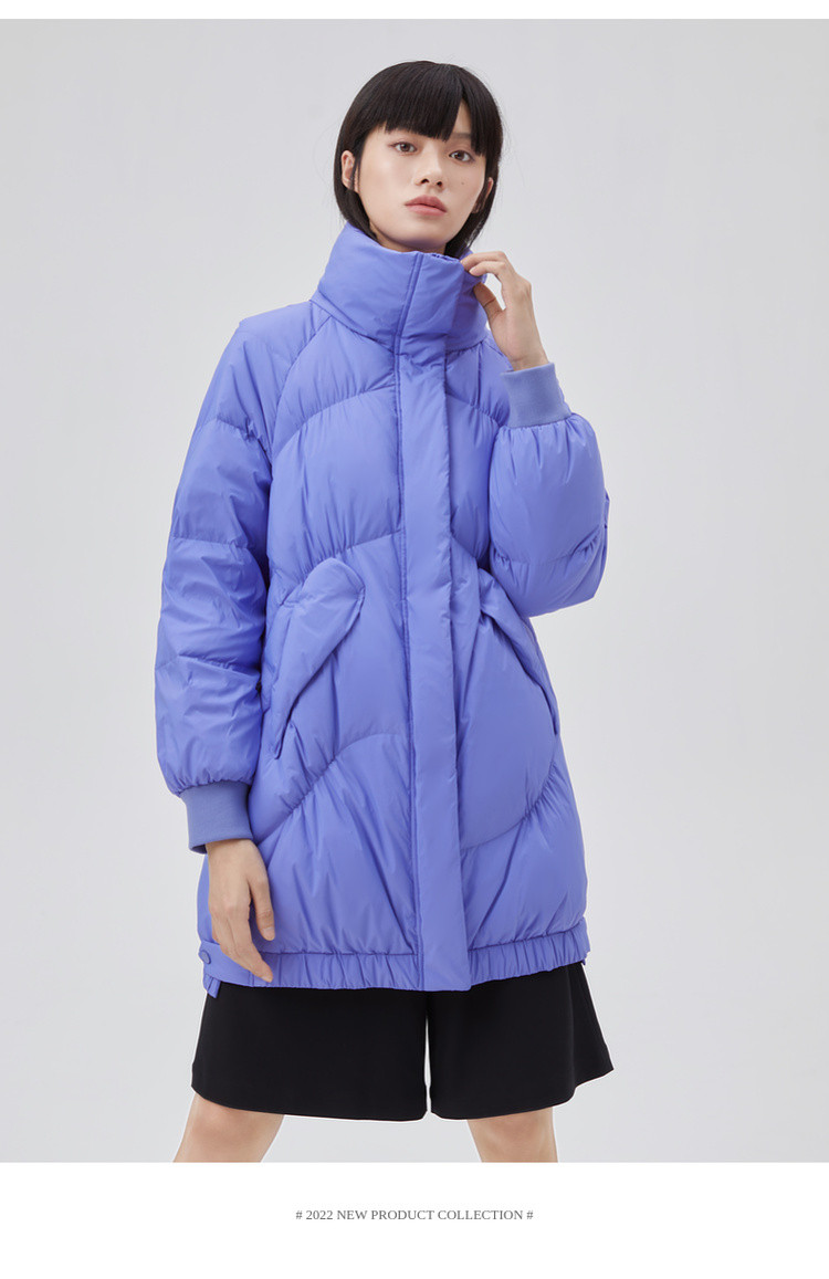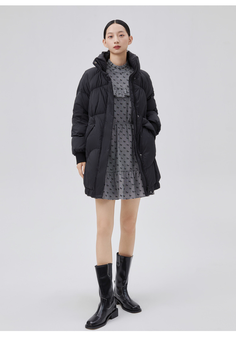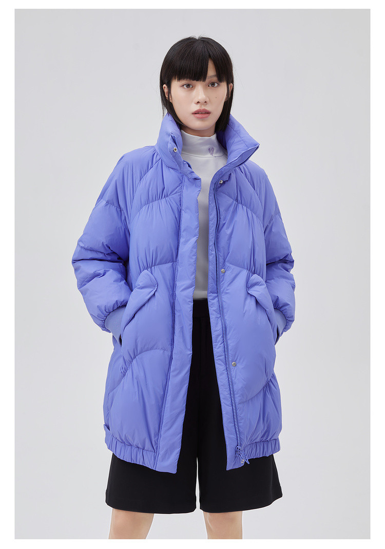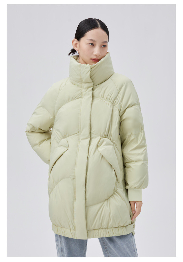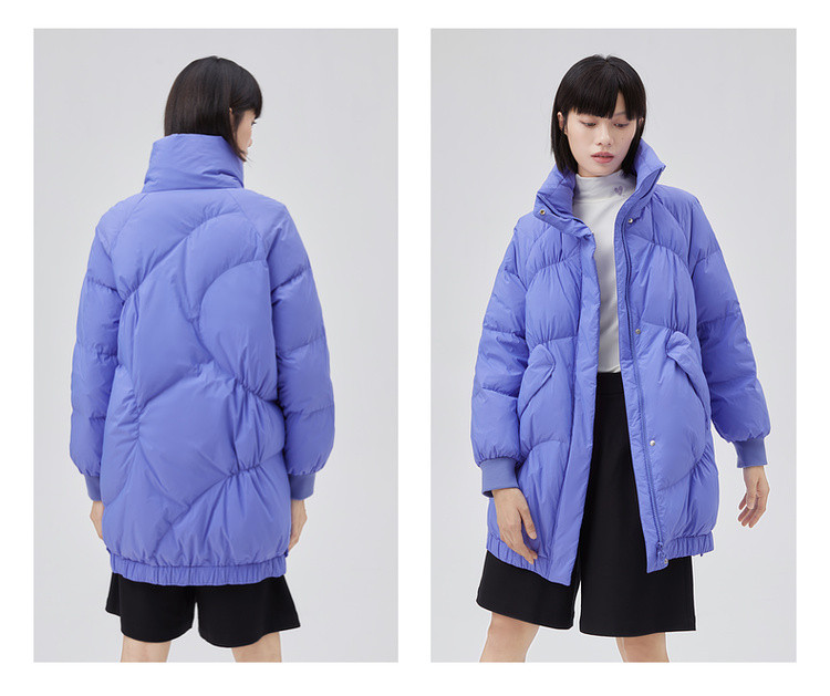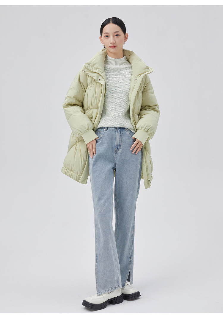 商品名称:【90鸭绒】专柜同款抽褶宽松羽绒服女中长款防风外套女 012182
