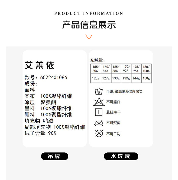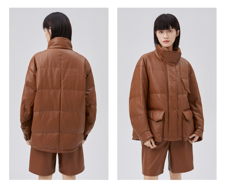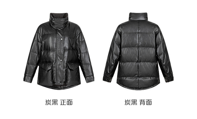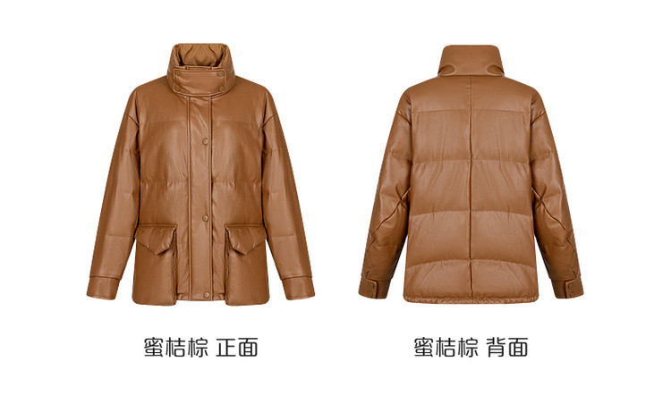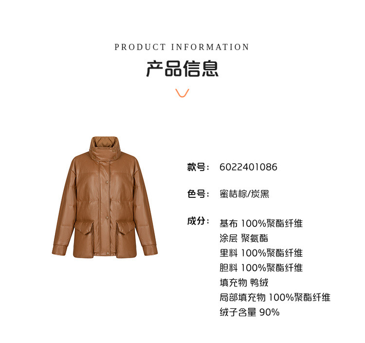 商品名称:【专柜同款】时尚压印仿皮革防风羽绒服女短款甜酷风外套 376342