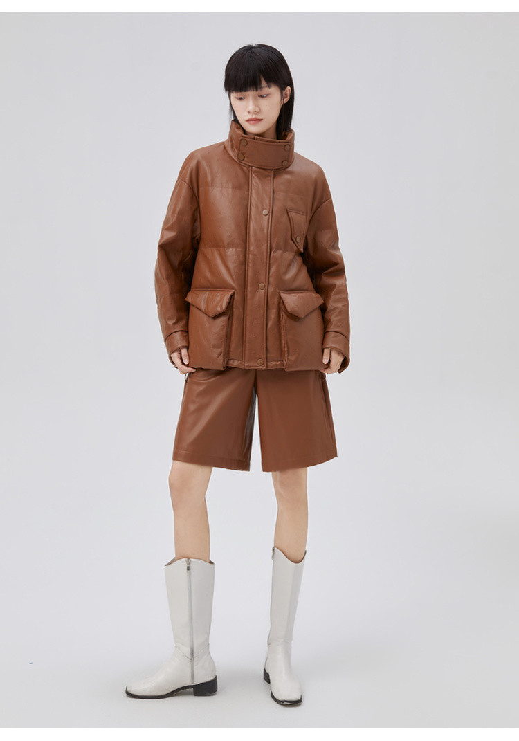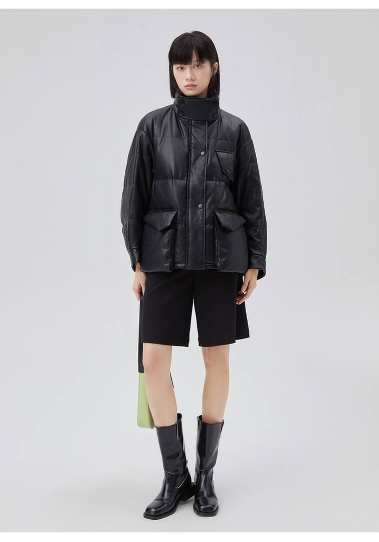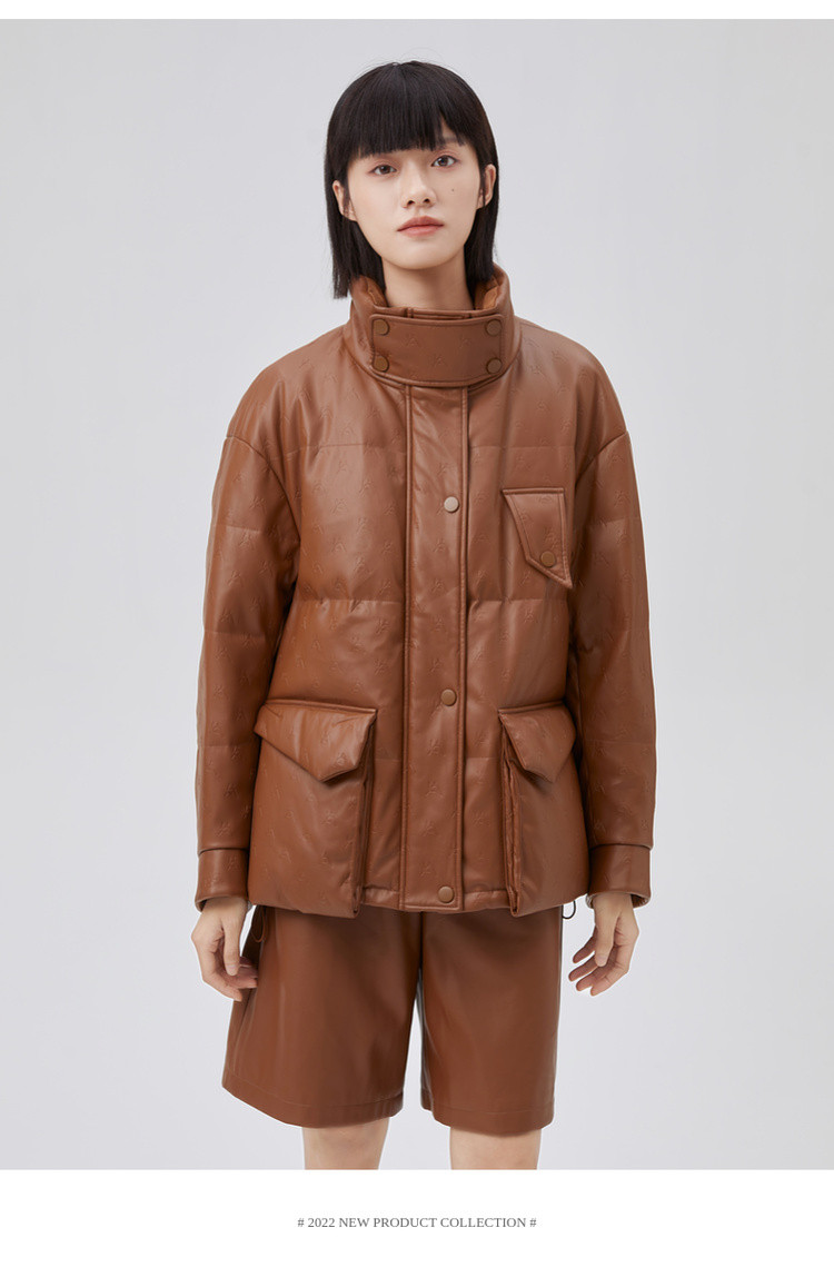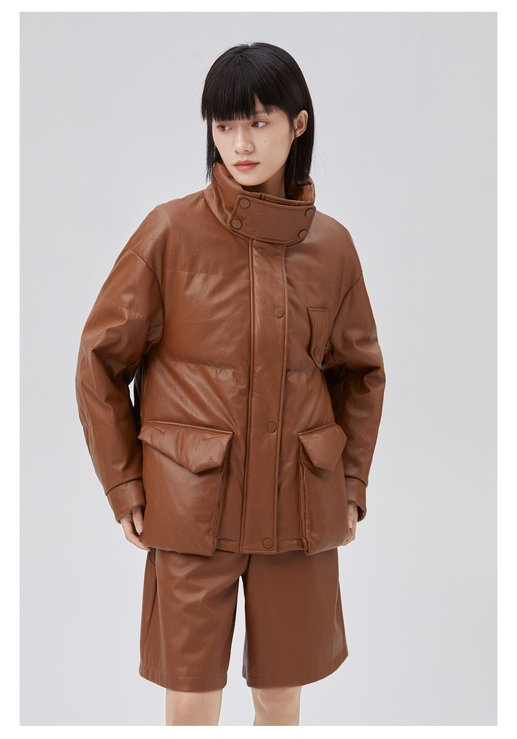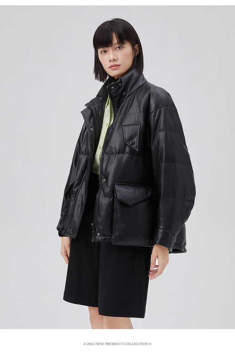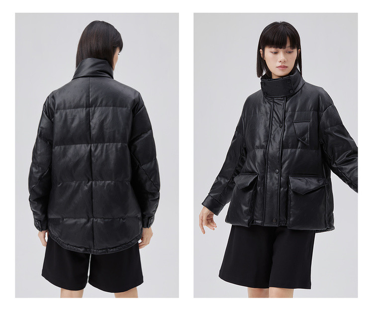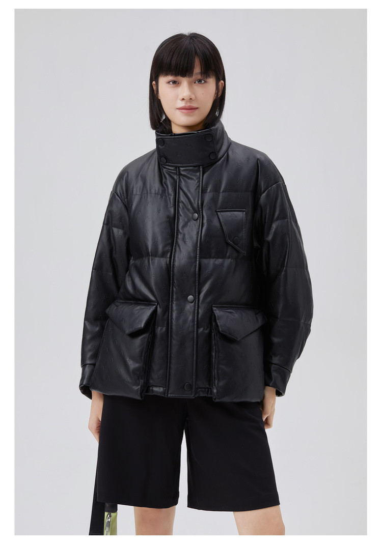 【专柜同款】时尚压印仿皮革防风羽绒服女短款甜酷风外套 376342