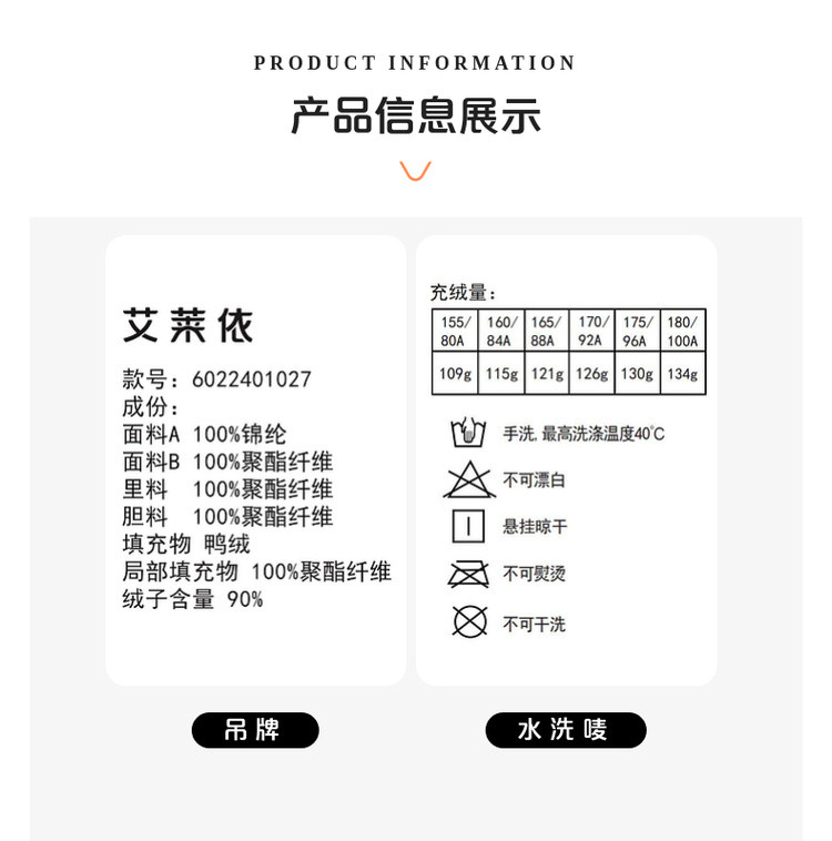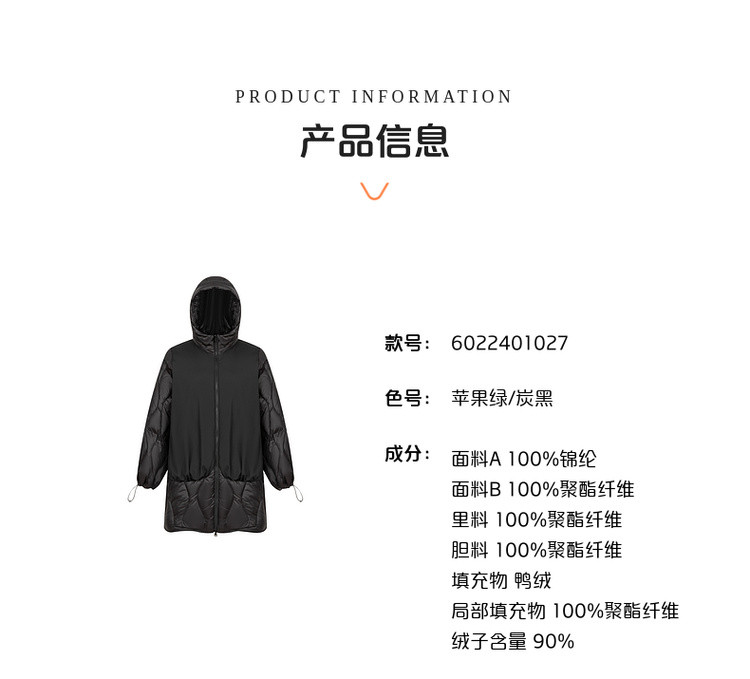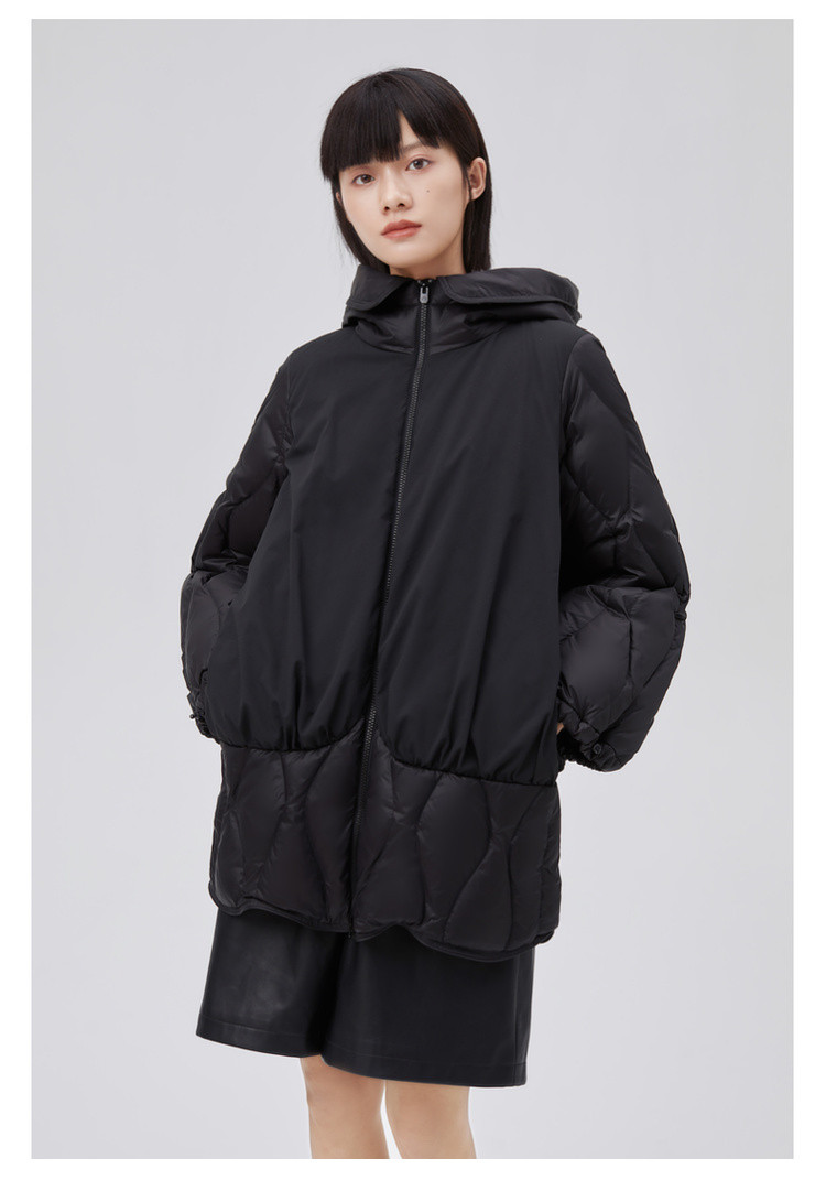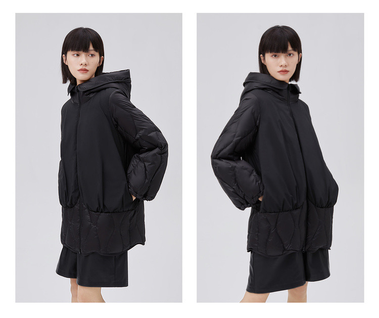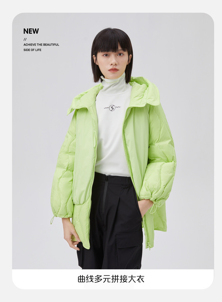 商品名称:【专柜同款】时尚曲线压线拼接外套女中长款羽绒服女 405014