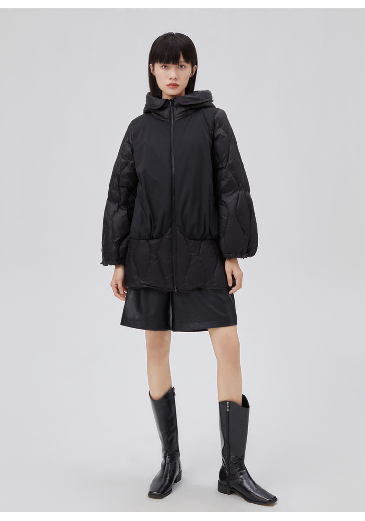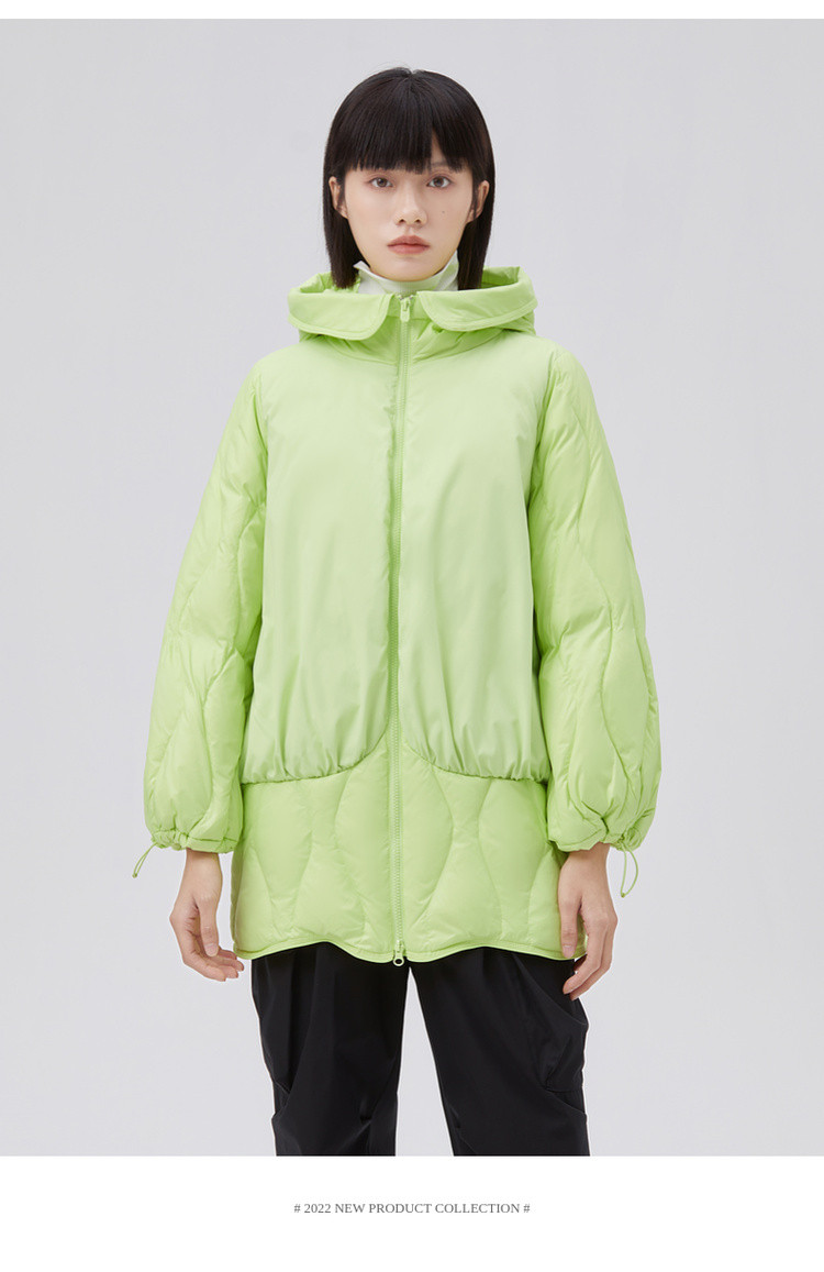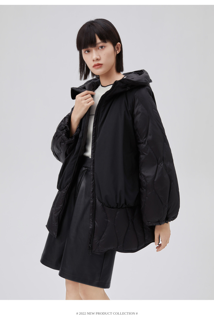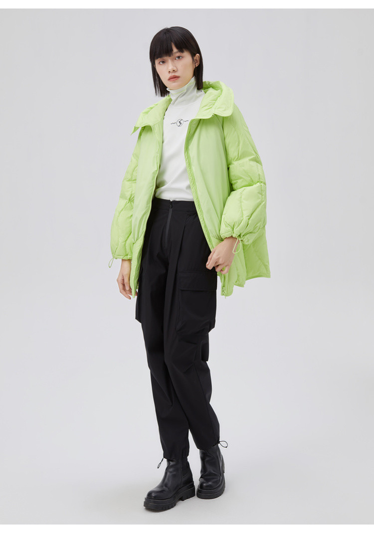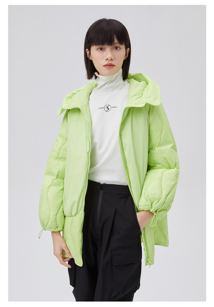 【90鸭绒】专柜同款抽褶宽松羽绒服女中长款防风外套女 807382