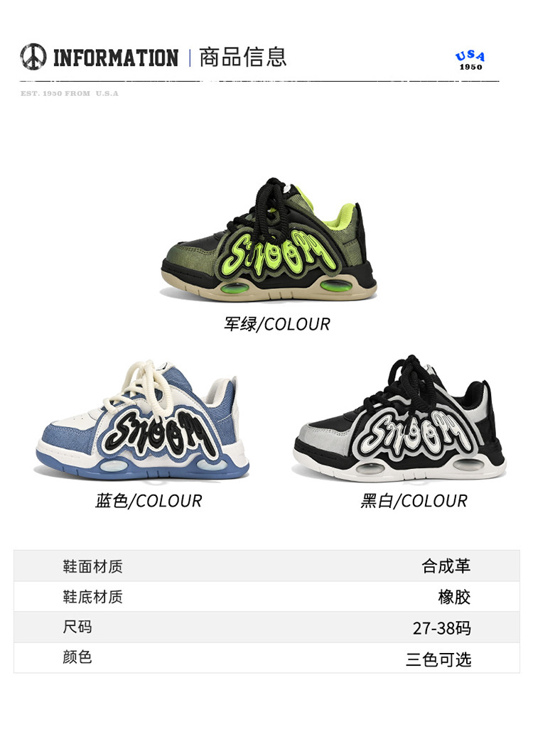 商品名称:【潮酷板鞋】中大童春秋季男童耐磨舒适儿童休闲鞋 038237